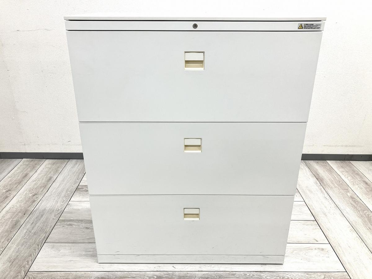 【在庫入替セール品】【オフィス書類をスッキリ整理!】■オカムラ製 3段ラテラル書庫 ホワイト天板付 ■ファイル収納にオススメ!引出し型キャビネット!- 川崎店
