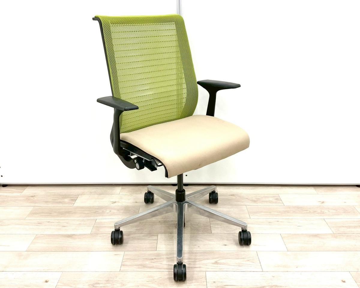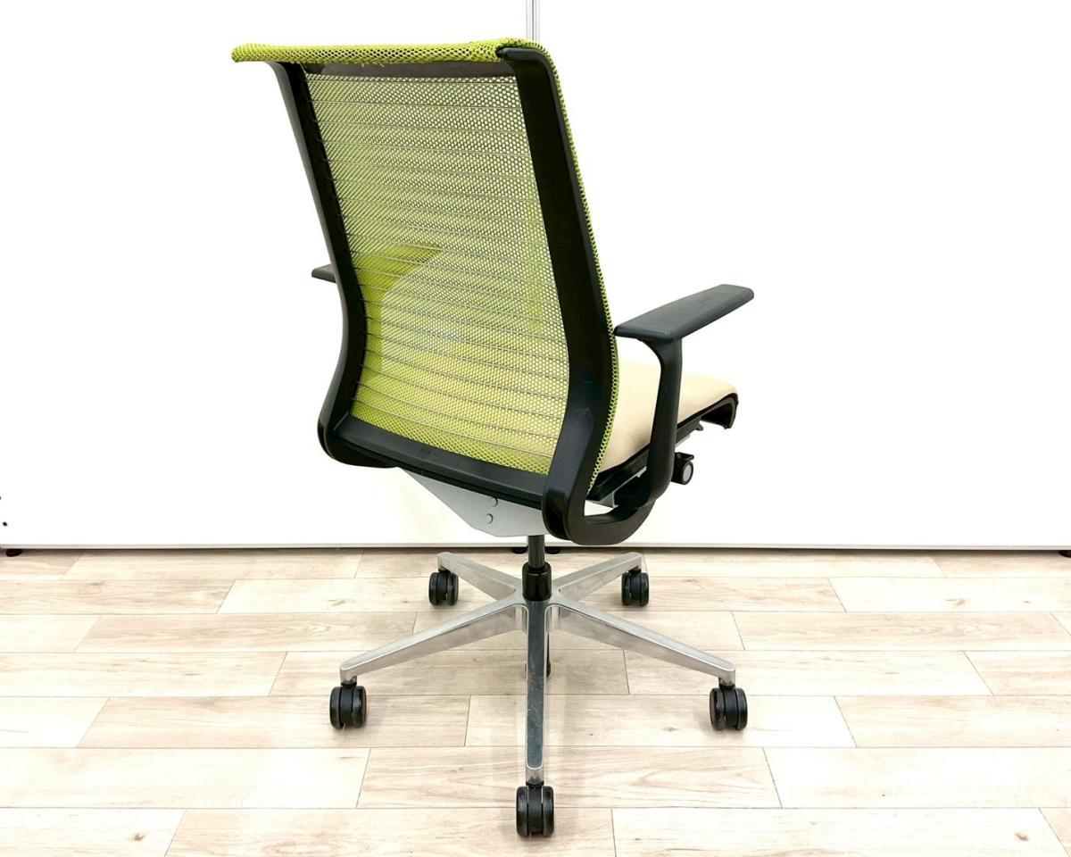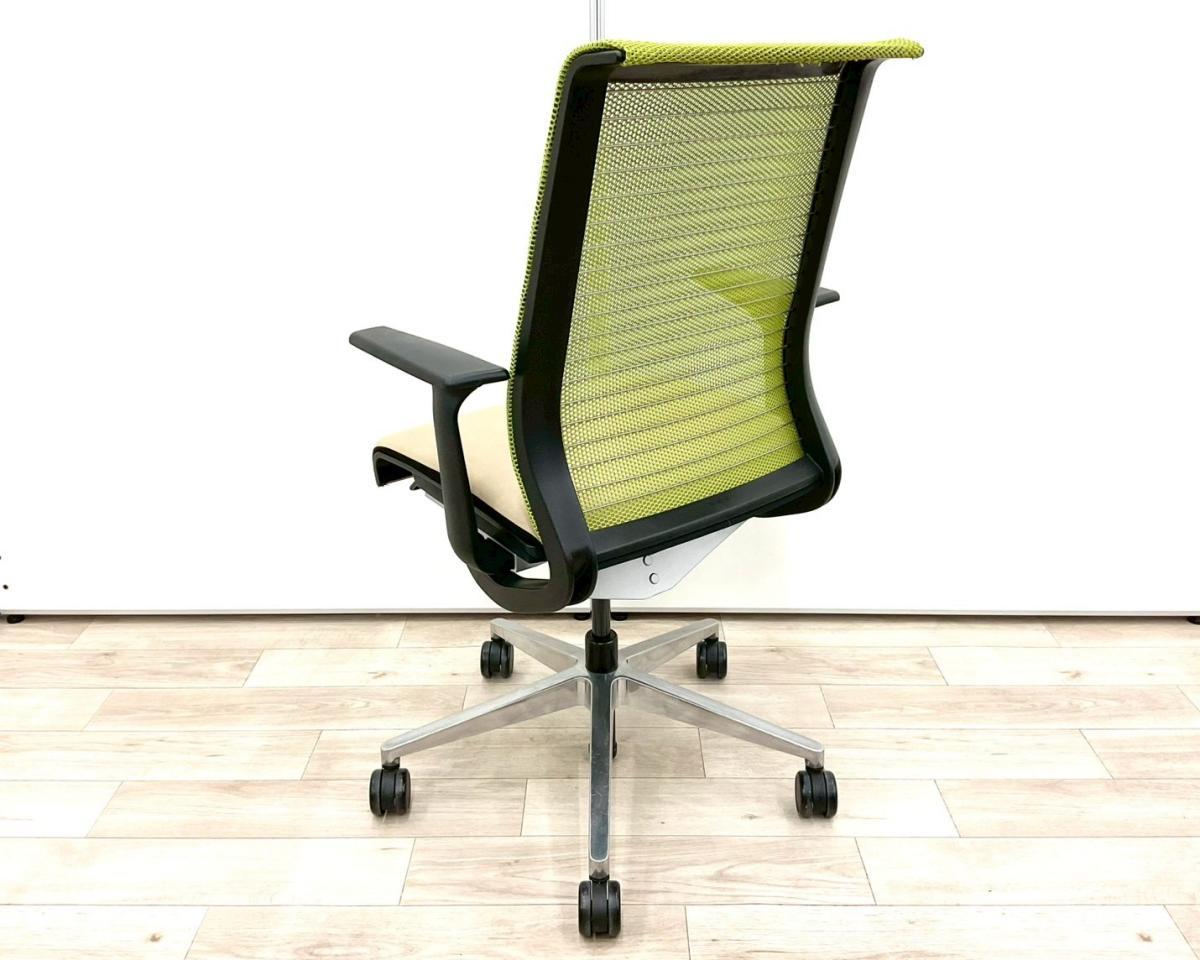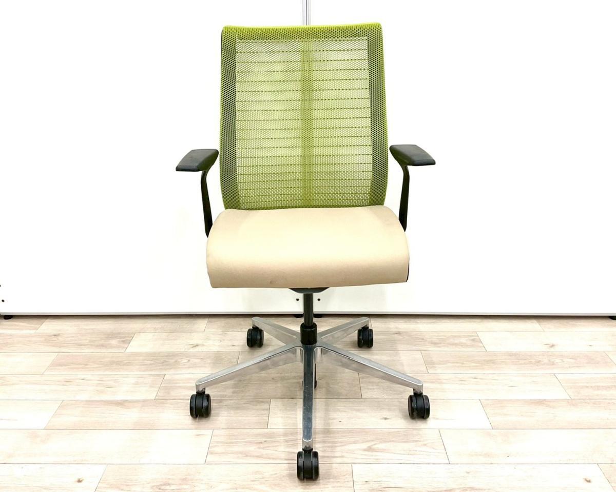 【長時間座る人のための椅子!】■スチールケース(Steelcase)製 シンク(Think )チェア 肘付 ハイバック 固定肘 ■背面グリーン/座面ベージュ 【弊社使用欄:A01063362】【SN】サーキュラーバリューCO2削減量の算出について