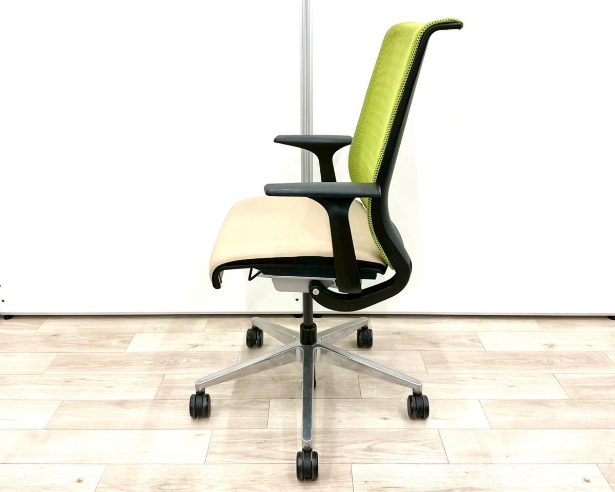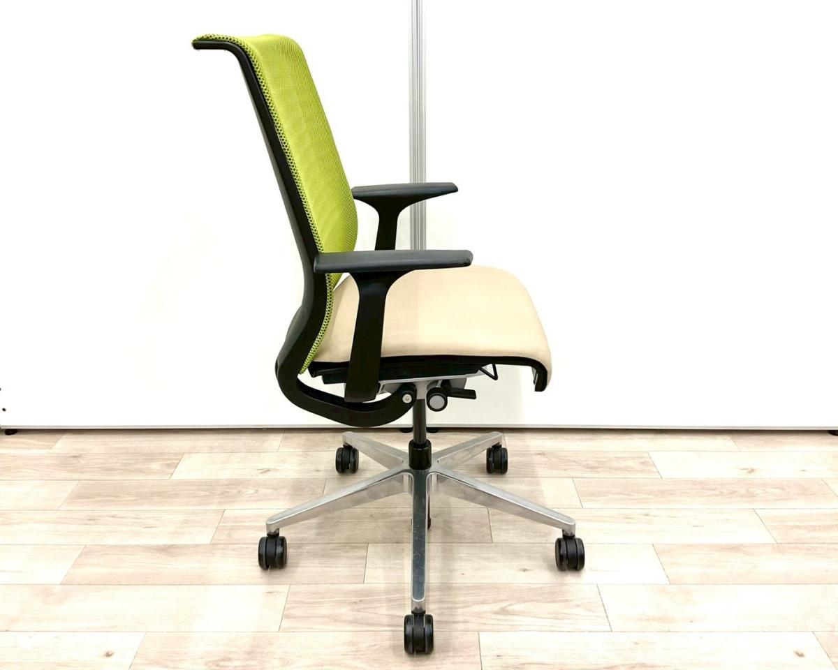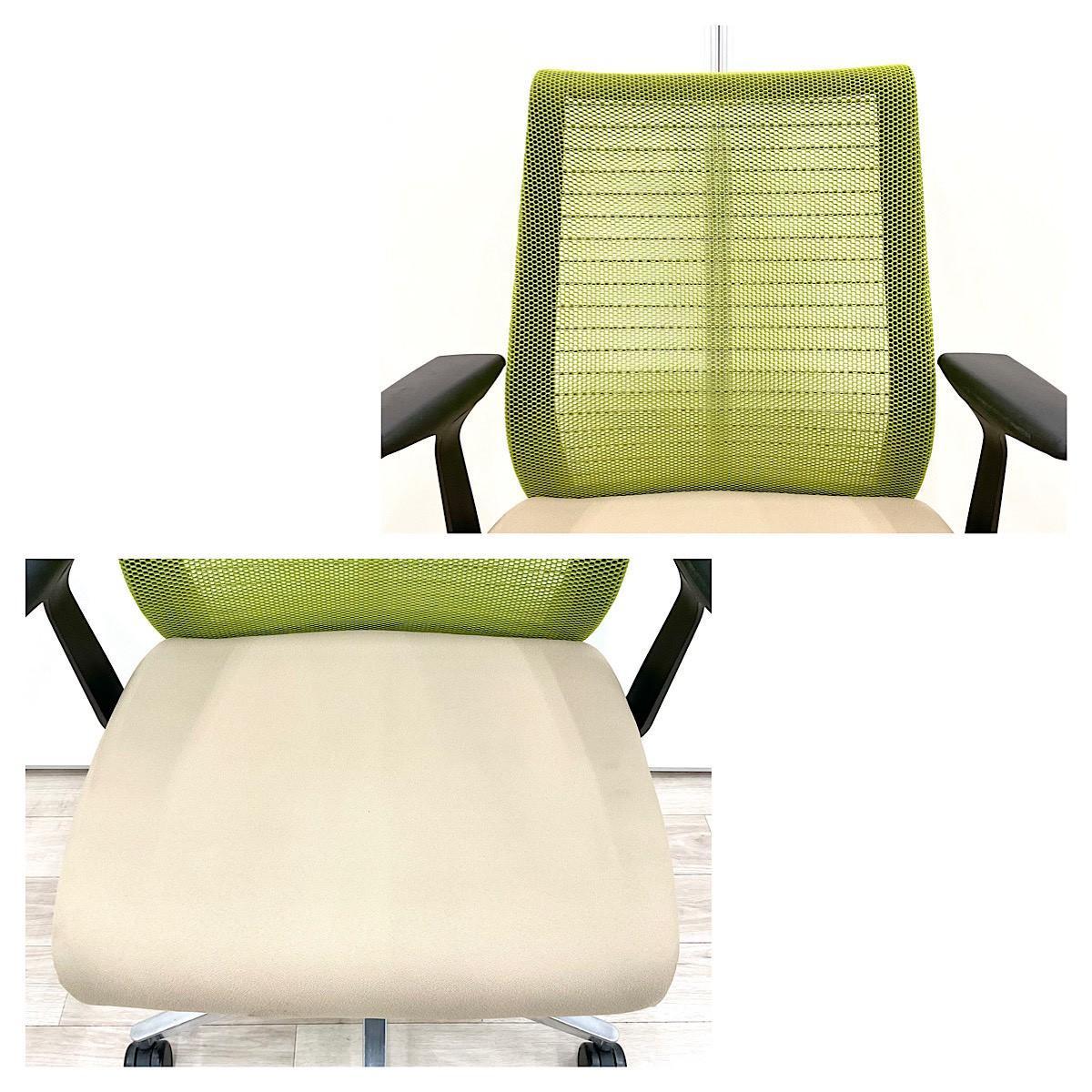 【長時間座る人のための椅子!】■スチールケース(Steelcase)製 シンク(Think )チェア 肘付 ハイバック 固定肘 ■背面グリーン/座面ベージュ 【弊社使用欄:A01063362】【SN】サーキュラーバリューCO2削減量の算出について