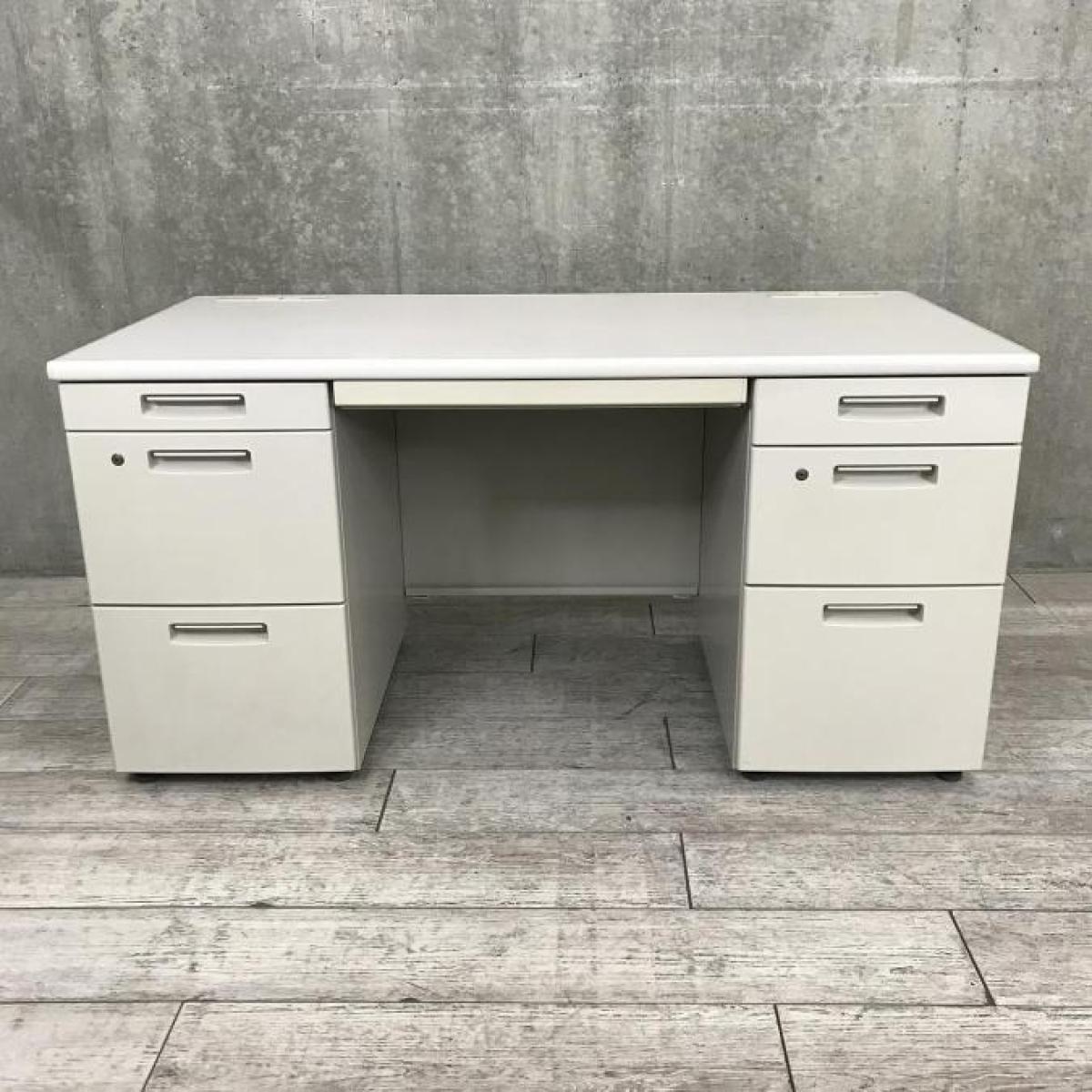 【在庫入替えセール!】【定価約16万円】【充実のワークスペース!豊富な引出しで机上をスッキリ整理!】■コクヨ(KOKUYO)製 BS+シリーズ 両袖デスク W1400mm 右袖3段/ 左袖2段 ■ニューグレー ■シリンダー錠 ※真ん中引き出し無し【AD】