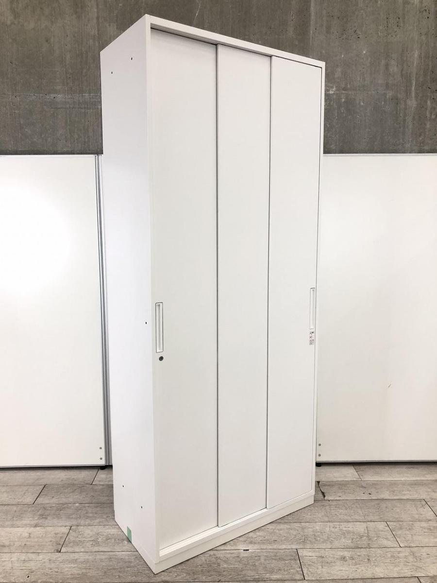 【手狭なオフィスで大活躍!導線を確保できる引き違い戸のキャビネット!】■コクヨ(KOKUYO)製 エディア(EDIA)シリーズ 引き違い書庫 ローキャビネット ■3枚扉 ■シリンダー錠 ■天板・ベース付き ■ホワイト