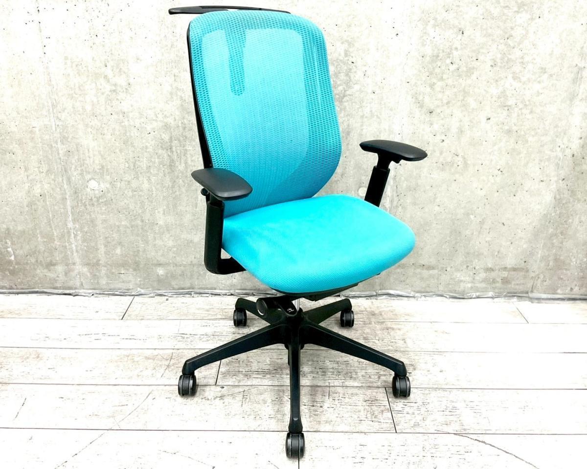 オカムラ製の大人気オフィスチェア【シルフィー/ブルー色/ホワイトフレーム/可動肘付き仕様】が入荷しました! *良品を格安で!「オフィスバスターズ福岡南店」は、福岡を拠点として、全国へ中古オフィス用品・オフィス家具を提供しております。