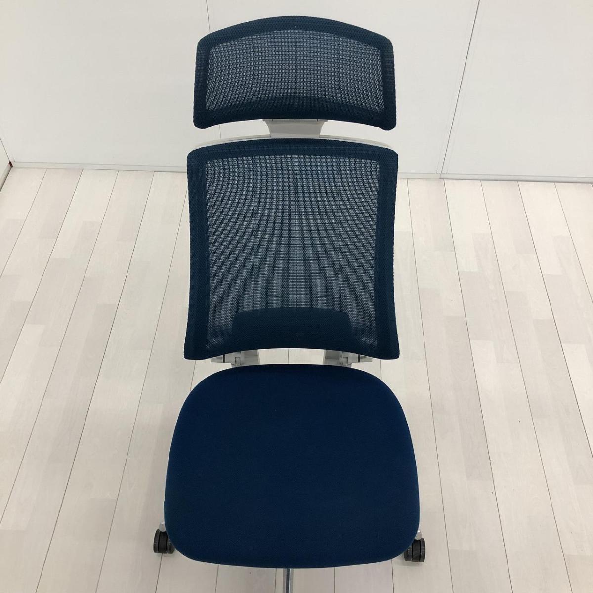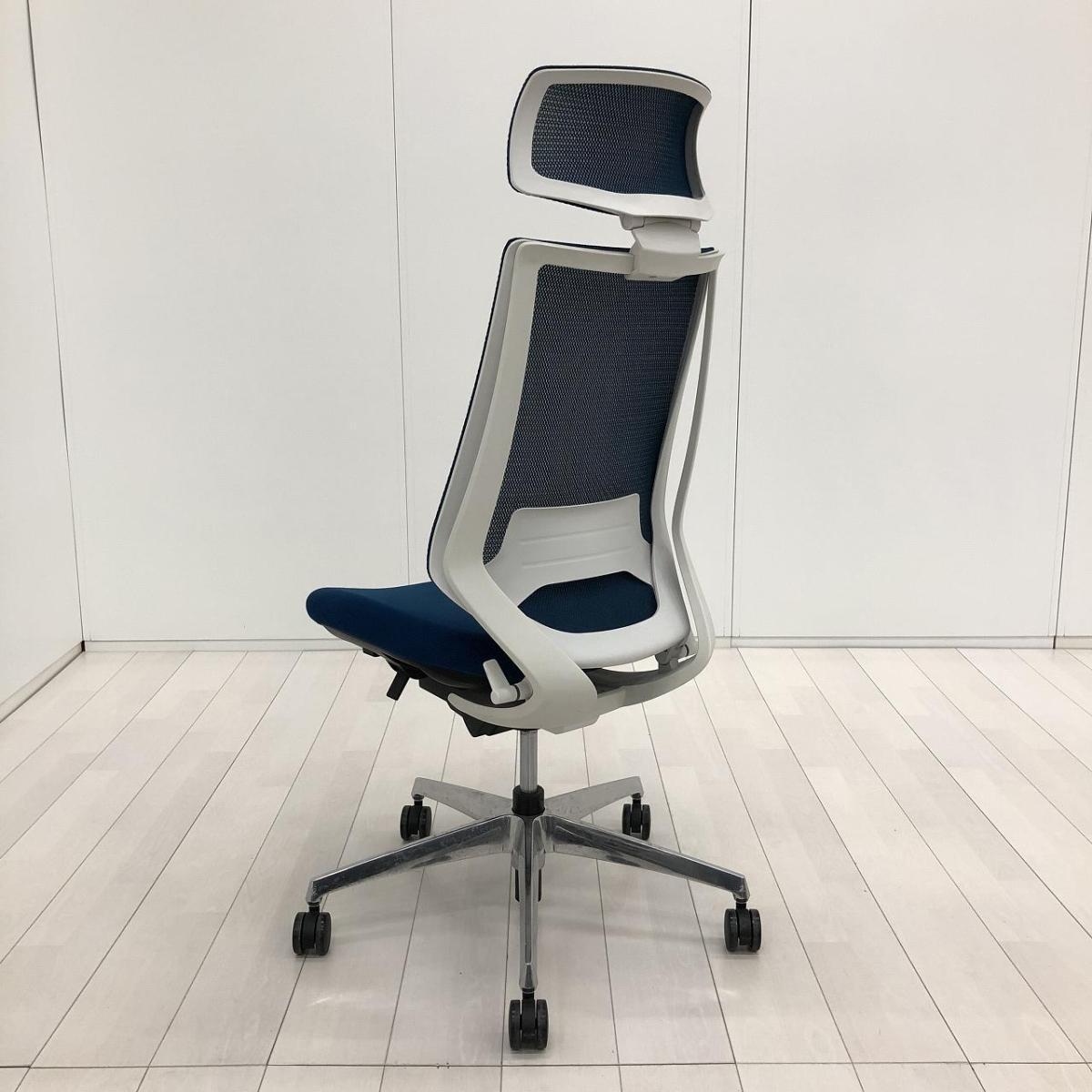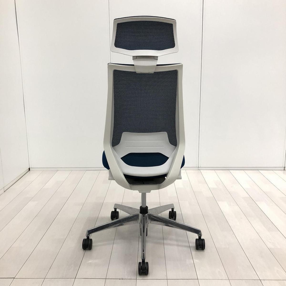 【二重フレーム構造がもたらすしなやかで美しい背もたれ機能!簡易操作で自分に合った姿勢をサポート!】■コクヨ(KOKUYO)製 デュオラ(Duora) 肘無 ハイバック 背面メッシュ ■プルシアンブルー×ホワイトシェル×ブラック脚【入替セールにつき30%OFF!】