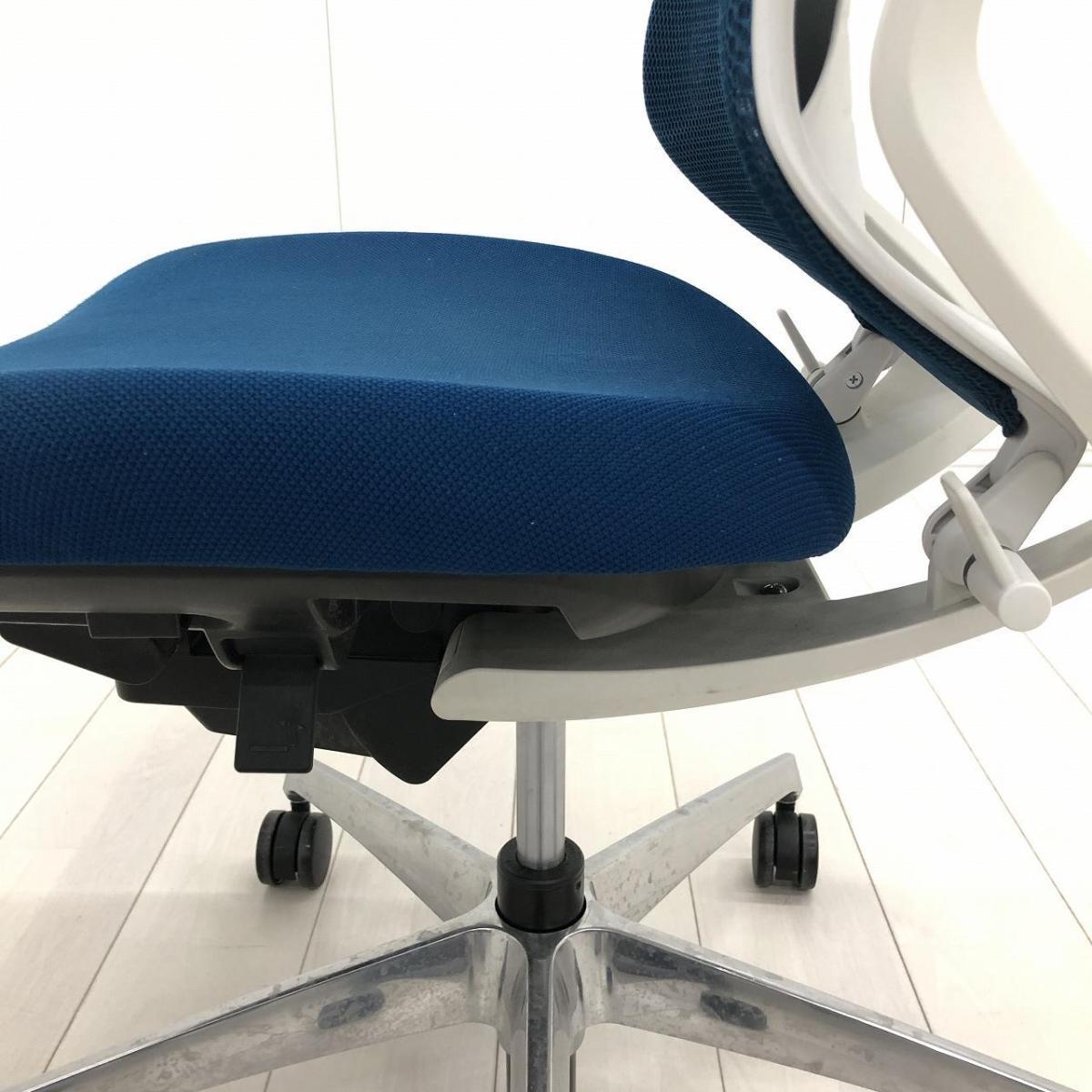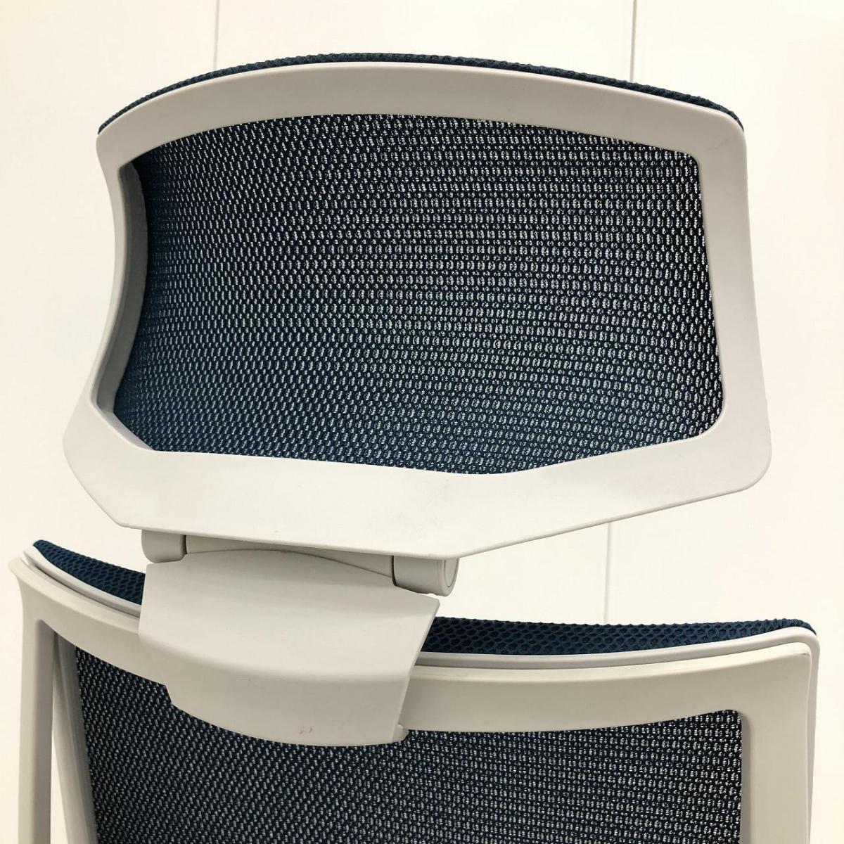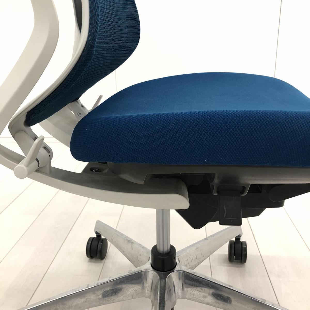 【二重フレーム構造がもたらすしなやかで美しい背もたれ機能!簡易操作で自分に合った姿勢をサポート!】■コクヨ(KOKUYO)製 デュオラ(Duora) 肘無 ハイバック 背面メッシュ ■プルシアンブルー×ホワイトシェル×ブラック脚【入替セールにつき30%OFF!】