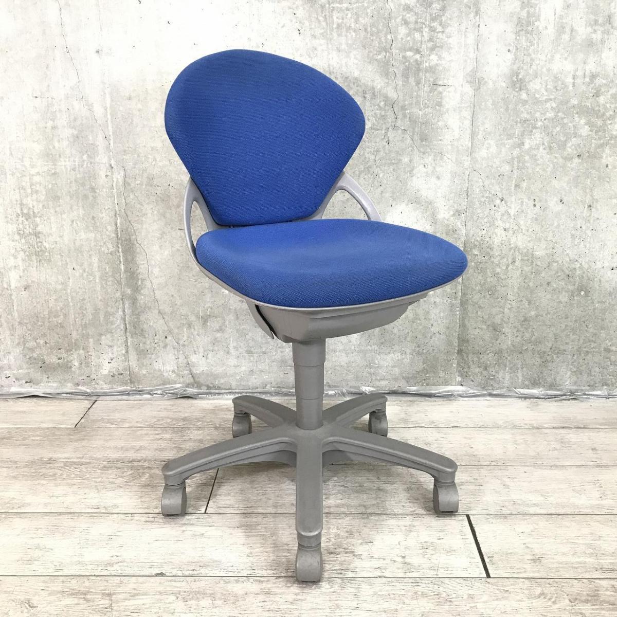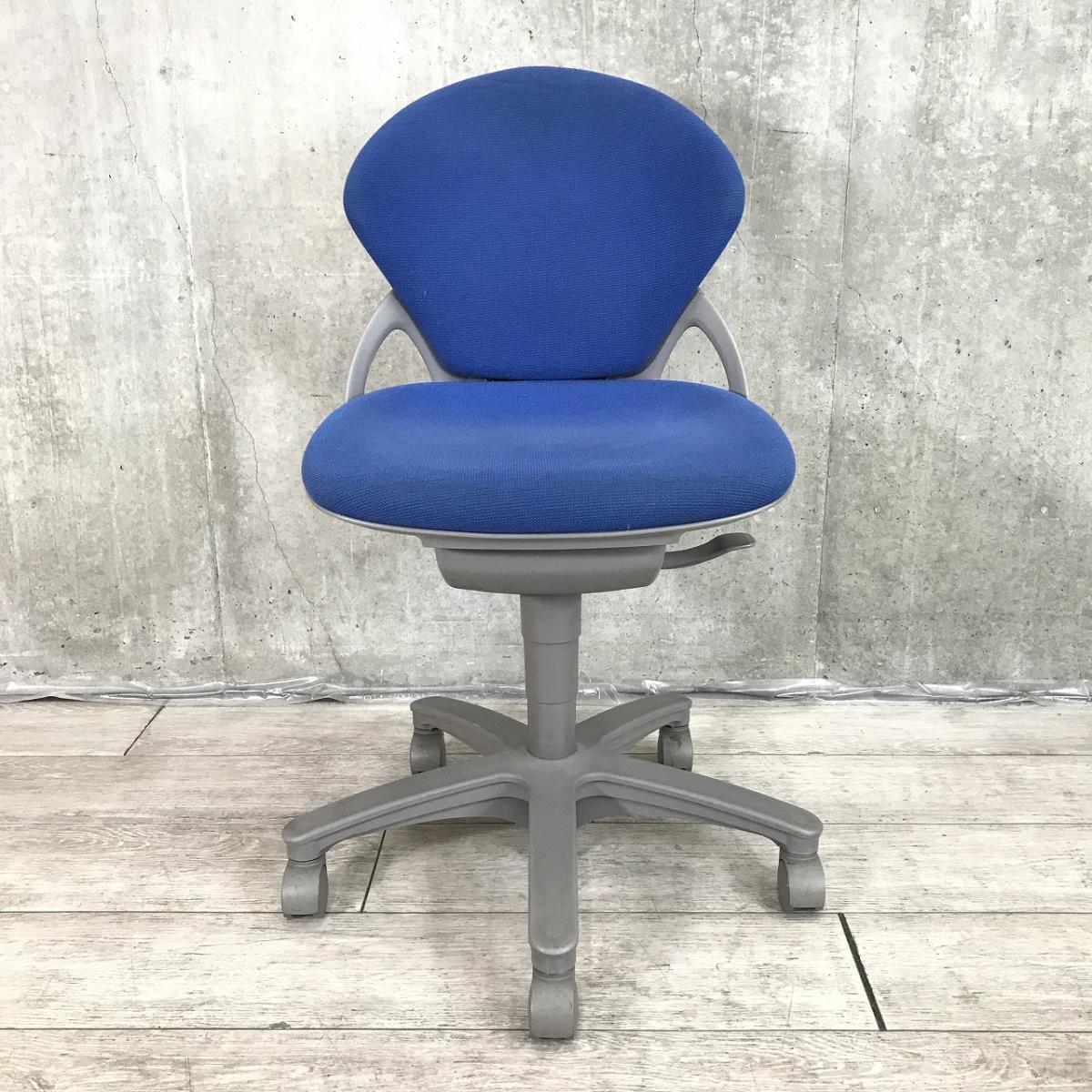 【コンパクトデザインのハイコストパフォーマンスチェア!】■イトーキ(ITOKI)製 プレーゴ(Prego)チェア 肘無 ローバック ■ウルトラマリンブルー×グレーシェル ※脚部に日焼けあり【IB】