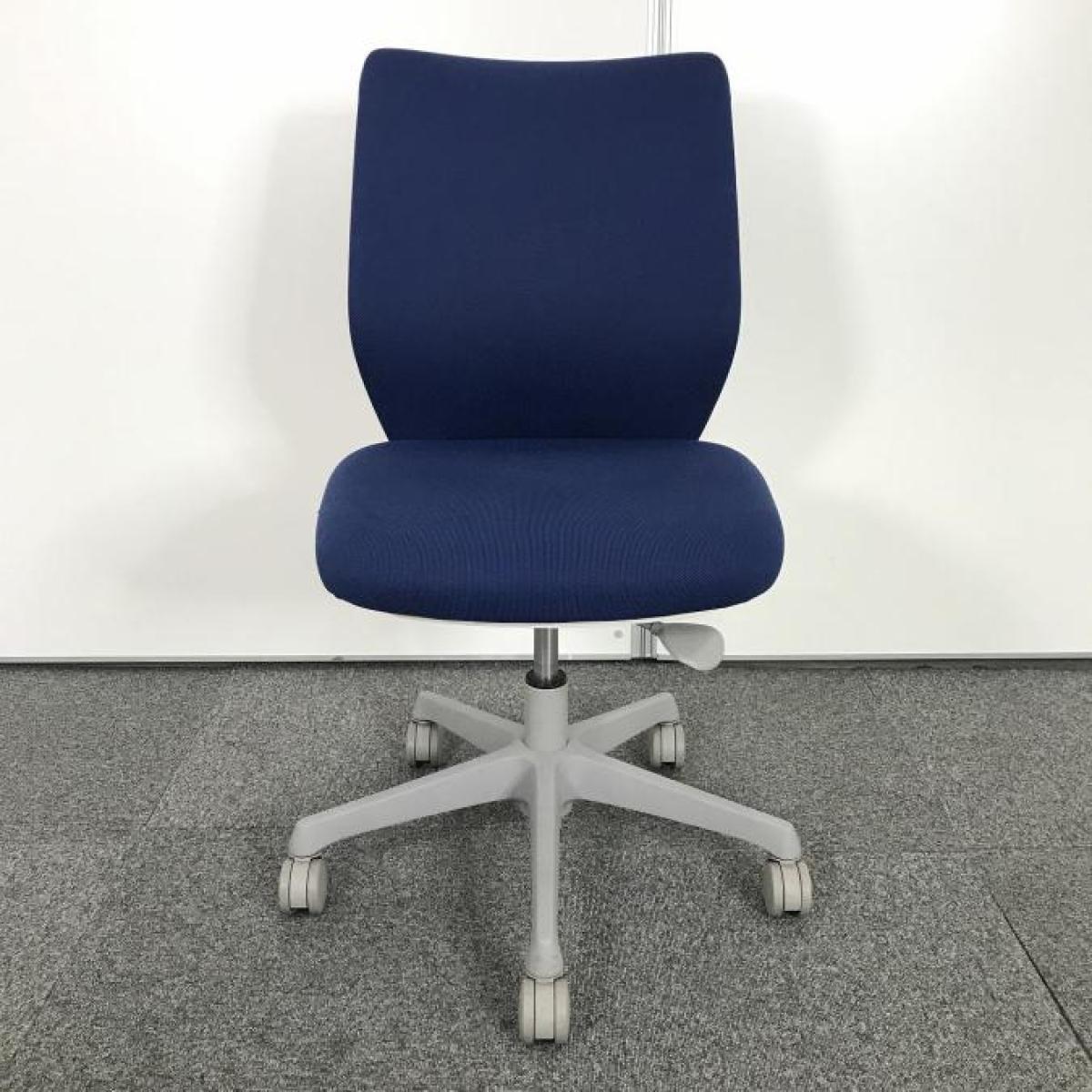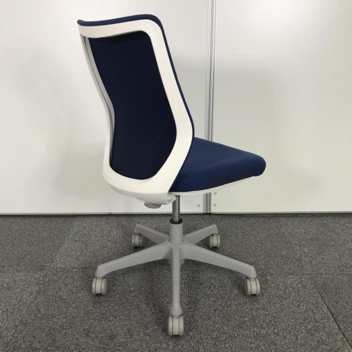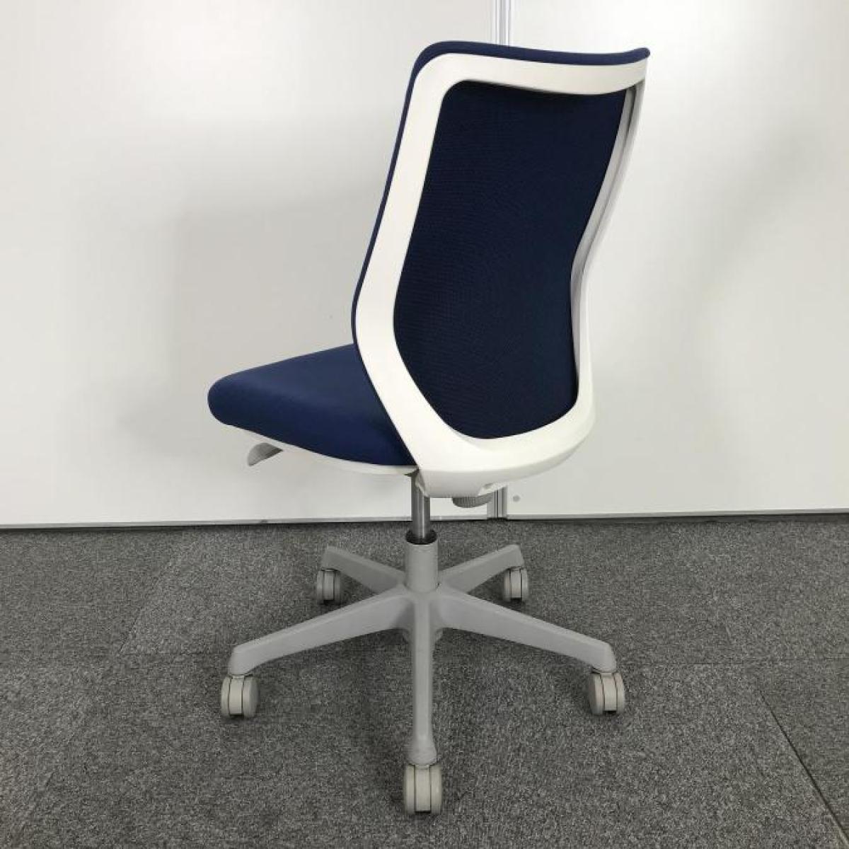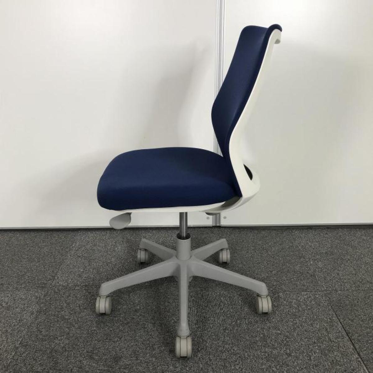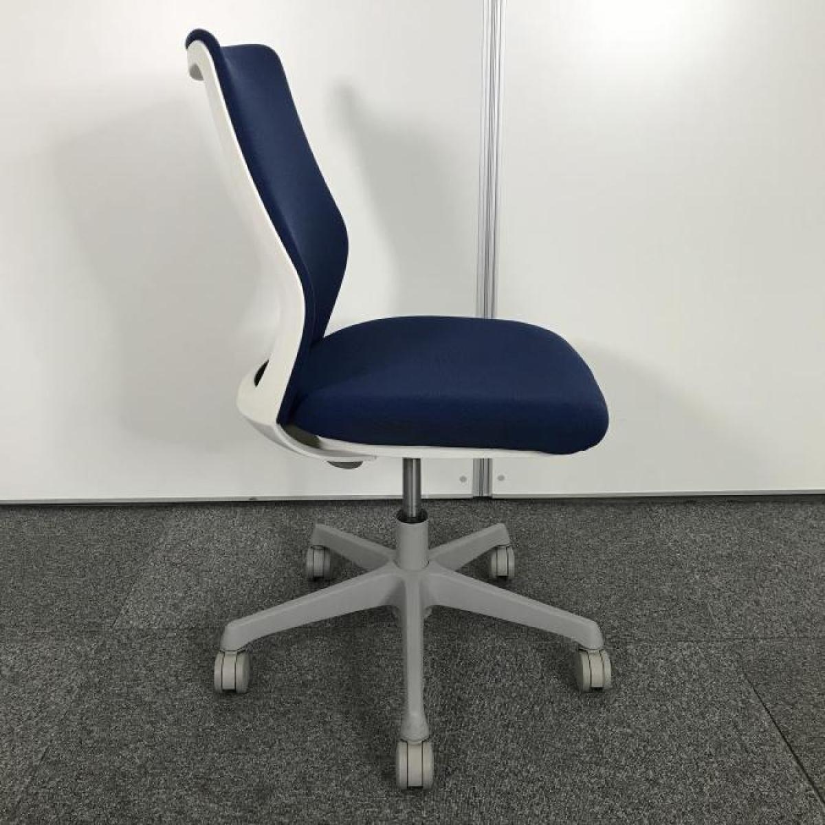 【コンパクトなサイズ感!腰への負担を減らすS字形状!】■オカムラ(okamura)製 CG-Mチェア 肘無し ローバックチェア パッドタイプ ■ミディアムブルー×ホワイトシェル- 大手町・神田サテライト
