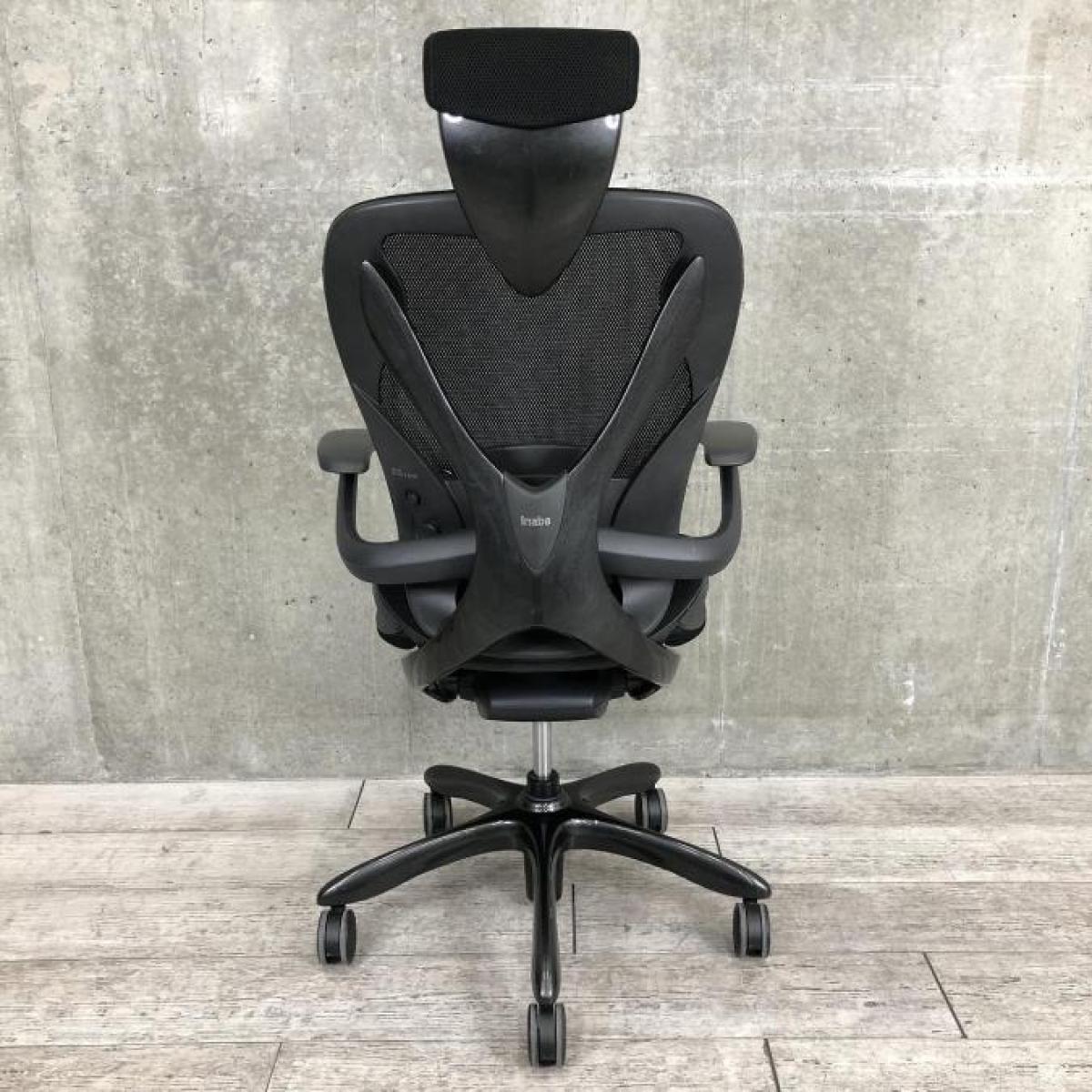 レア/希少/大人気 ■イナバ(Inaba)製 エクセアチェア(Xair) 肘付ハイバック 背面メッシュ ■固定肘 ランバーサポート付 ■ブラック ※キズ有