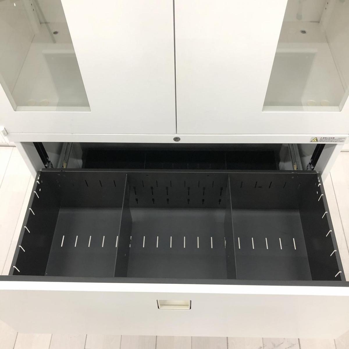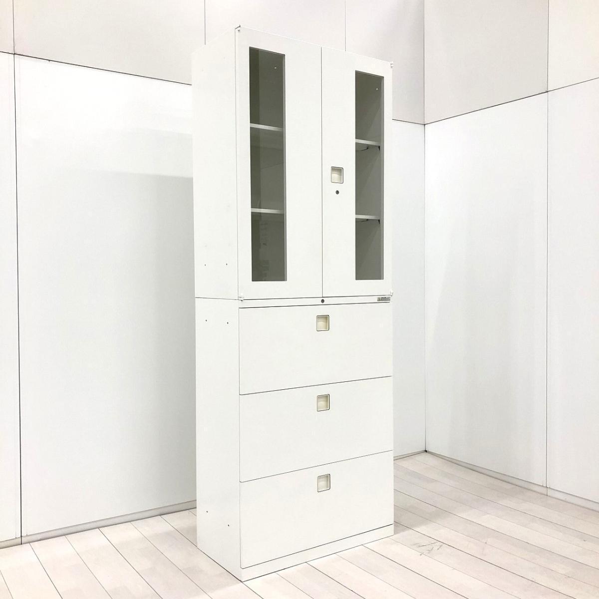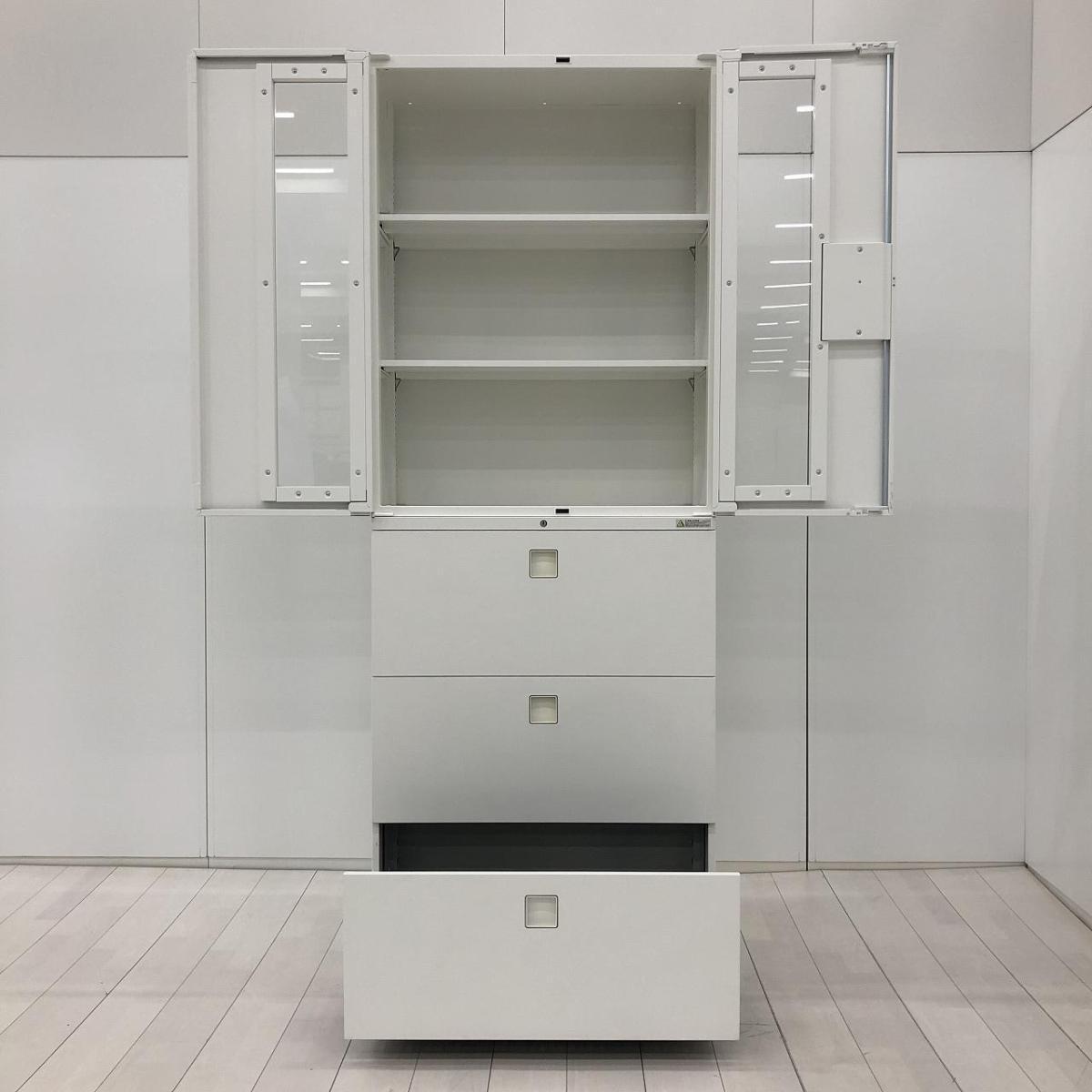 【収納物が確認できる!人気のガラス書庫入荷!省スペースに大量収納!】■オカムラ(okamura)製 レクトラインシリーズ ガラス両開き+3段ラテラル書庫セット W800×D400×H2150mm ■ホワイト在庫がある店舗一覧
