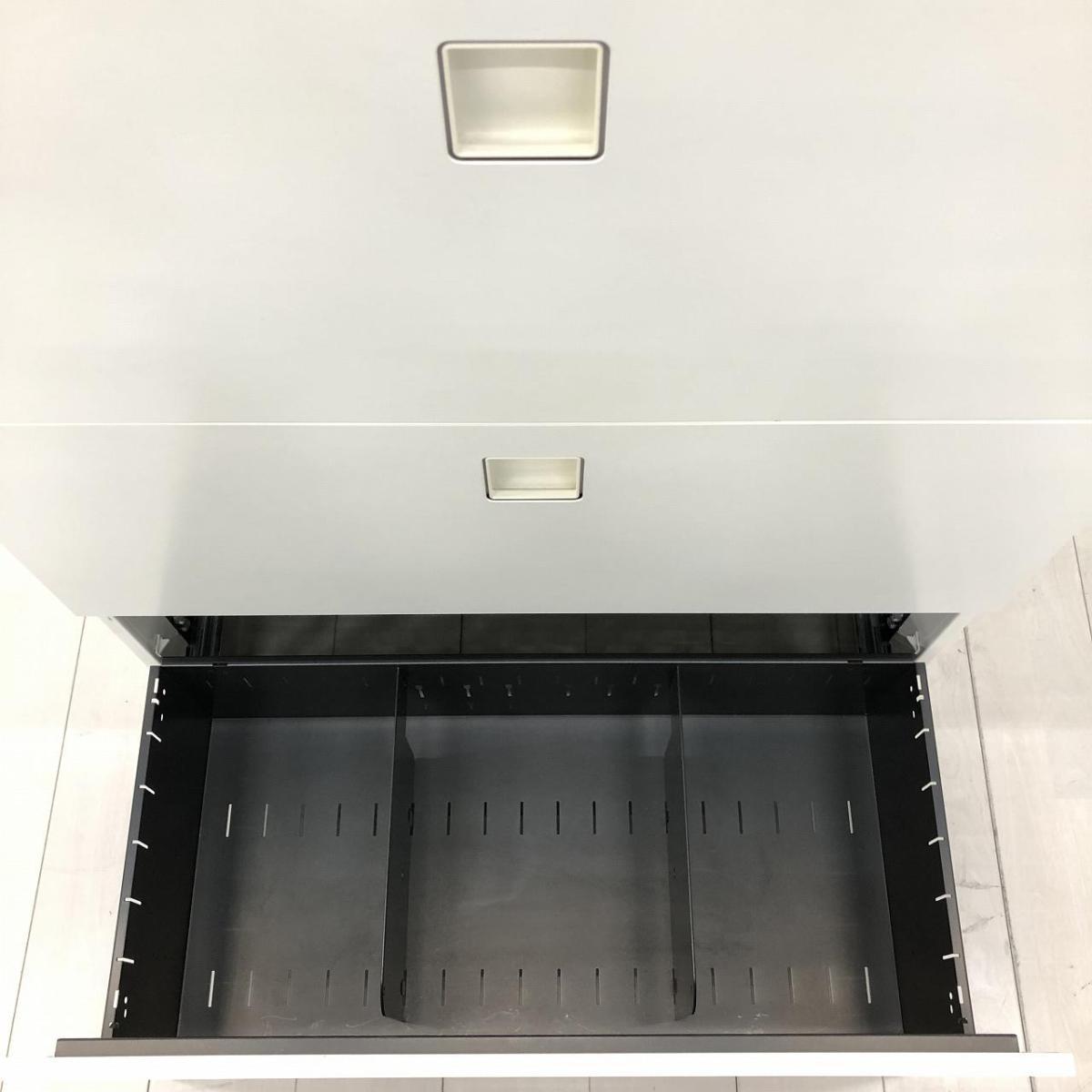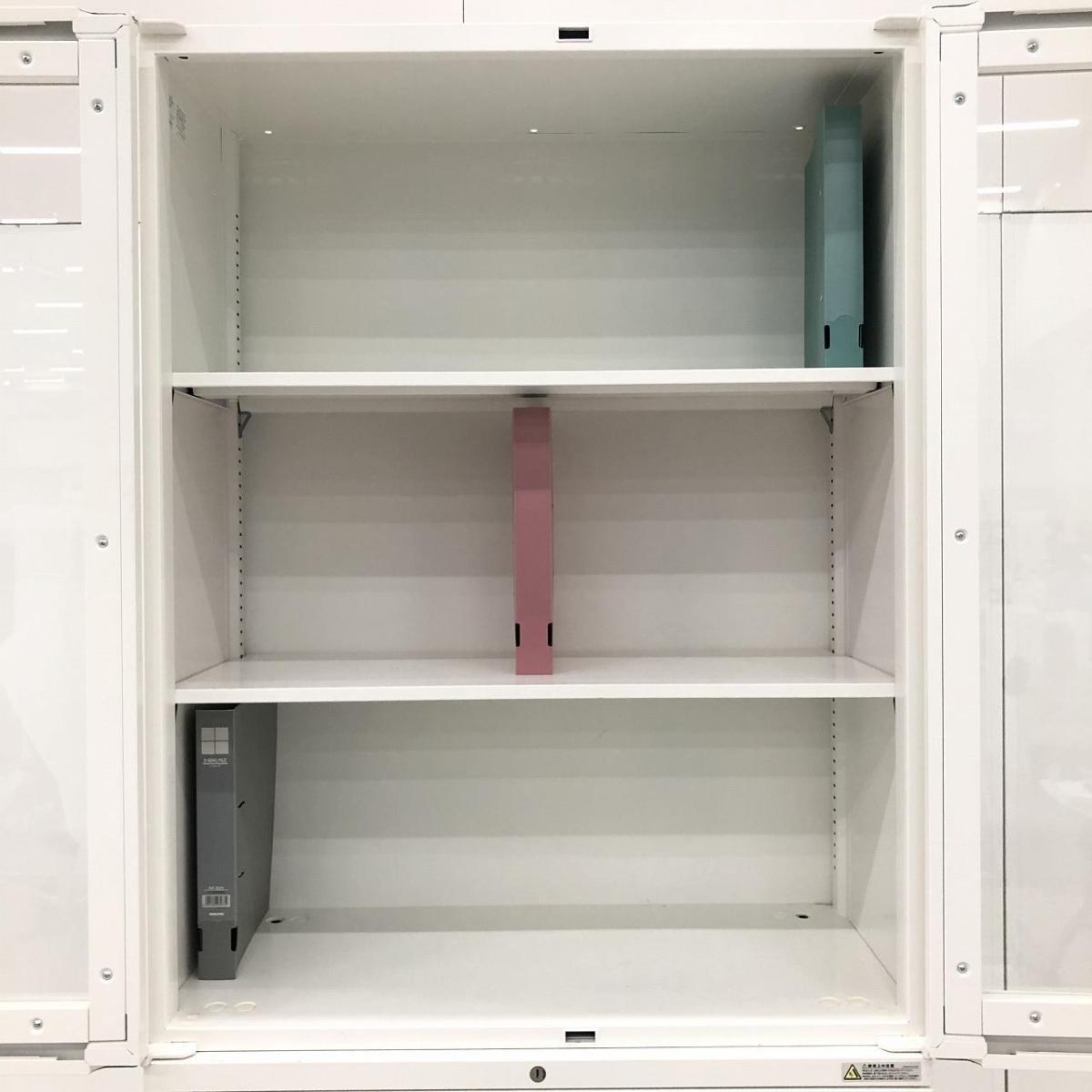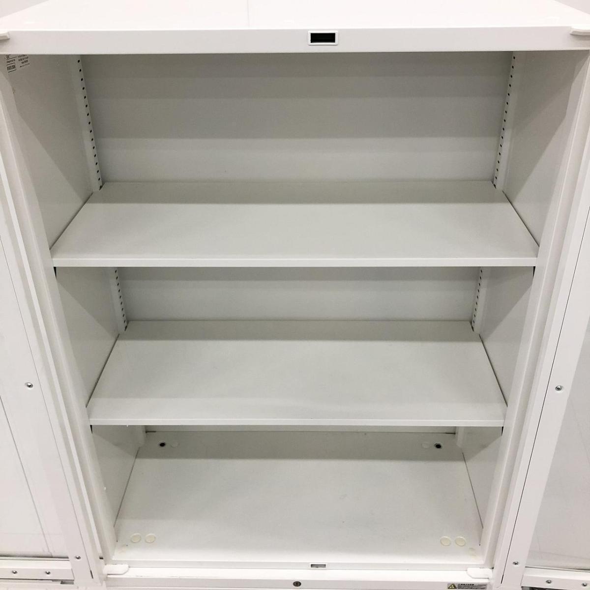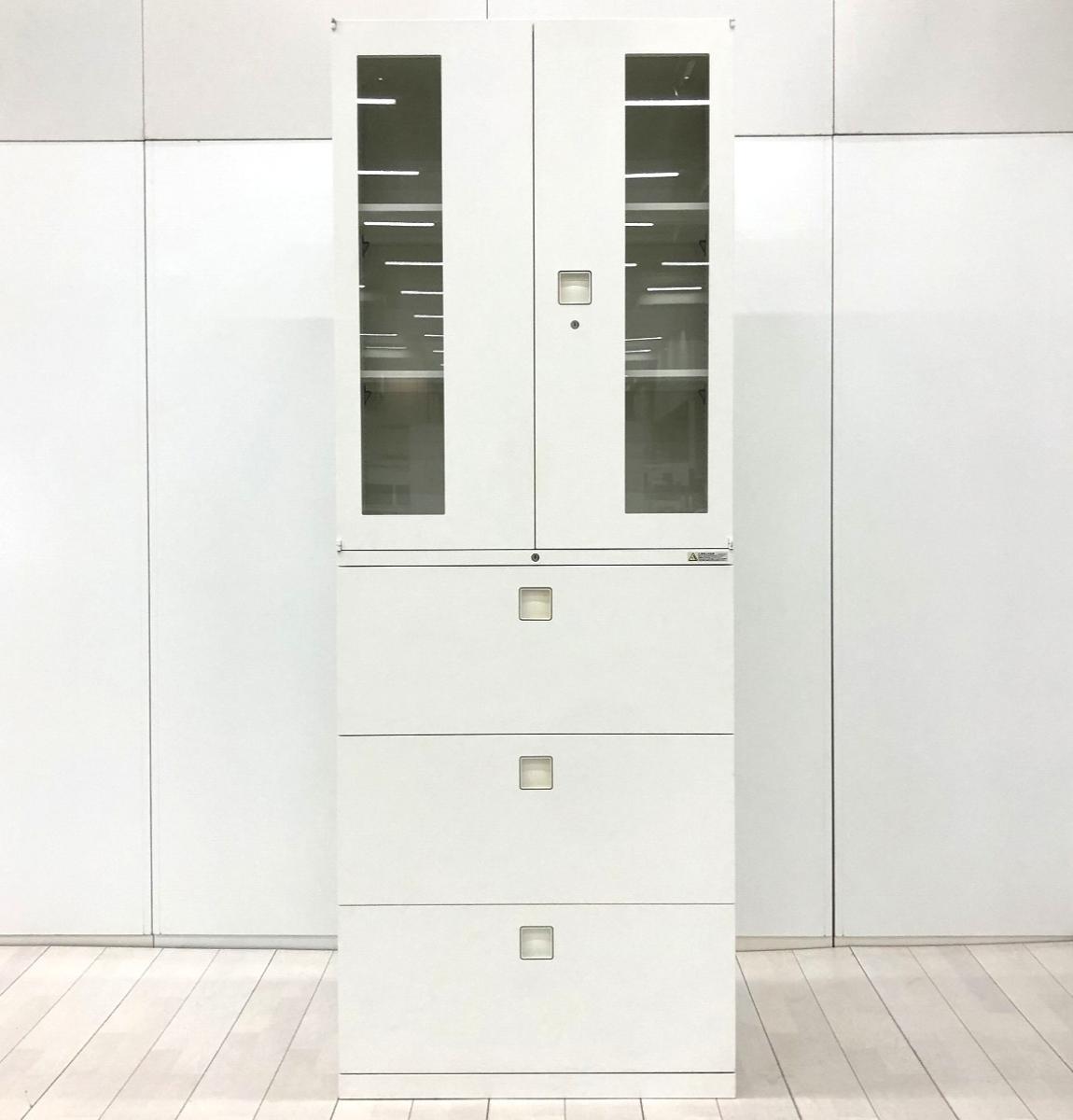 人気シリーズ入荷!定番の上段観音開き+下段引き出しタイプ!A4ファイル6段分収納可能!書類整理に非常におすすめ! ■オカムラ/レクトライン/ホワイト ヒンジ有タイプ
