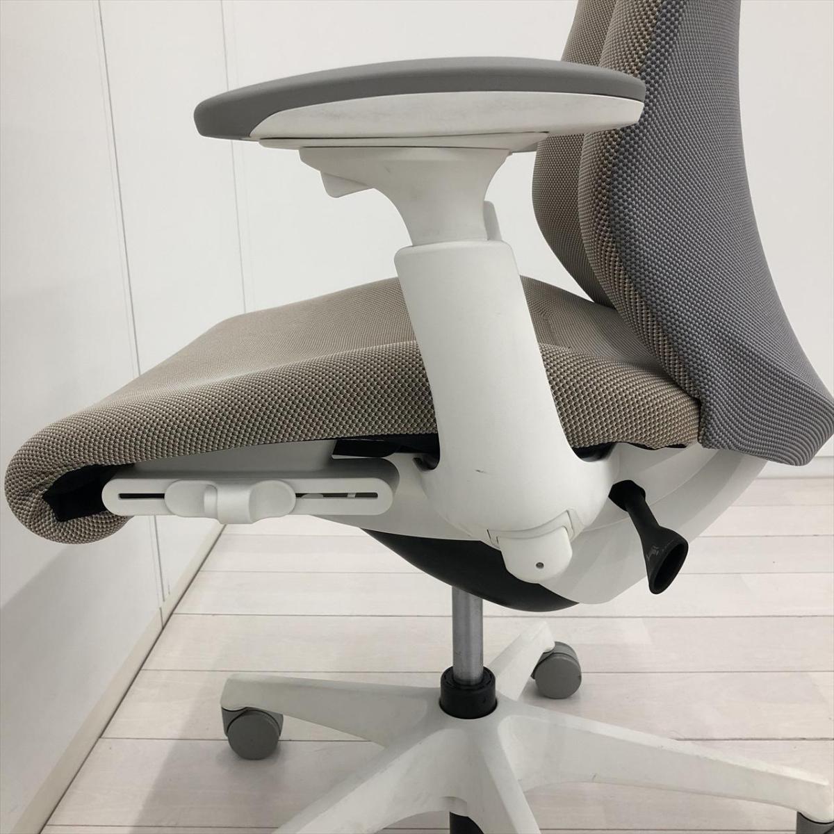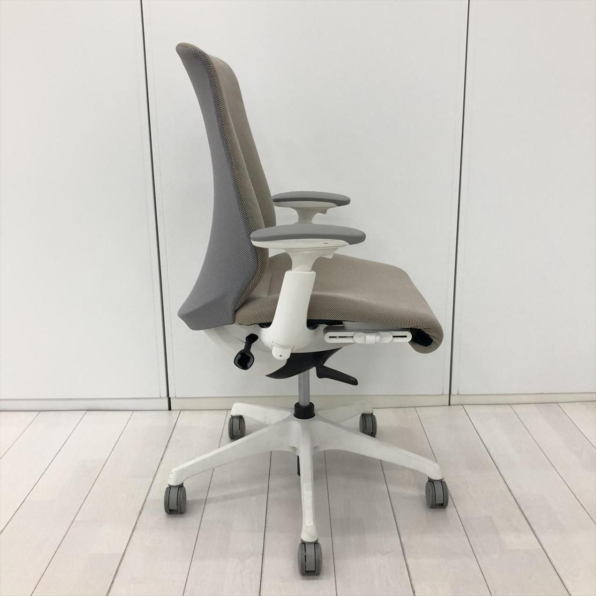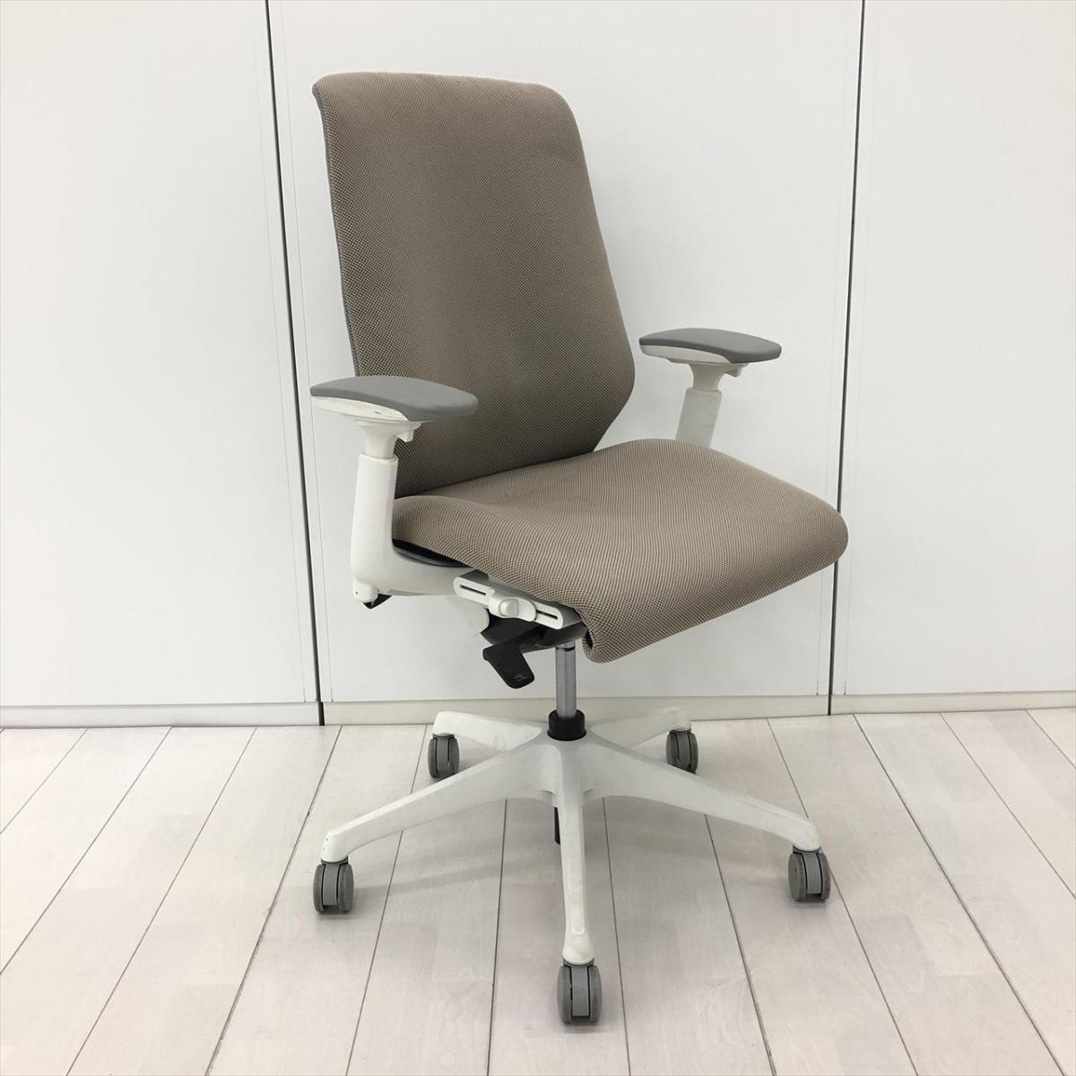 【長時間座っても疲れにくく快適な座り心地!】■オカムラ スフィアチェア 可動肘付 背表:ベージュ / 背裏:グレー ■座るだけで体格にあわせて自然に変形!3Dフィジカルフィットシェル!【Okamura Spher】- 川崎店