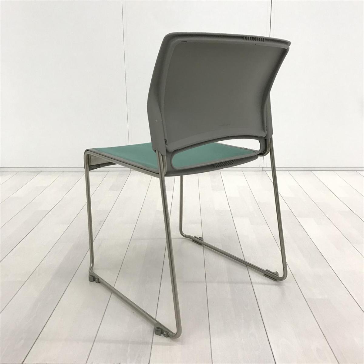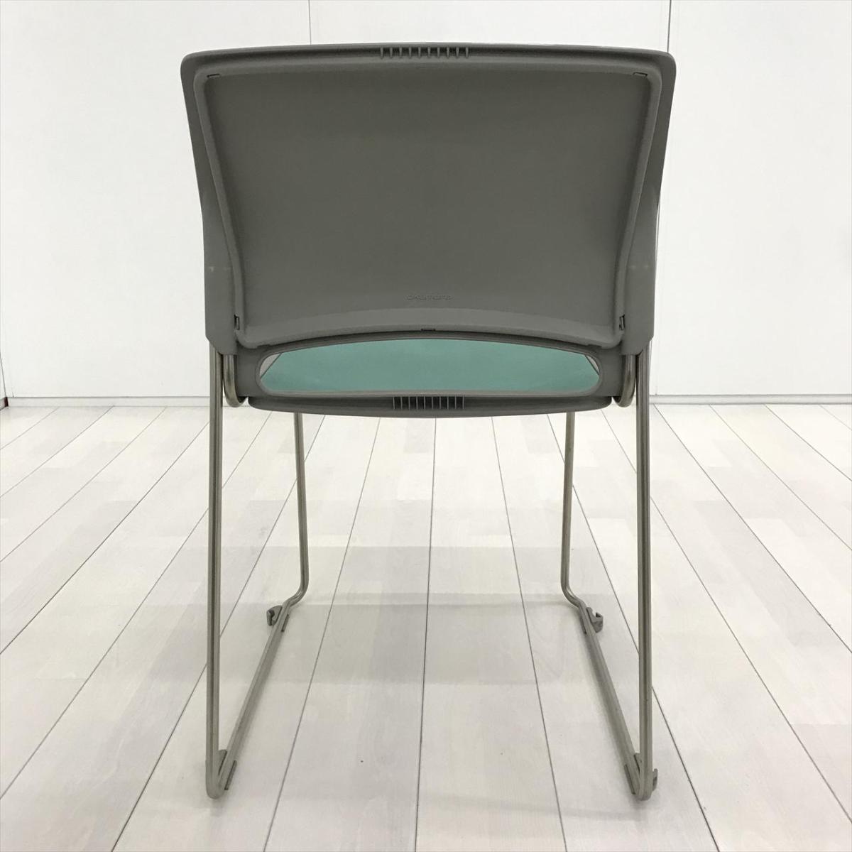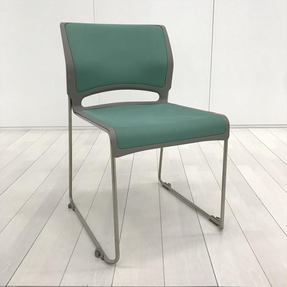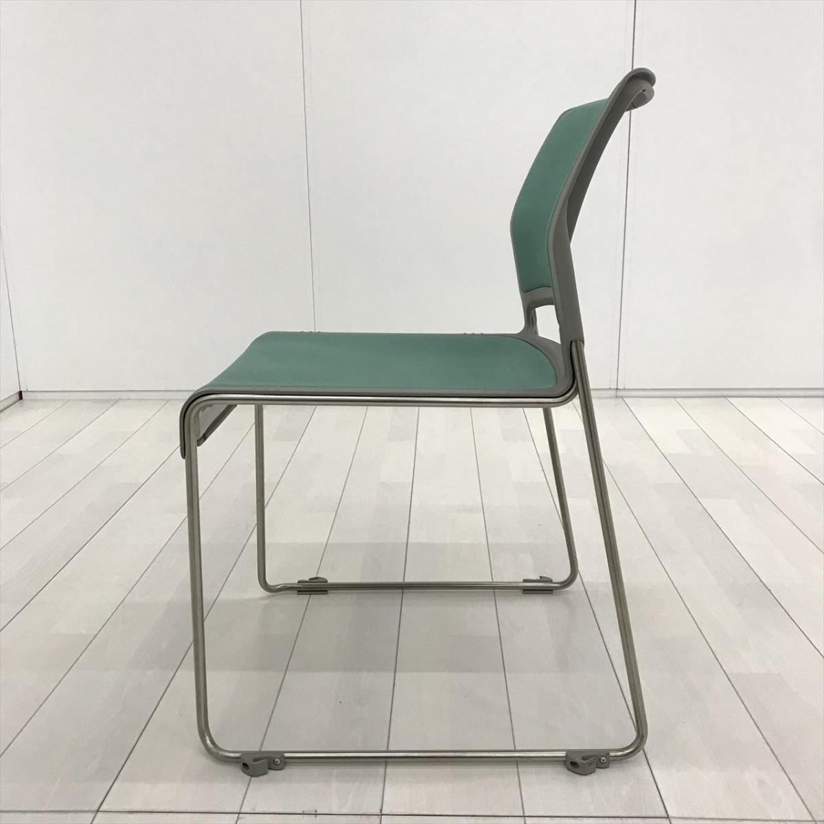 【重ねることで邪魔にならないスペース効率を考えたチェア!】■オカムラ(okamura)製 リット(LITTO)シリーズ スタッキングチェア ミーティングチェア ■クローズ脚 ■背・座面 :ビニールレザー ■ライトグリーン- 茨城南店