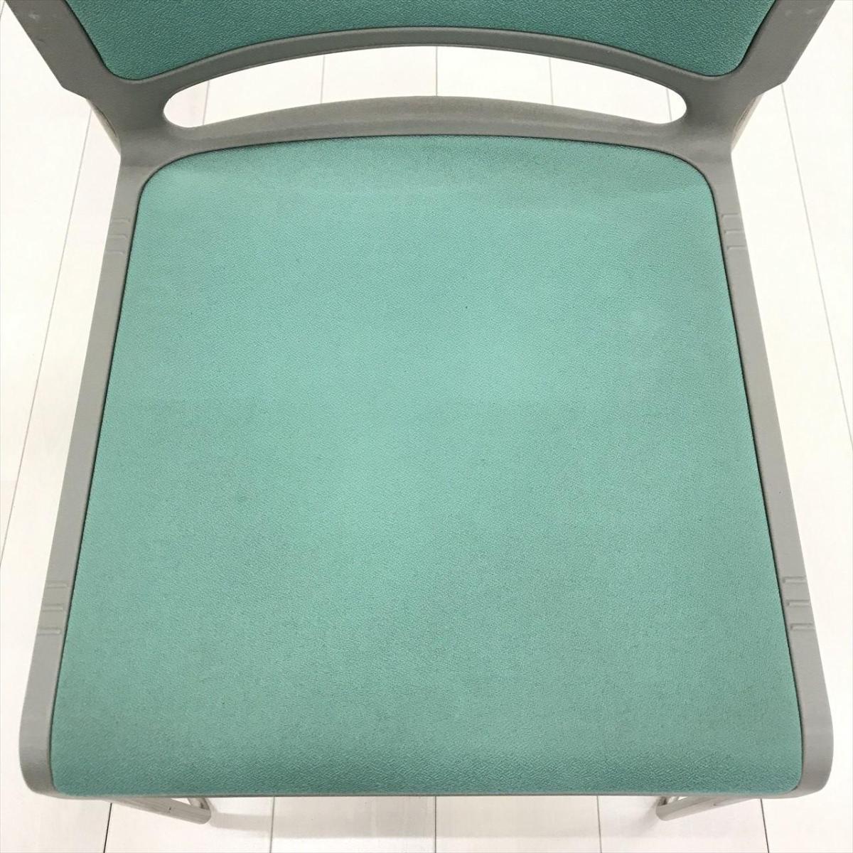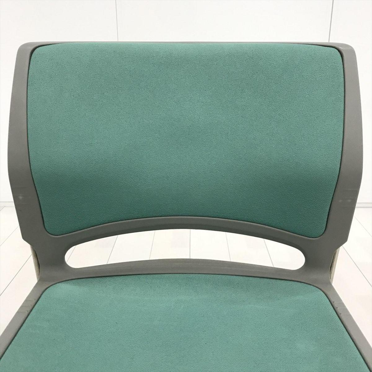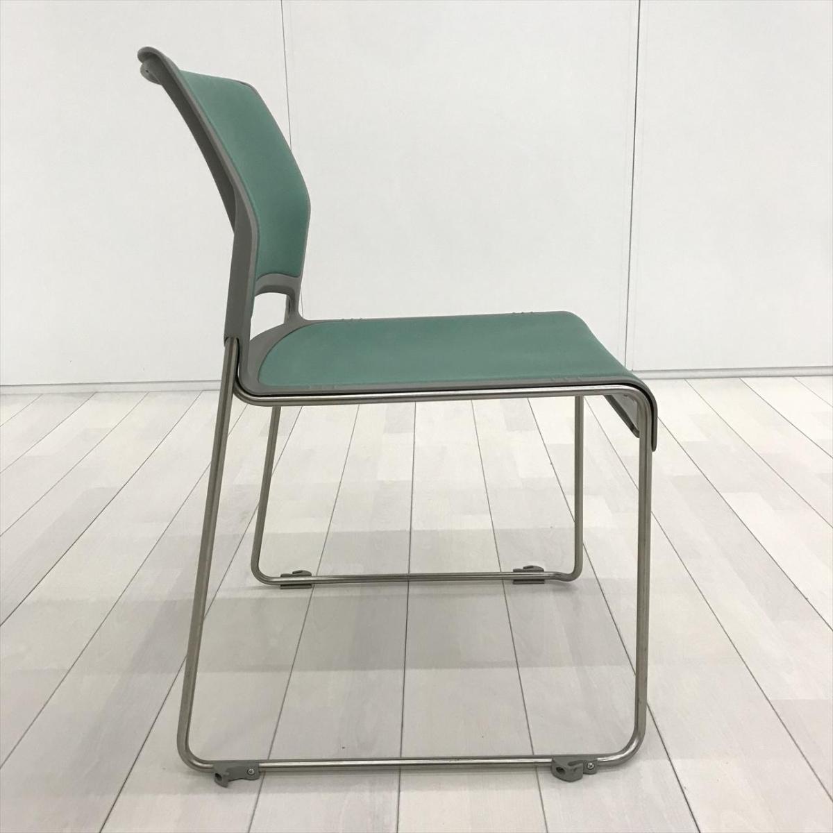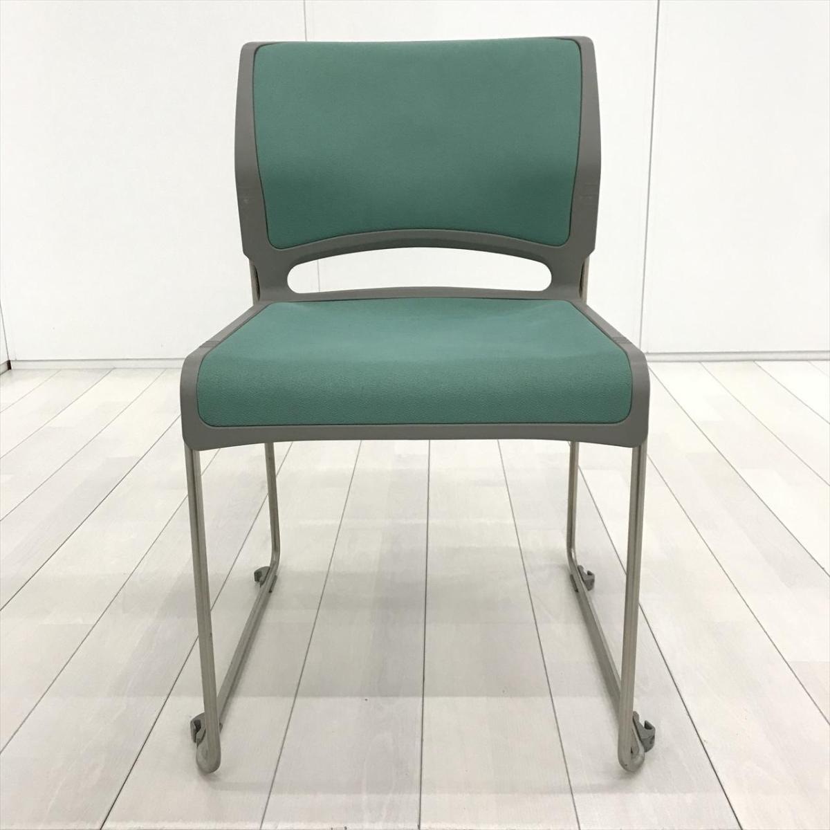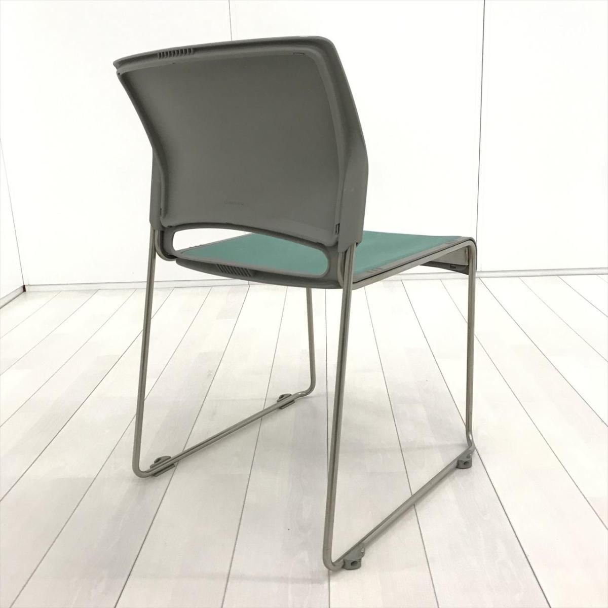 【重ねることで邪魔にならないスペース効率を考えたチェア!】■オカムラ(okamura)製 リット(LITTO)シリーズ スタッキングチェア ミーティングチェア ■クローズ脚 ■背・座面 :ビニールレザー ■ライトグリーン- 茨城南店