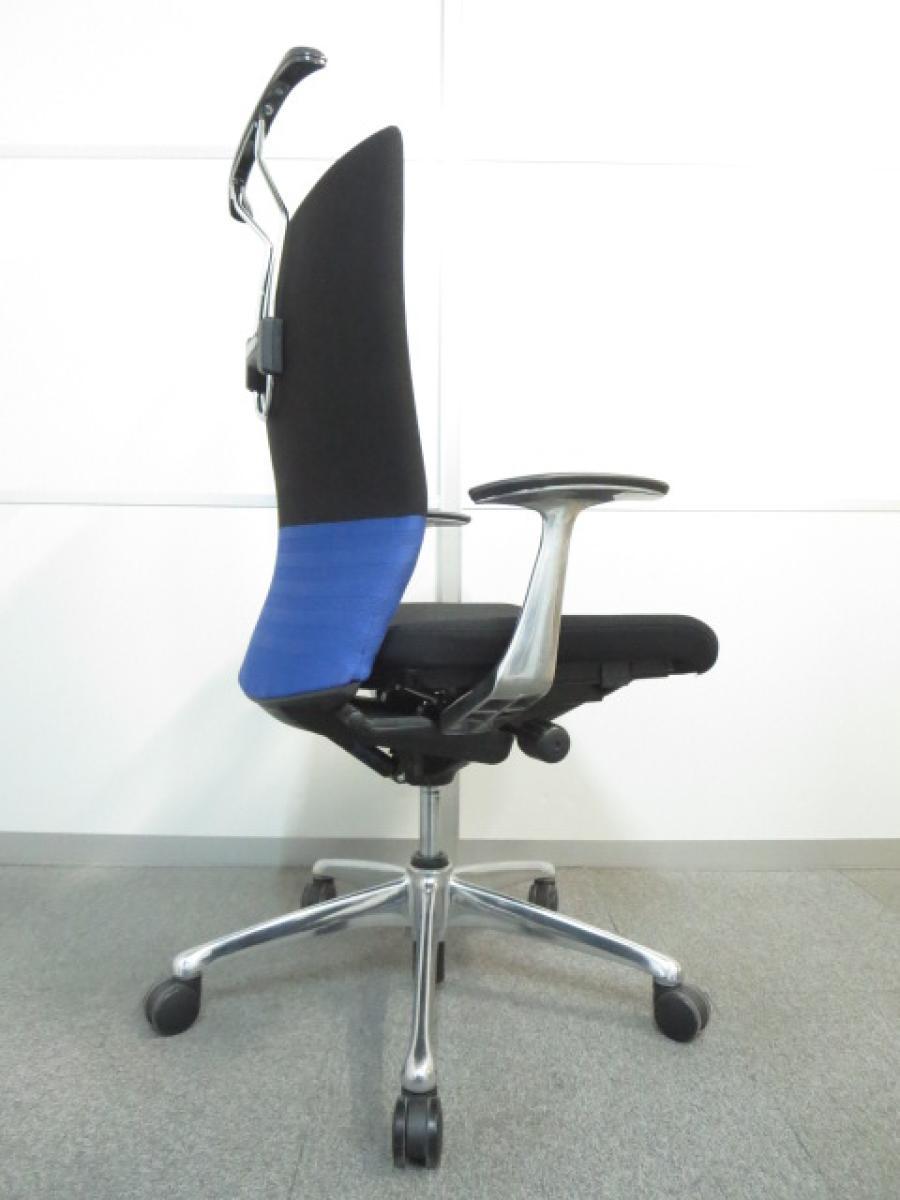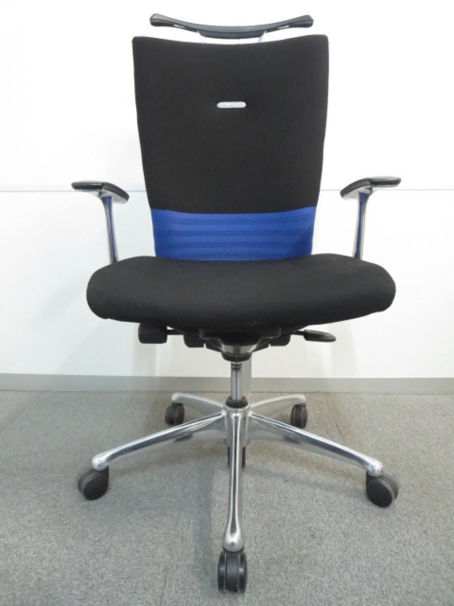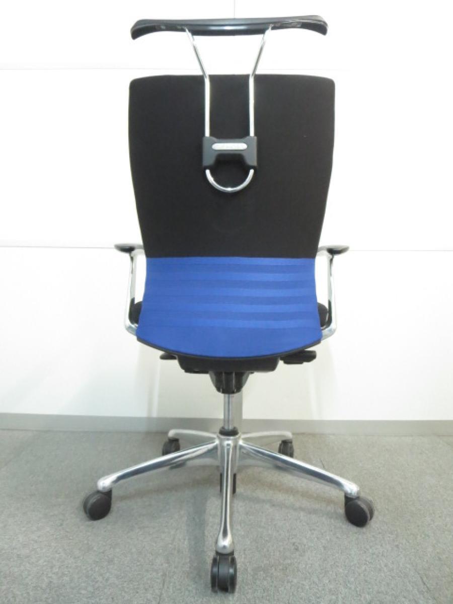 【快適な座り心地に高級感のあるデザイン!】■オカムラ フィーゴチェア 肘付 ベルトライン:ブルー ■背中全体を優しくサポート!- 宇都宮サテライト