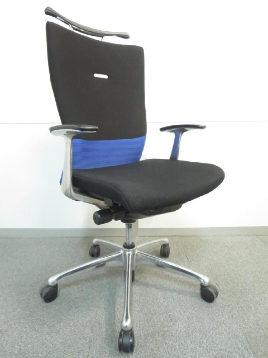 ■オカムラ(okamura)製 ■フィーゴ(feego)チェア ■肘付き/固定肘 ■ハイバック ■クッションタイプ ■ブルー×ブラック ■オススメ/大人気/定番商品 【弊社使用欄:A01041389】