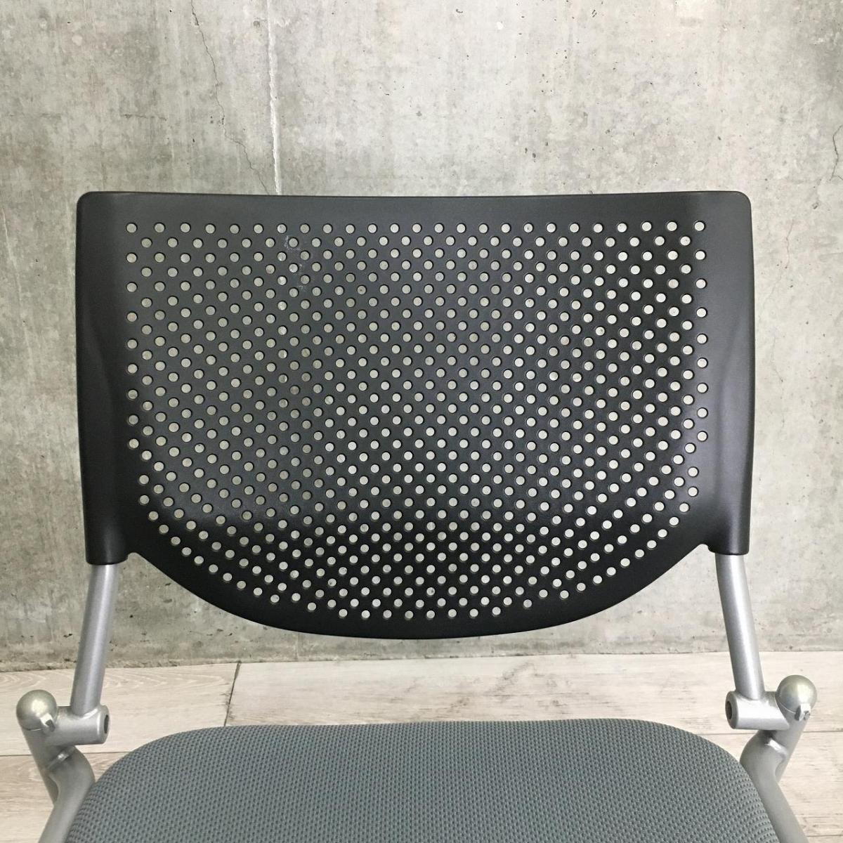 【定価4万円】【連ねて収納可能!】【ミーティングルームやリフレッシュルーム用としてオススメ!】■オカムラ(okamura)製 プロスタック スタッキングチェア プレーンタイプ ■座面グレー/背面樹脂メッシュ:ブラック ■キャスター付 ■メッシュ