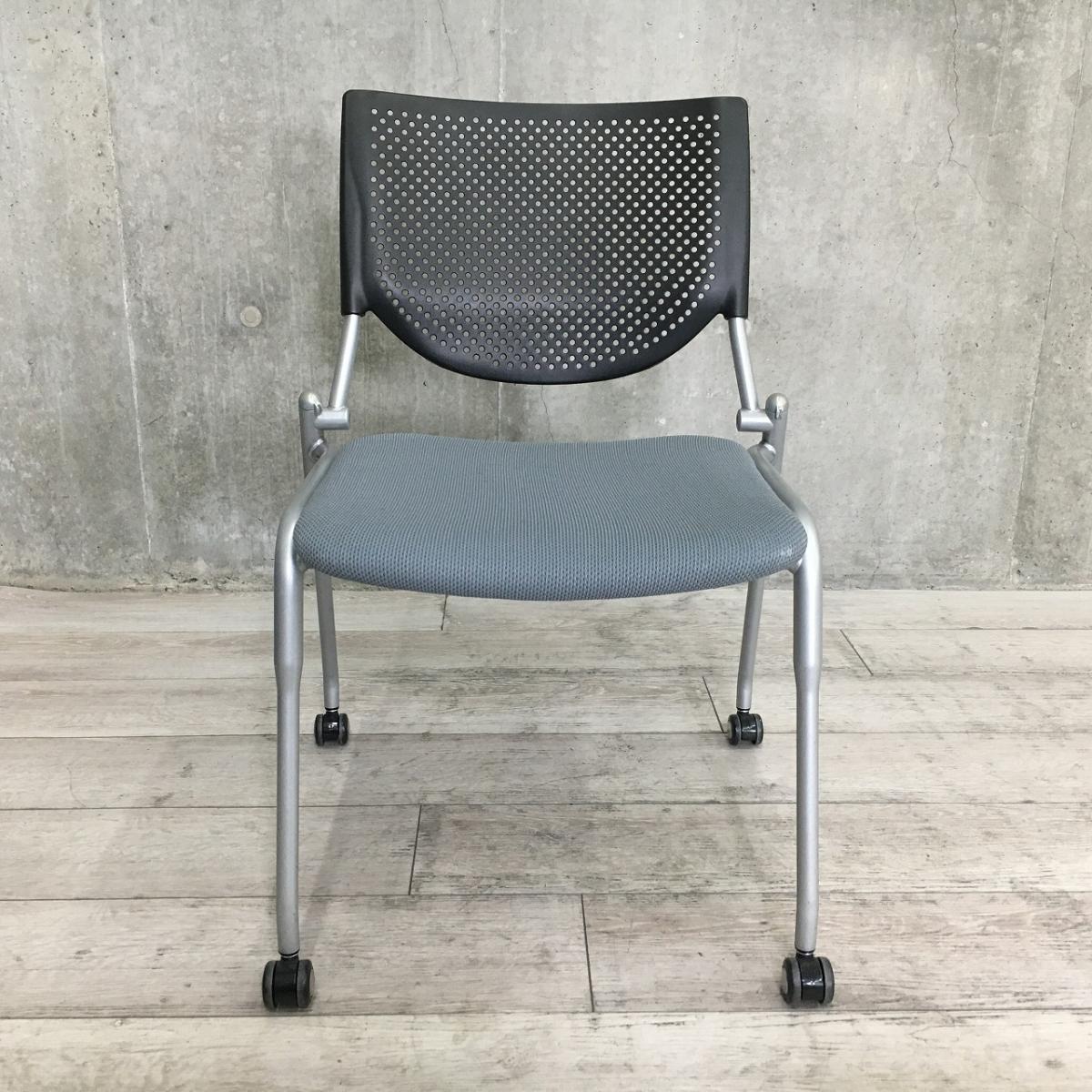 【在庫入替セール】オカムラ プロスタック スタッキングチェア 座グレー×背ブラック キャスター付 会議や打ち合わせ用に 収納もできてオフィスの省スペース化に最適