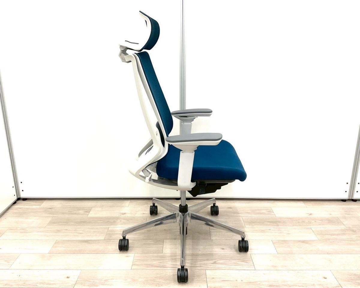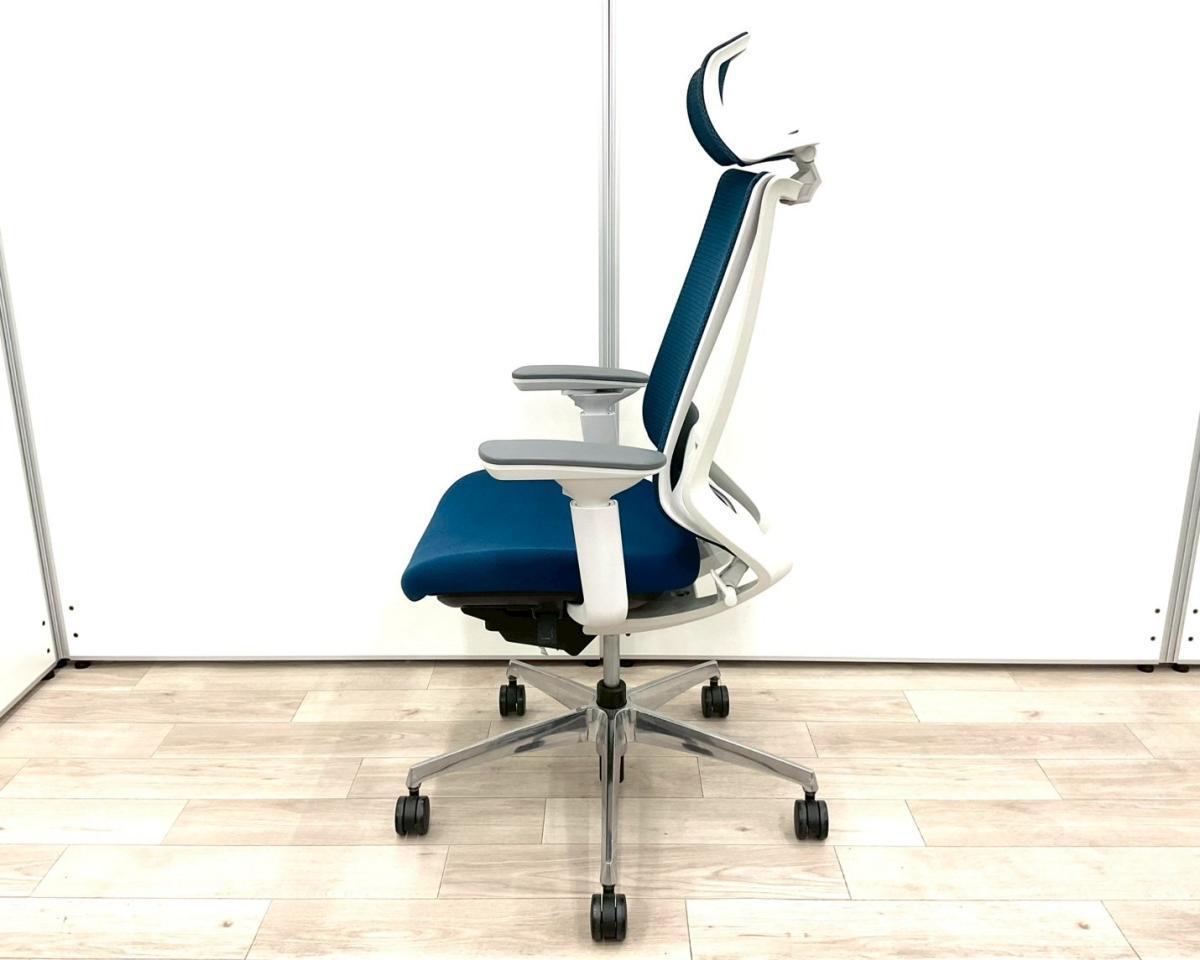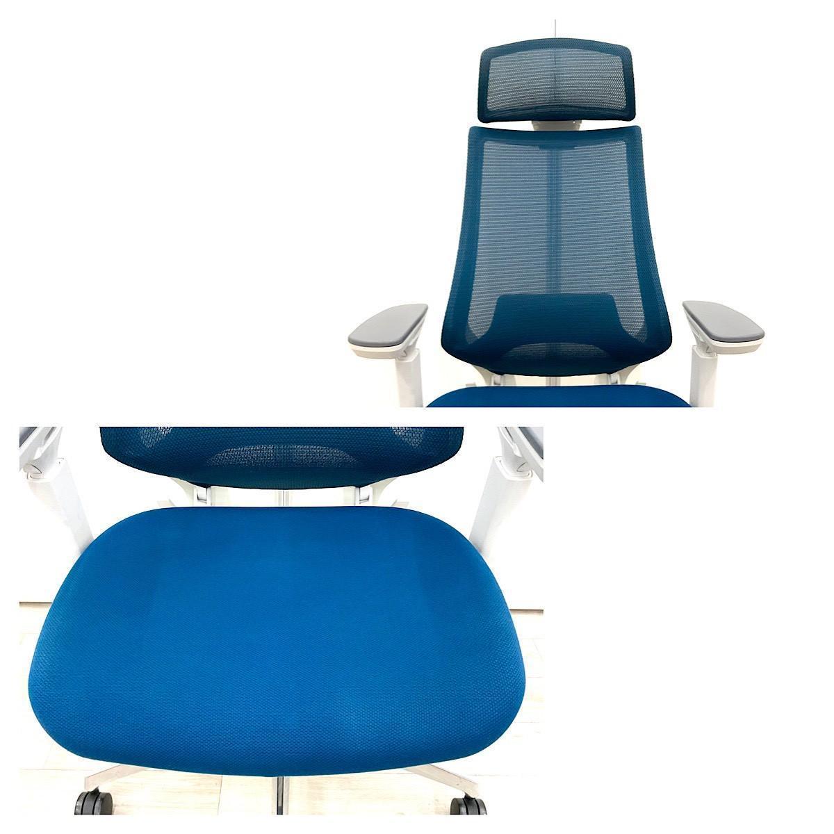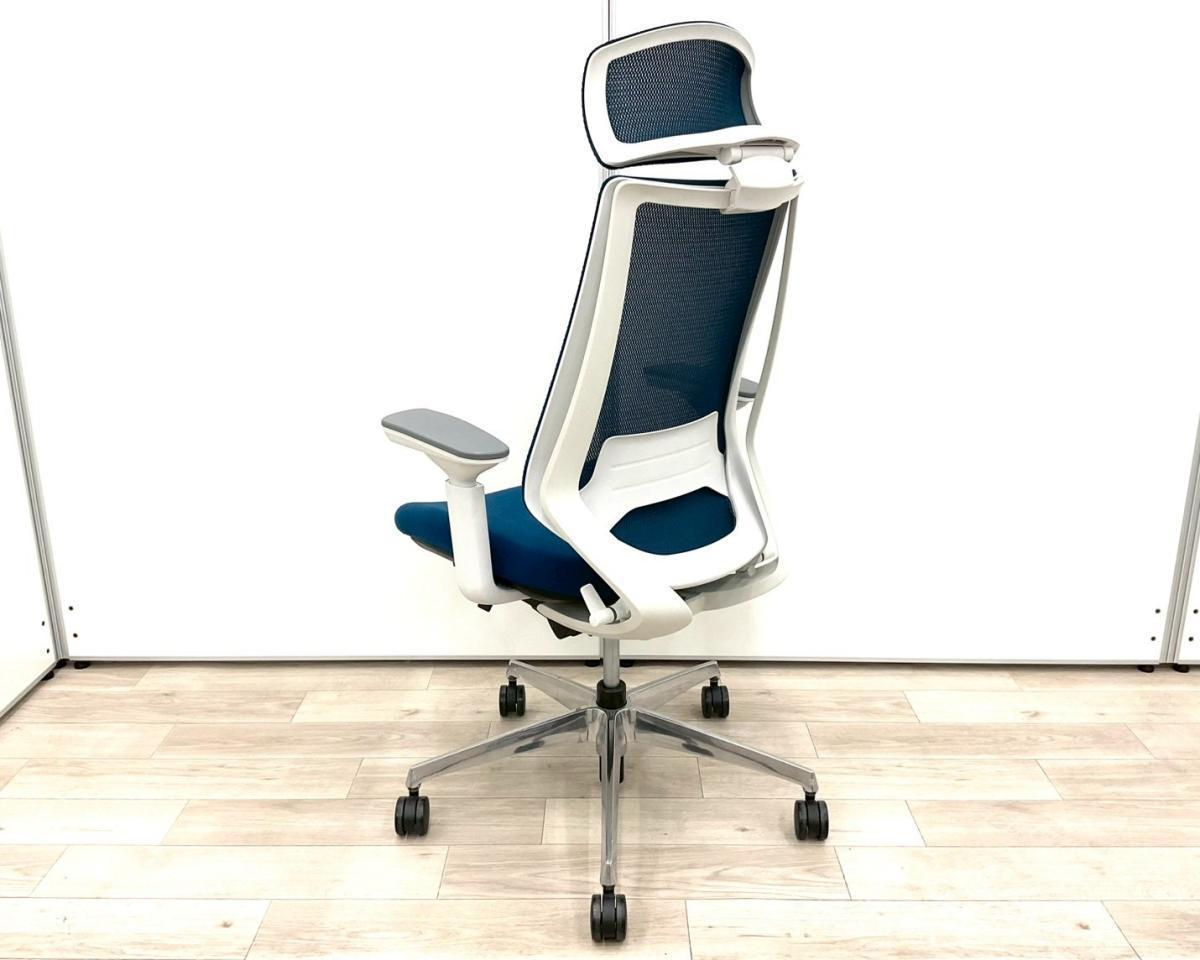 ■コクヨ(KOKUYO)製 ■デュオラ(Duora)チェア ■肘付き/可動肘 ■ハイバック ■背面メッシュ ■ヘッドレスト付き ■ランバーサポート付き ■ブルー×ホワイトシェル 【弊社使用欄:A01062318 】サーキュラーバリューCO2削減量の算出について