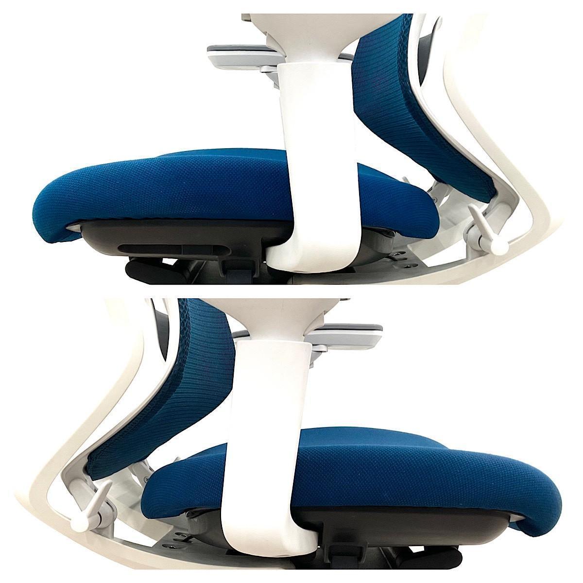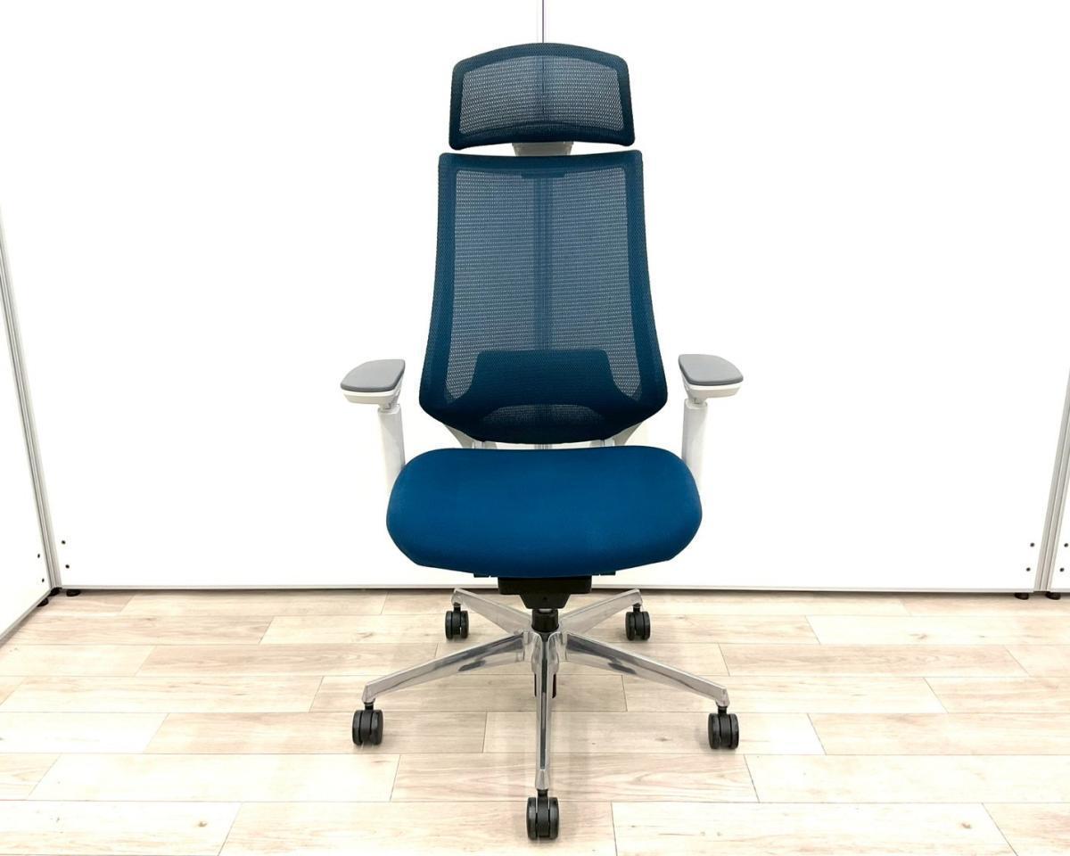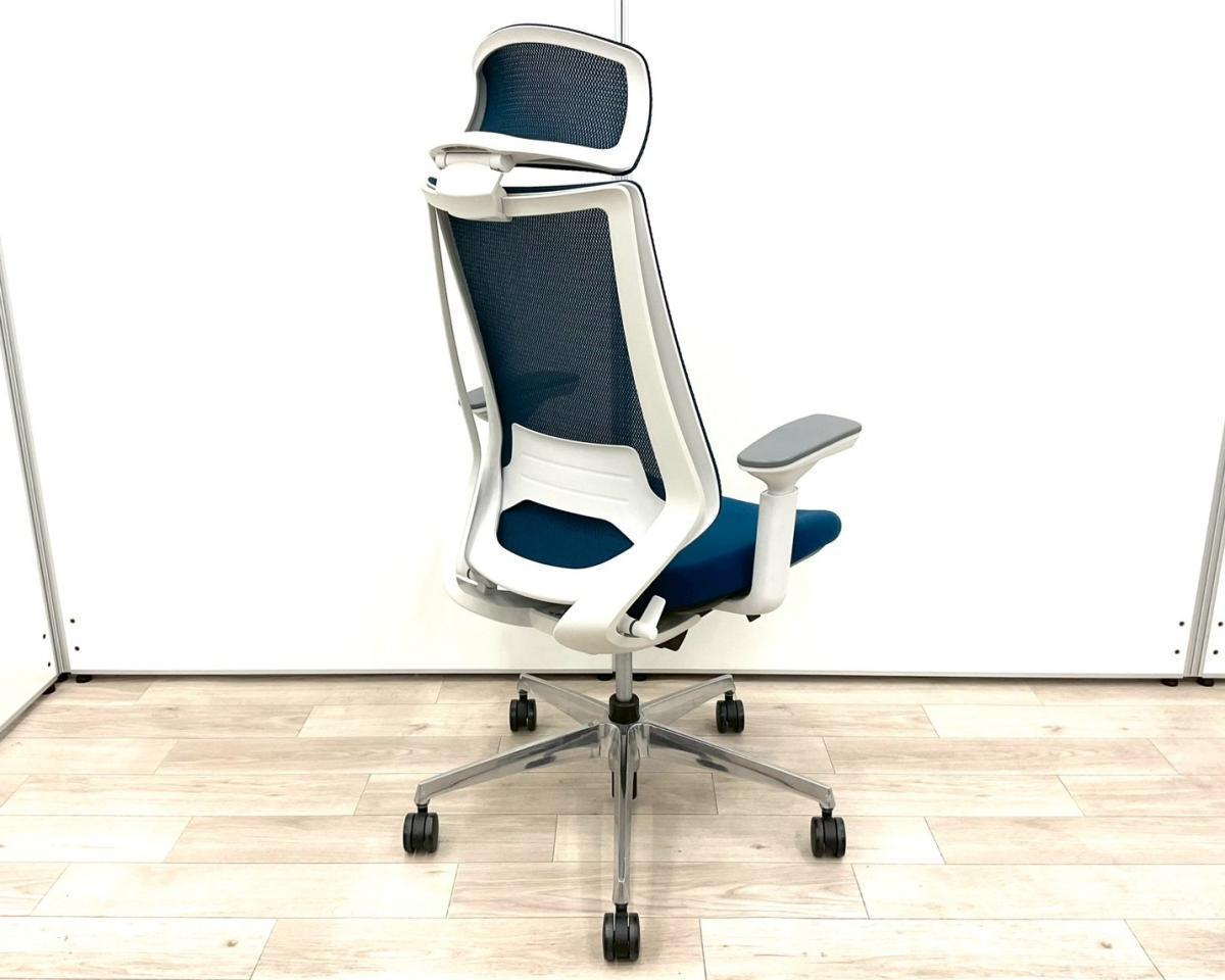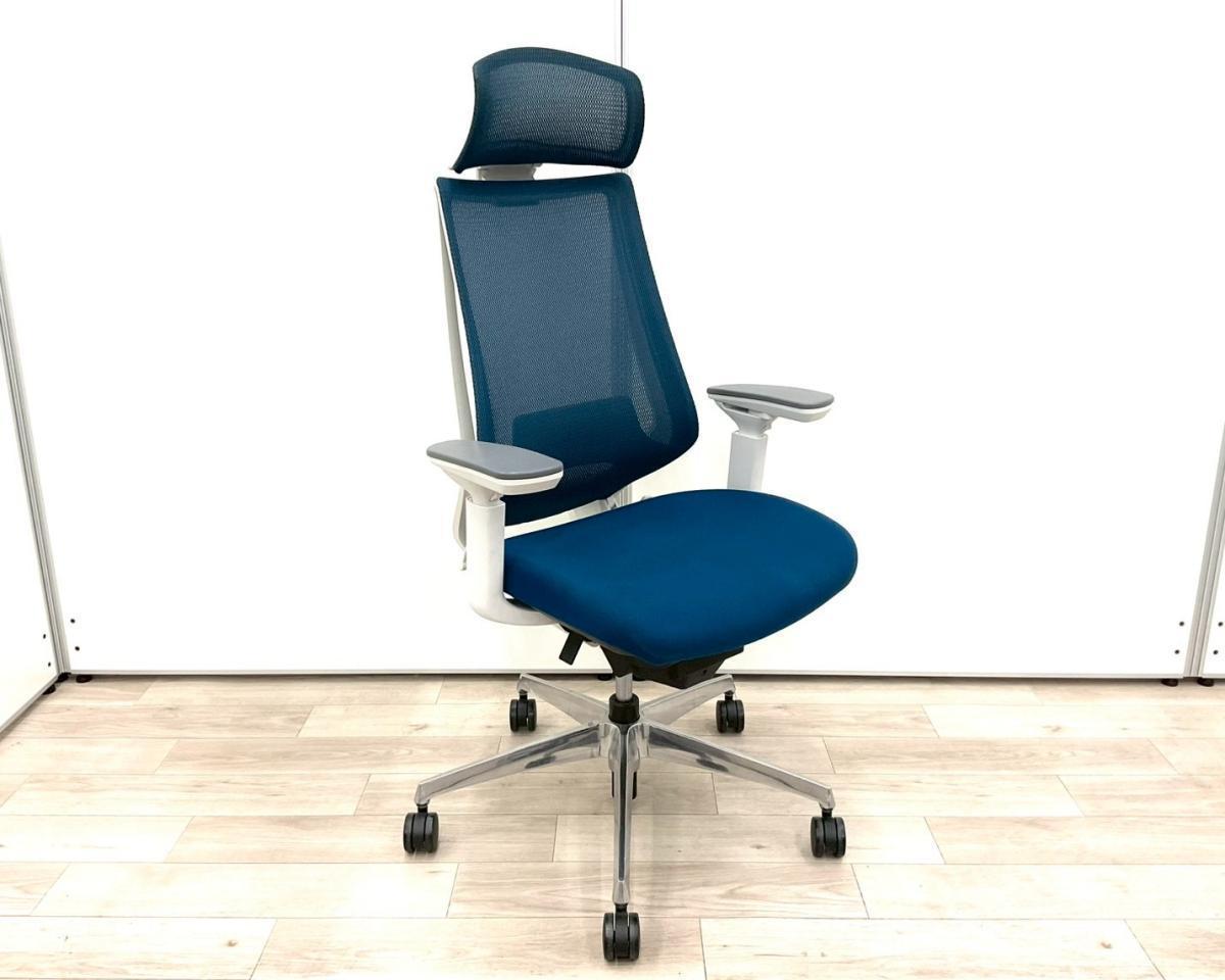 【在庫入替セール品!(本在庫限定価格)】【二重フレーム構造がもたらすしなやかで美しい背もたれ機能!簡易操作で自分に合った姿勢をサポート!】■コクヨ(KOKUYO)製 デュオラ(Duora)チェア ハイバック 肘付き ■背面メッシュ ■可動肘 ■プルシアンブルー×ホワイトシェル【弊社使用欄:A01034523】【HU】