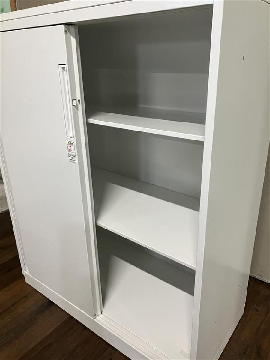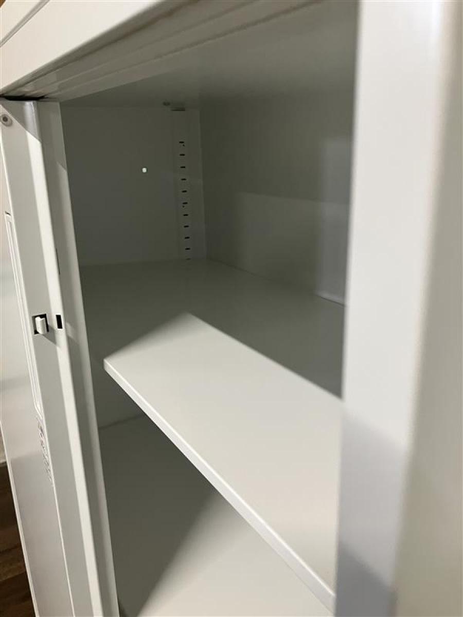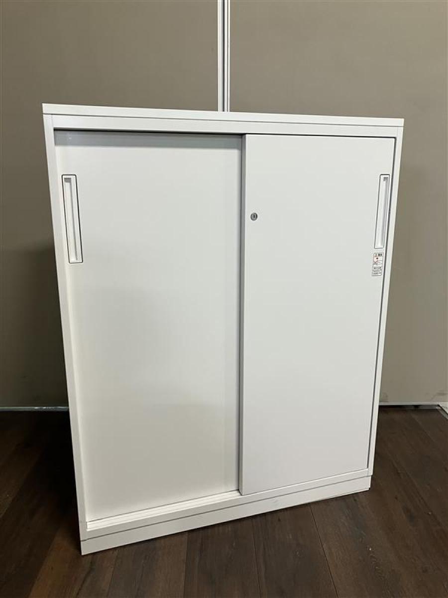 ★【T3】【T12】【商品入替のため、残り1台限り】コクヨ製 エディア ホワイト 2枚タイプ W900xD450xH1130サイズ ホワイト天板付 シリンダー 導線を確保できる引き違い戸のキャビネット! ローキャビネット 引き違い書庫!!【管理番号:A01036262】