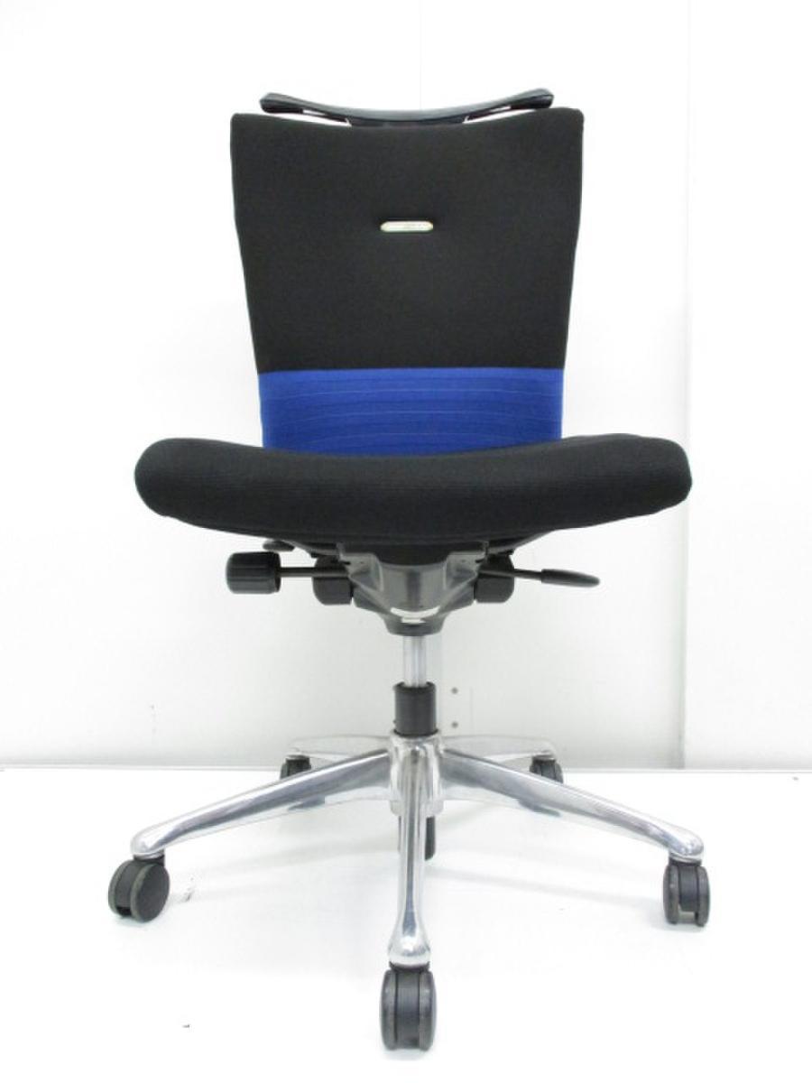 【快適な座り心地に高級感のあるデザイン!】■オカムラ フィーゴチェア 肘無し ベルトライン:ブルー ■背中全体を優しくサポート!【AD】- 宇都宮サテライト