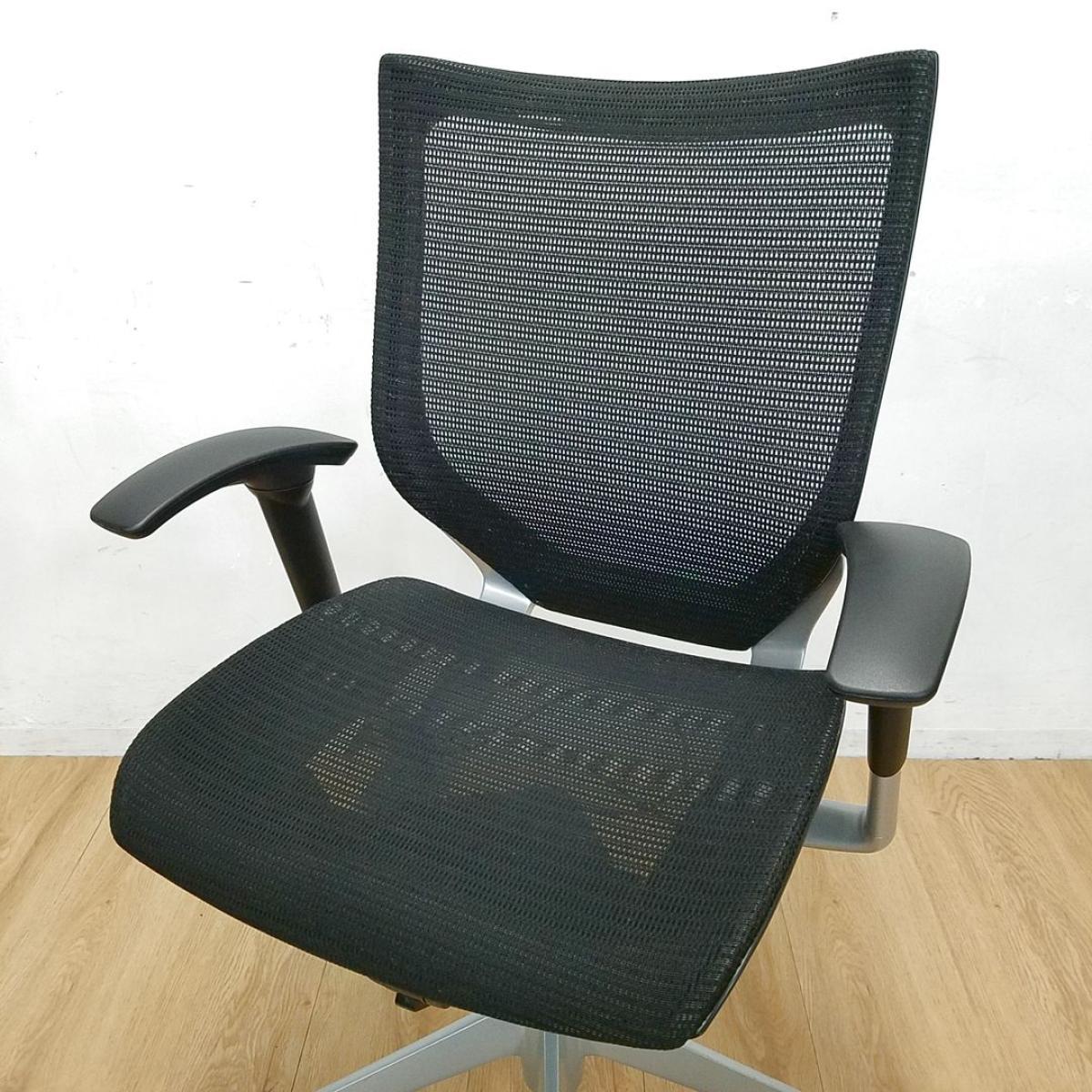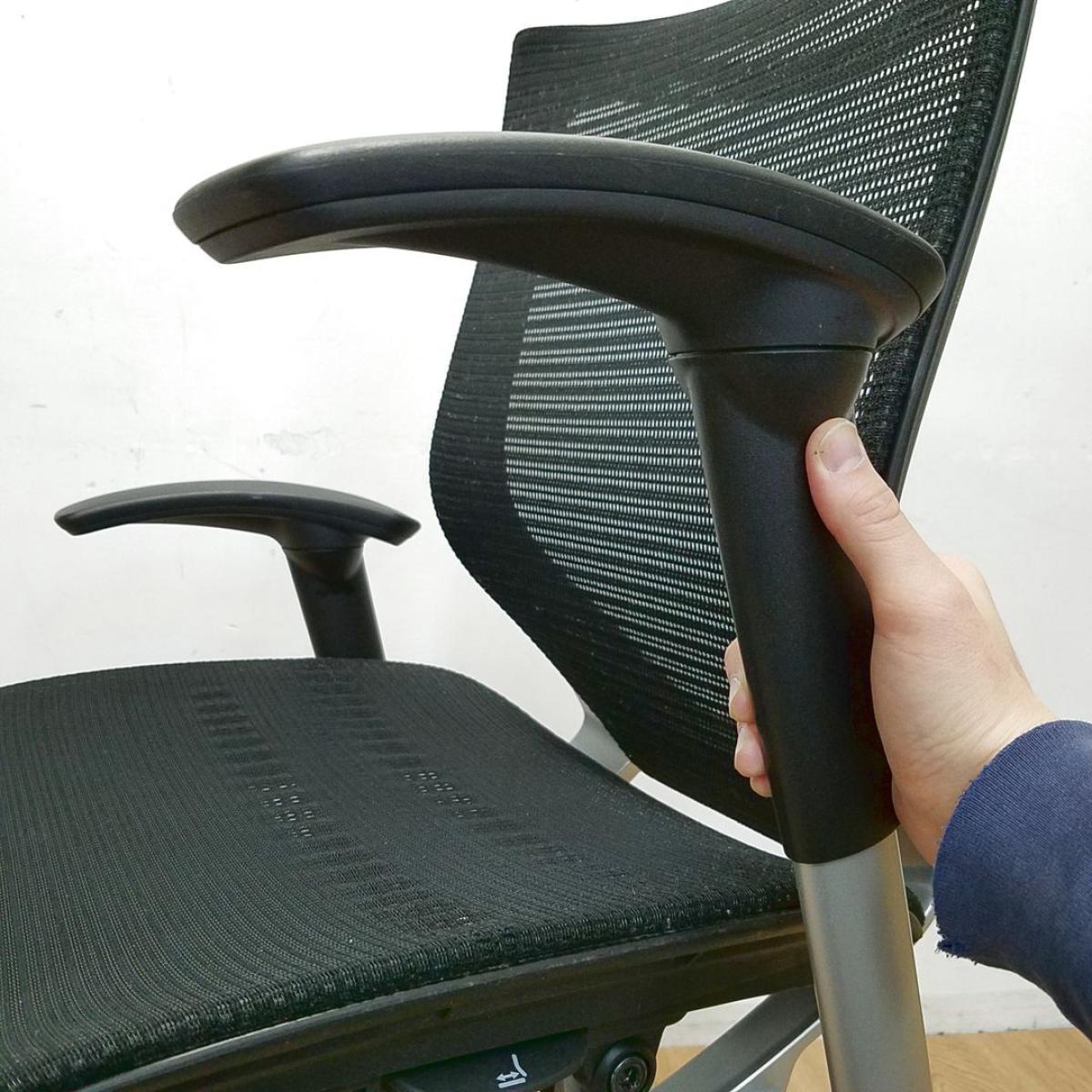 【長時間の着座でも疲れにくいサポート感!】■オカムラ(okamura)製 バロンチェア(Baron) 肘付き ローバック ■ブラック ■可動肘 ■メッシュ背面×メッシュ座面 【ベストなポジションが得られる先進設計!】【入替セールにつき40%OFF!】- つくば店