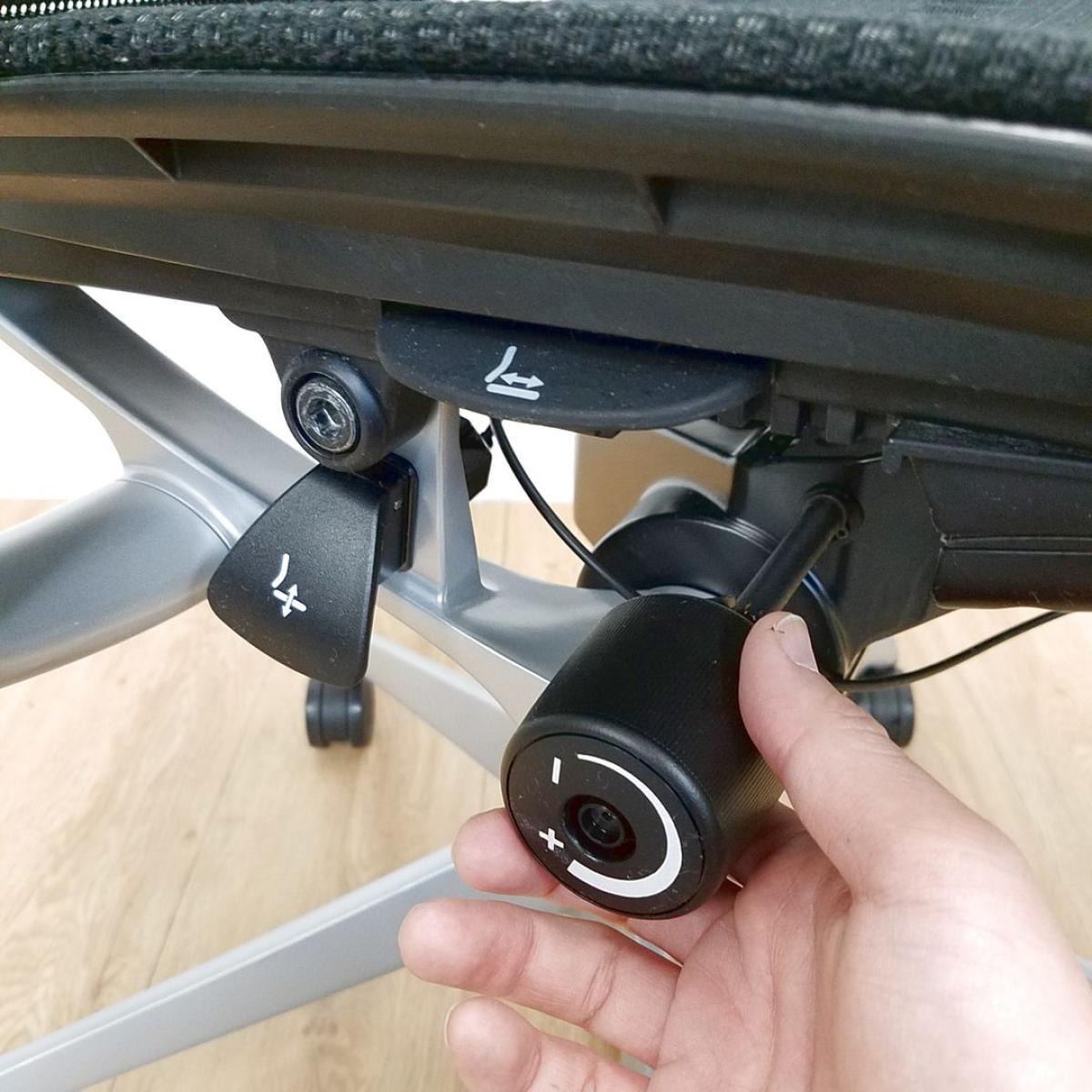 右手を自然に下ろした位置にあるダイヤルでお好みの強さに調整できます。