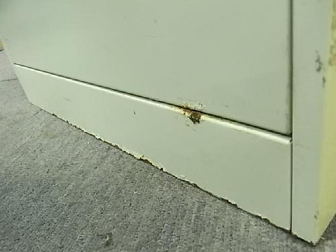 - 多数不具合あり引出の開閉不可、施錠不可、棚板無しといったその書庫の本来の効用を果たすための機能以外の多数が使用不可(例、扉、引出の開閉がしづらいなどがある。 )