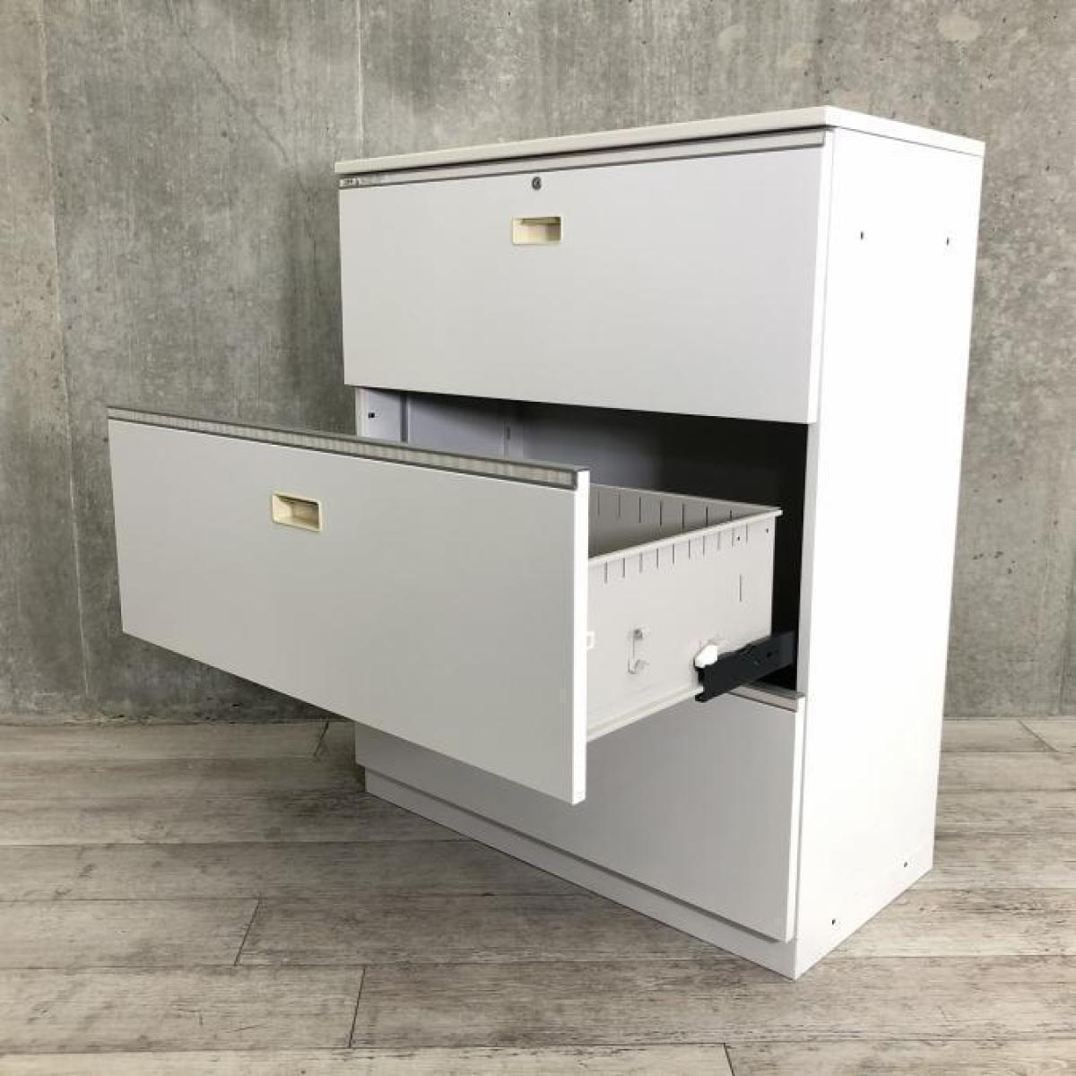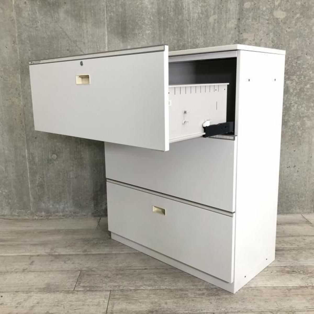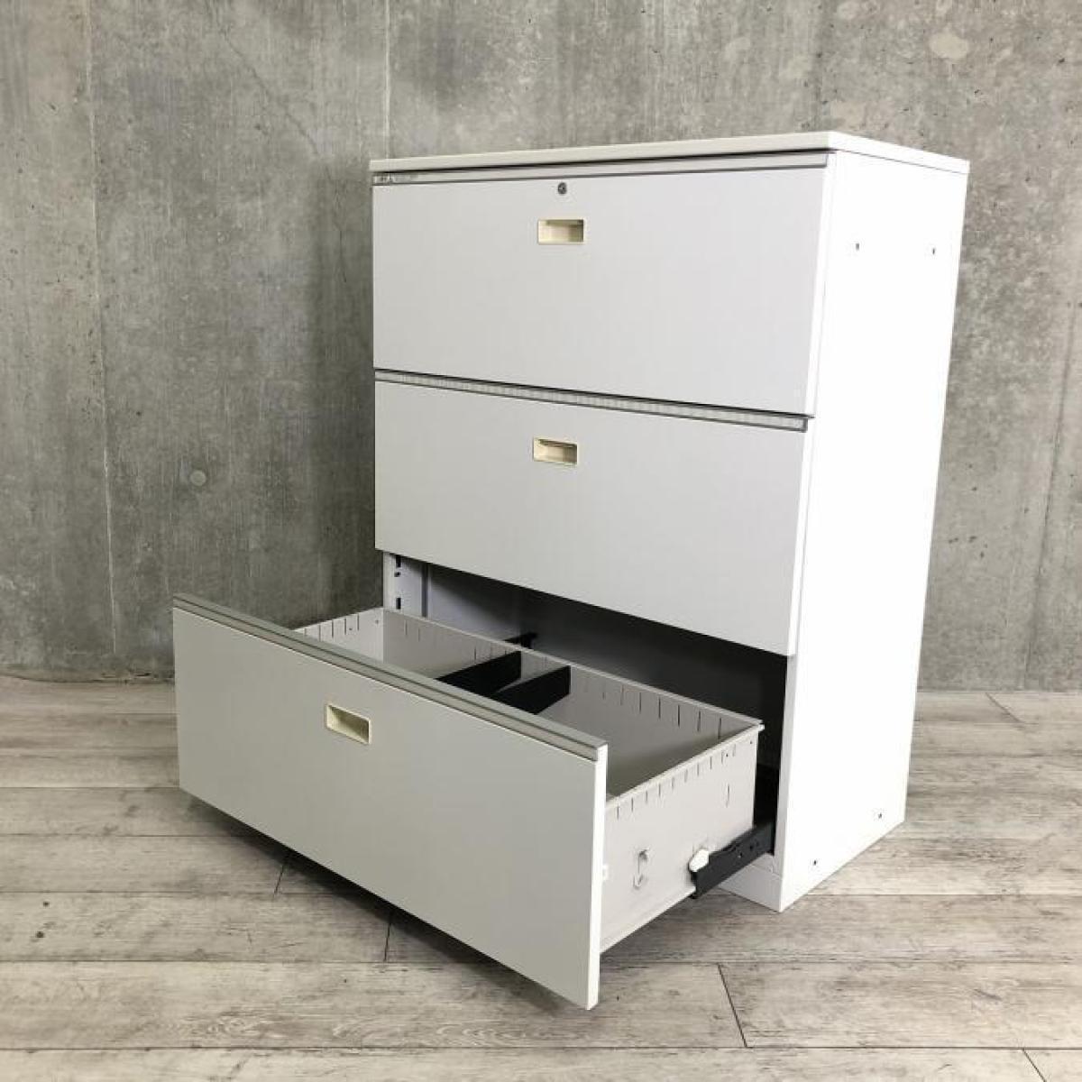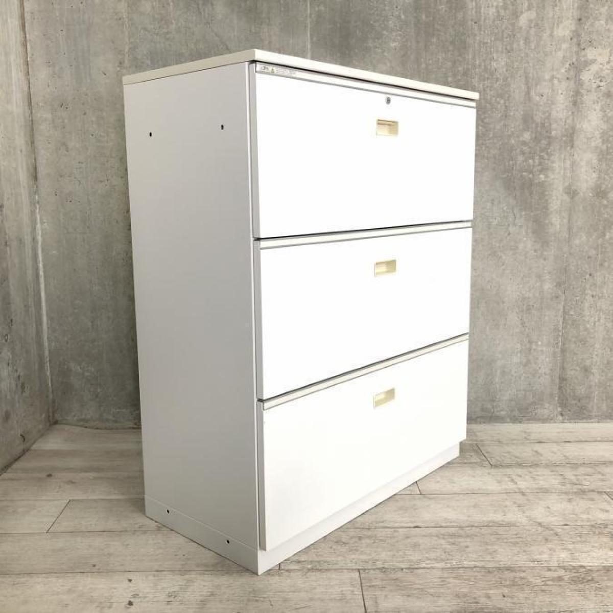 【577748】【A4ファイルも沢山収納可能!人気の3段引き出し式キャビネット!】■イトーキ(ITOKI)製 シンライン (THIN LINE)シリーズ 3段ラテラル書庫 ローキャビネット H1120㎜ ■シリンダー錠 ■ホワイト オフィスバスターズ 水戸サテライト 水戸市、日立市、ひたちなか市、鹿嶋市、神栖市、牛久市、古河市、結城市、東海村、つくば市