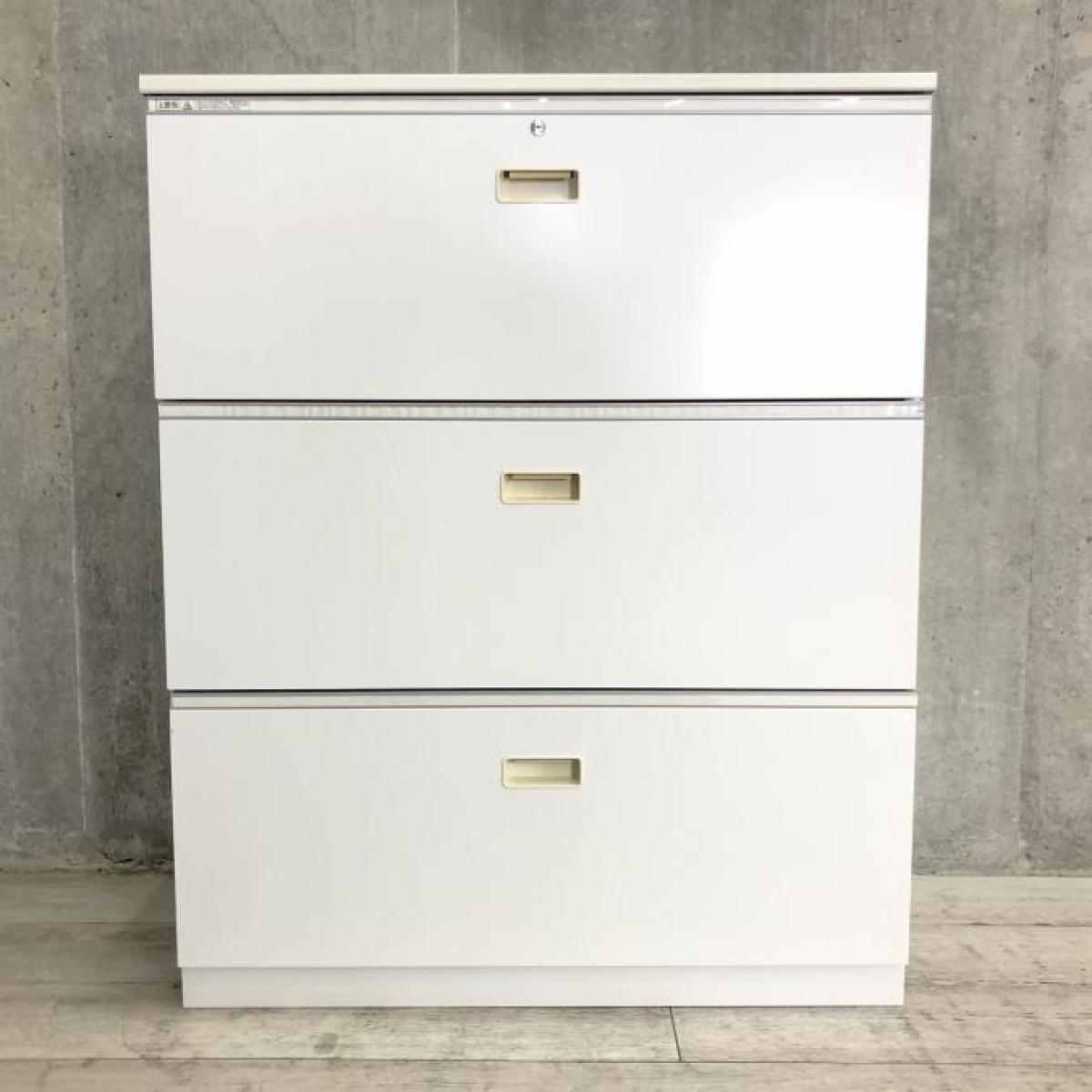 ★イトーキ製 シンライン ホワイト W900xD450xH1100サイズ シリンダー錠 A4ファイルも沢山収納可能! ホワイトカラーの人気シリーズ3段ラテラル書庫! ローキャビネット 3段ラテラル書庫!!