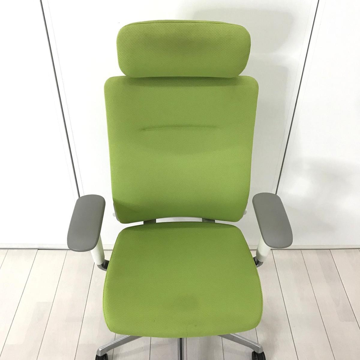 【シンプルなスタイリングに充実の機能を搭載したチェア!】■オカムラ(okamura)製 コーラルシリーズ ヘッド付背クッション ■可動肘 ■座面タイプ:クッション ■色:ライムグリーン