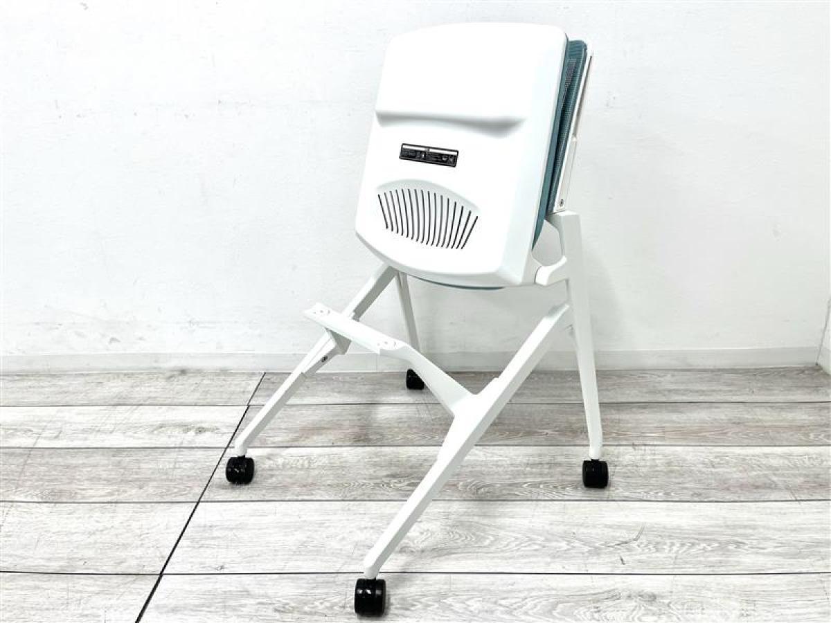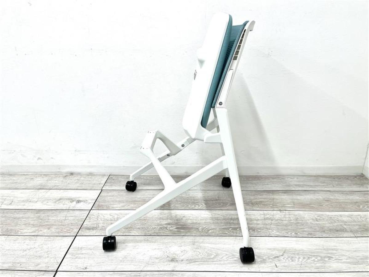 【在庫セール品】【定価約7万円】【折り畳み収納可能なネスティングチェア!】■オカムラ/マルカ ■ネスティングチェア ■ライトブルー【S】