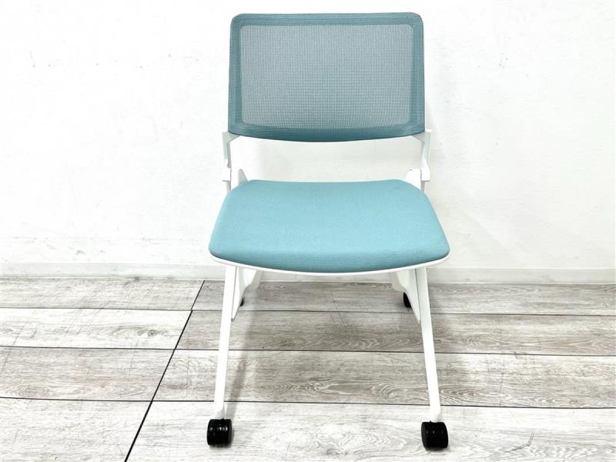 【在庫セール品】【定価約7万円】【折り畳み収納可能なネスティングチェア!】■オカムラ/マルカ ■ネスティングチェア ■ライトブルー【S】在庫がある店舗一覧