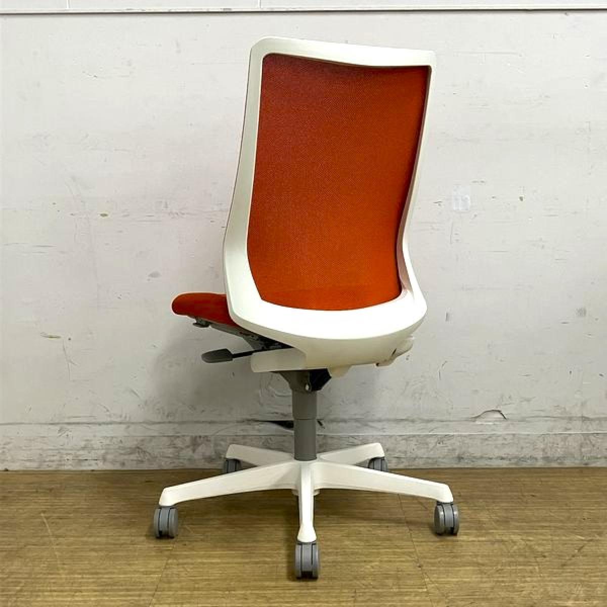 【在庫入替セール】オカムラ フルーエント ハイバック メッシュ 肘無しチェア オレンジ×ホワイトフレーム 価格・デザイン・機能性すべてよしですサーキュラーバリューCO2削減量の算出について