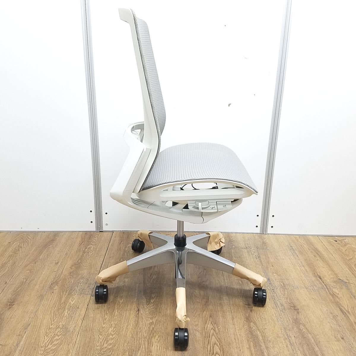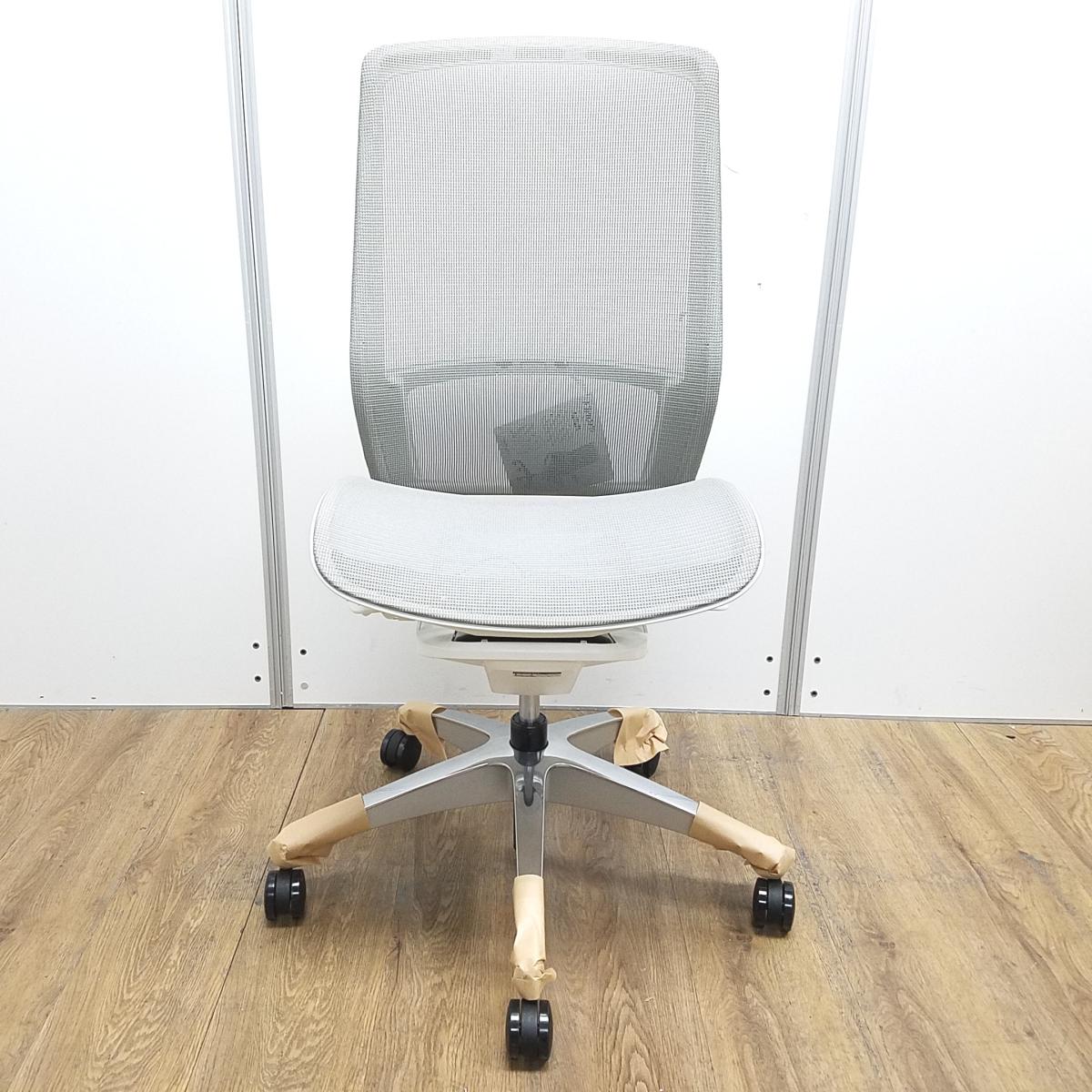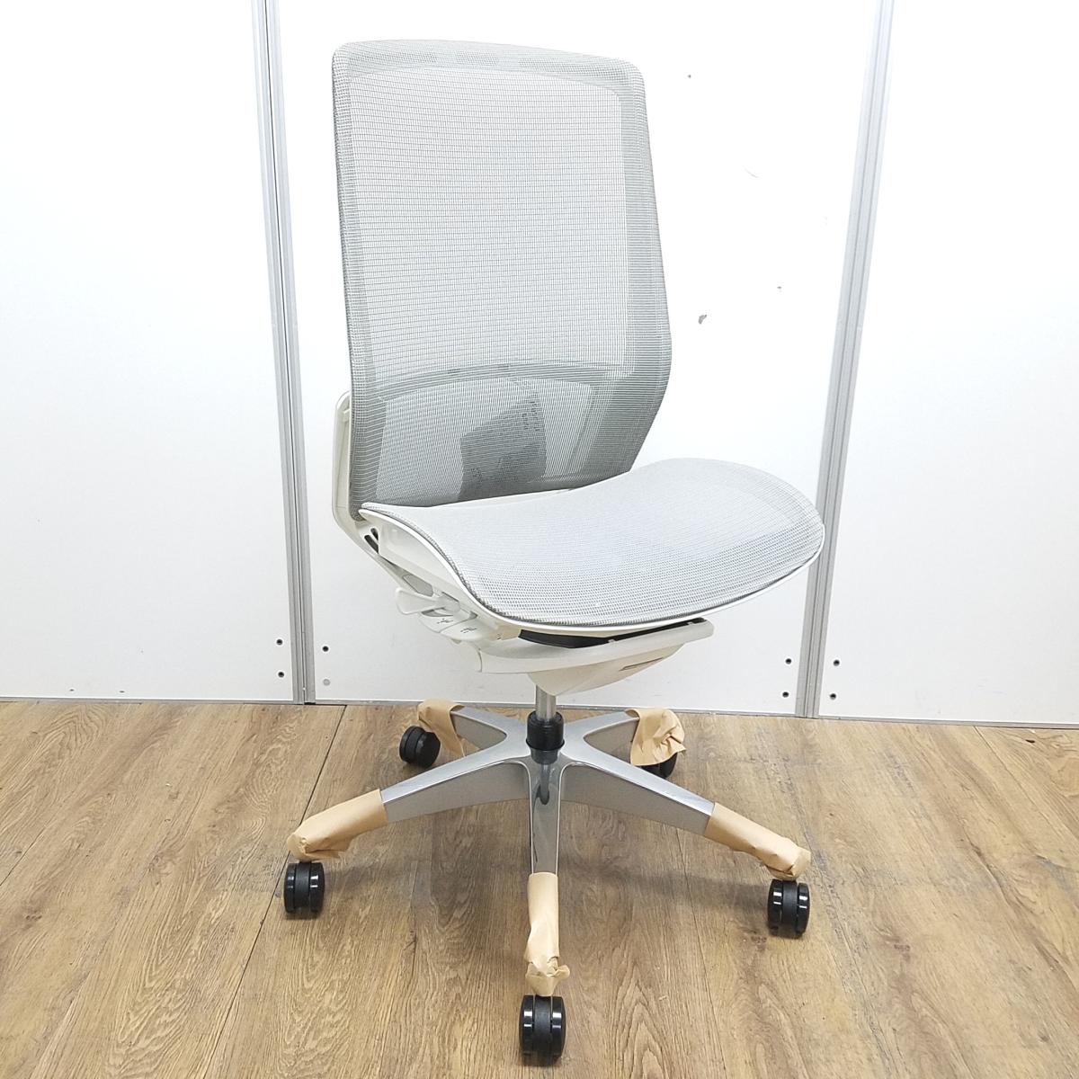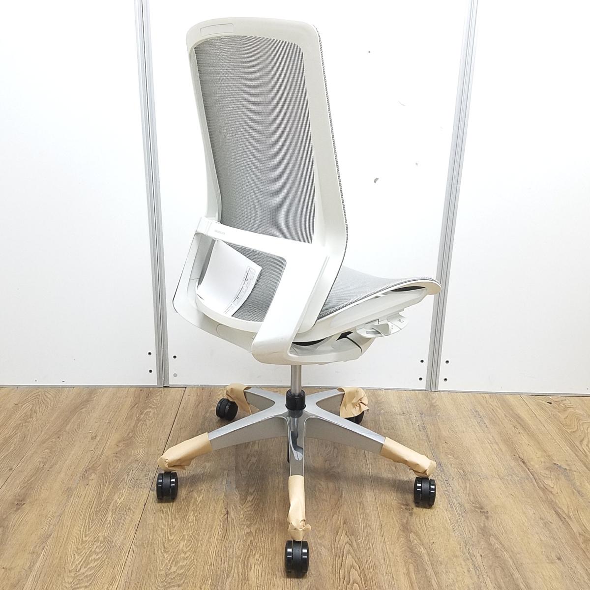 ★【新古品:アウトレット】オカムラ製 フィノラ ライトグレー ホワイトフレーム 肘無し ハイバック 背・座面メッシュ ポリッシュ脚 自然な姿勢で作業・リラックス可能! 自動車デザインで培われた「イタルデザインの美意識」と「オカムラの技術力」を集結したチェア 肘無しハイバックチェア!!新古