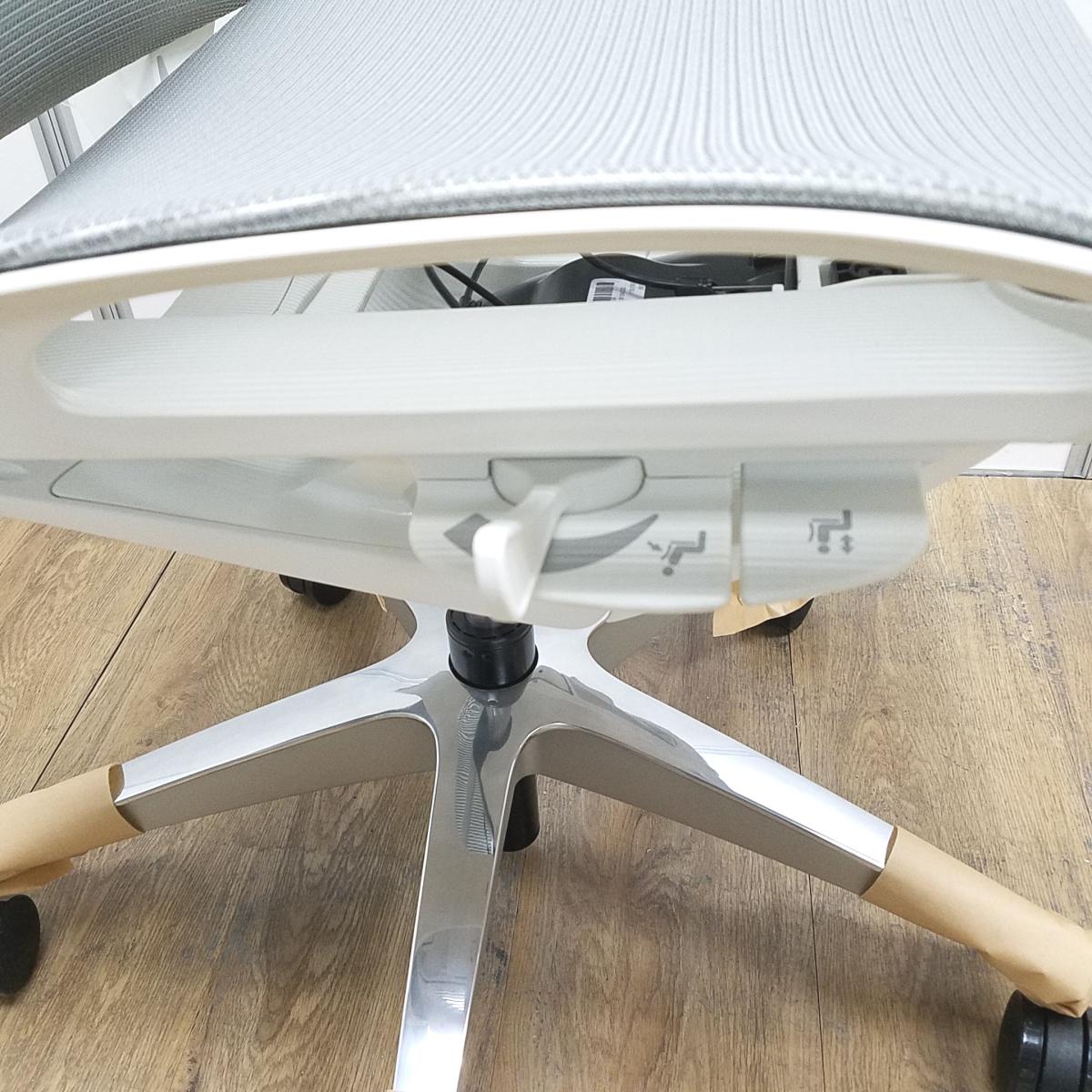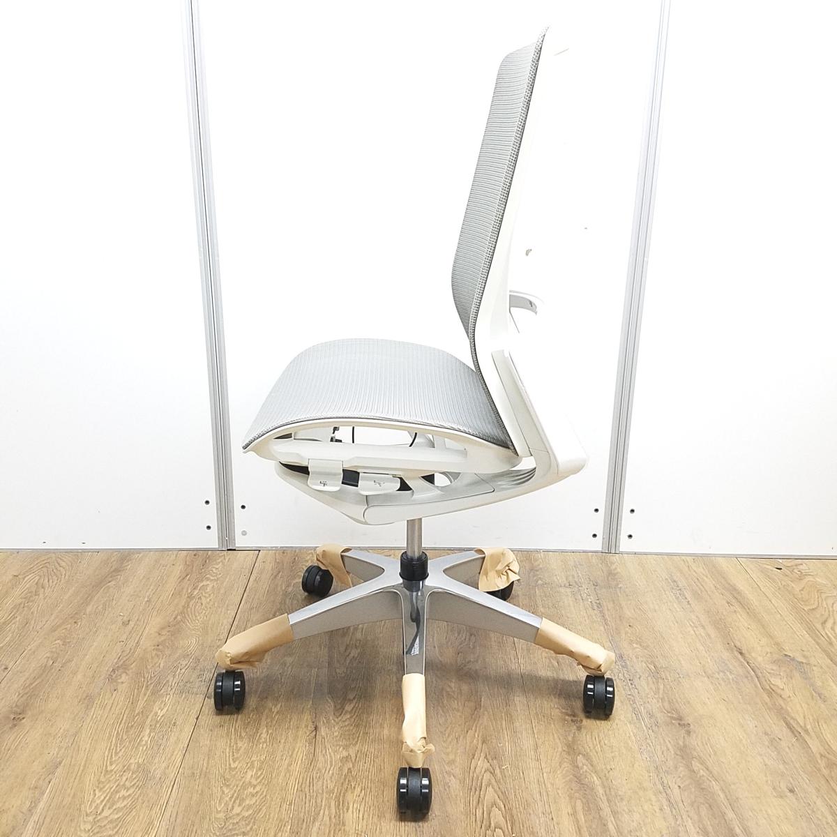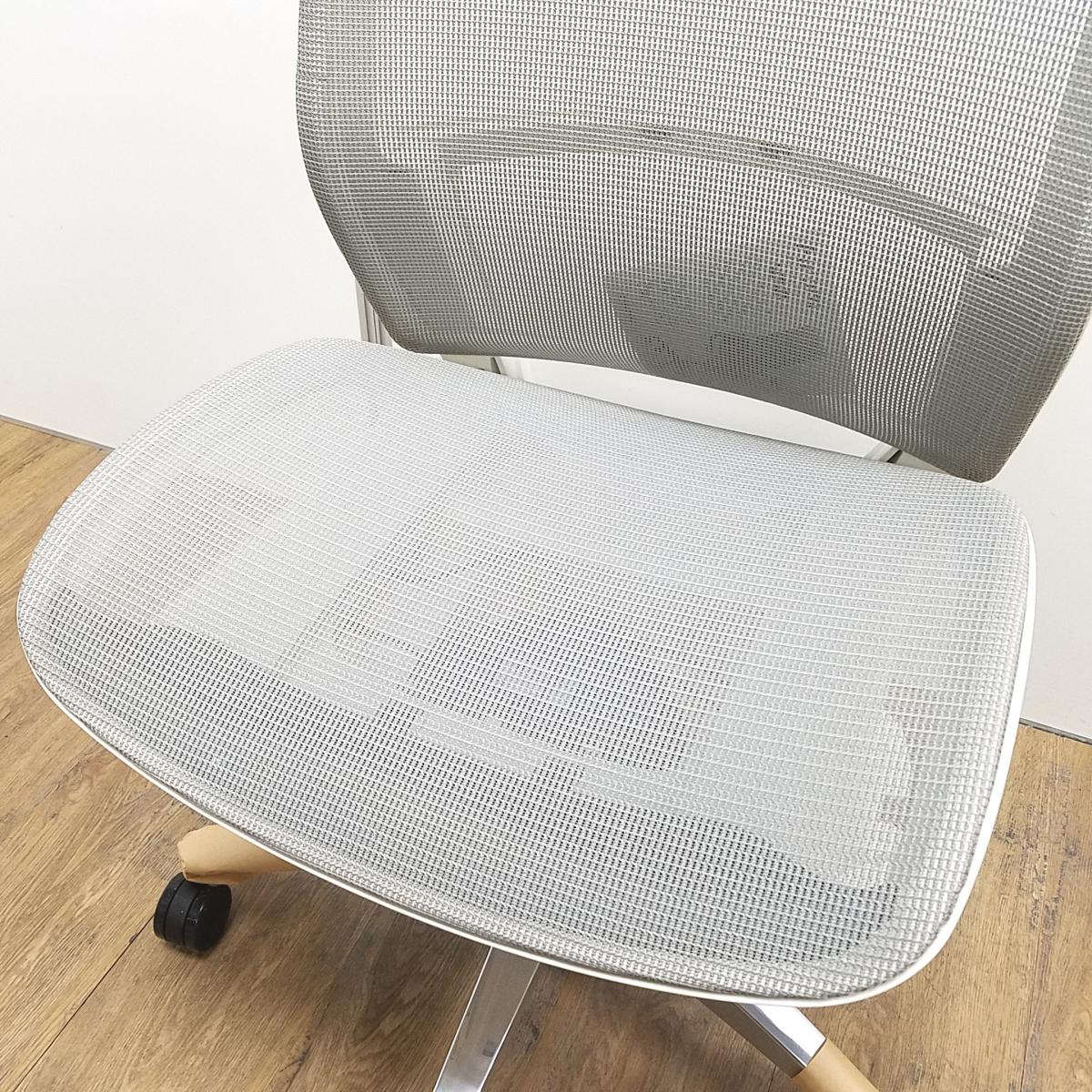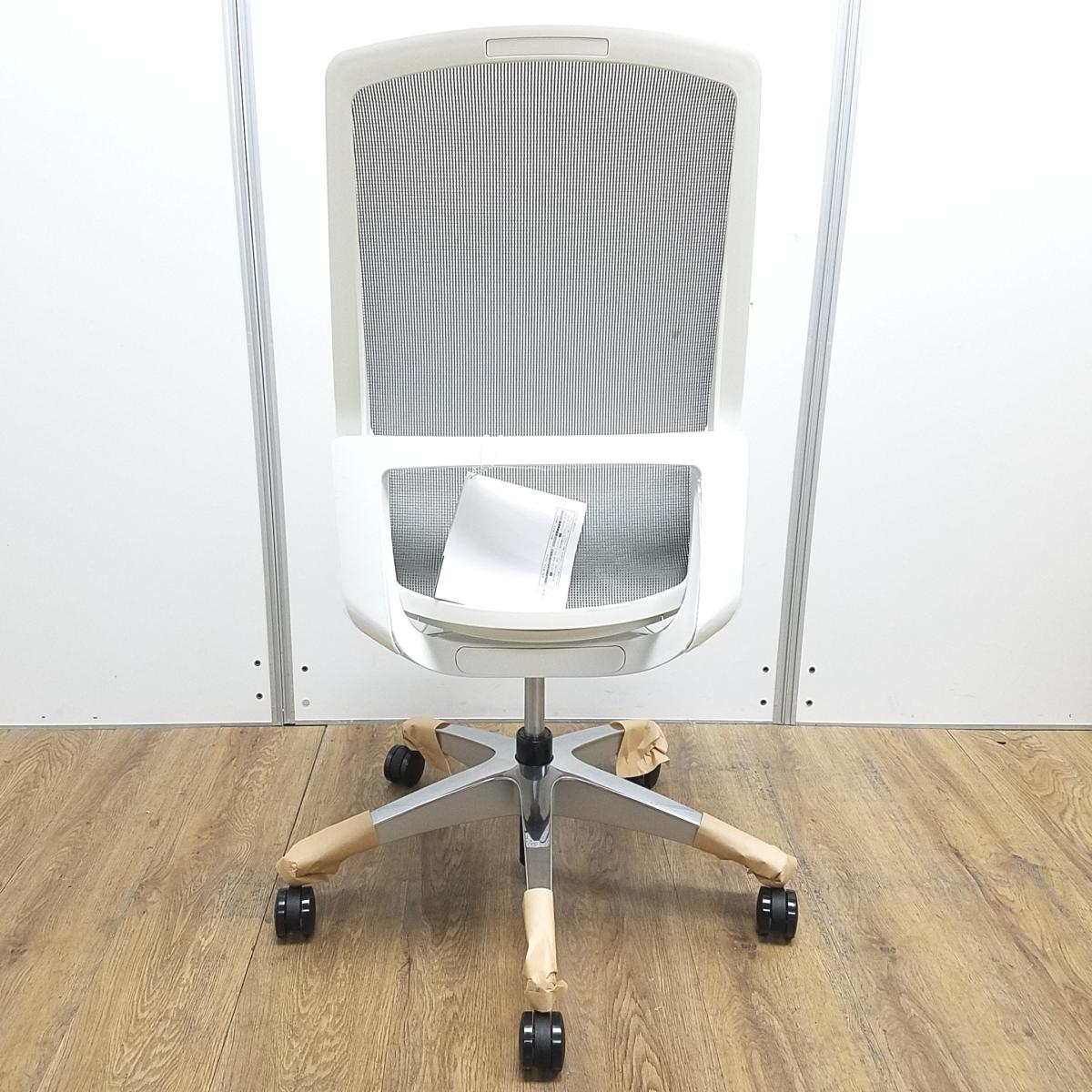 ★【新古品:アウトレット】オカムラ製 フィノラ ライトグレー ホワイトフレーム 肘無し ハイバック 背・座面メッシュ ポリッシュ脚 自然な姿勢で作業・リラックス可能! 自動車デザインで培われた「イタルデザインの美意識」と「オカムラの技術力」を集結したチェア 肘無しハイバックチェア!!新古