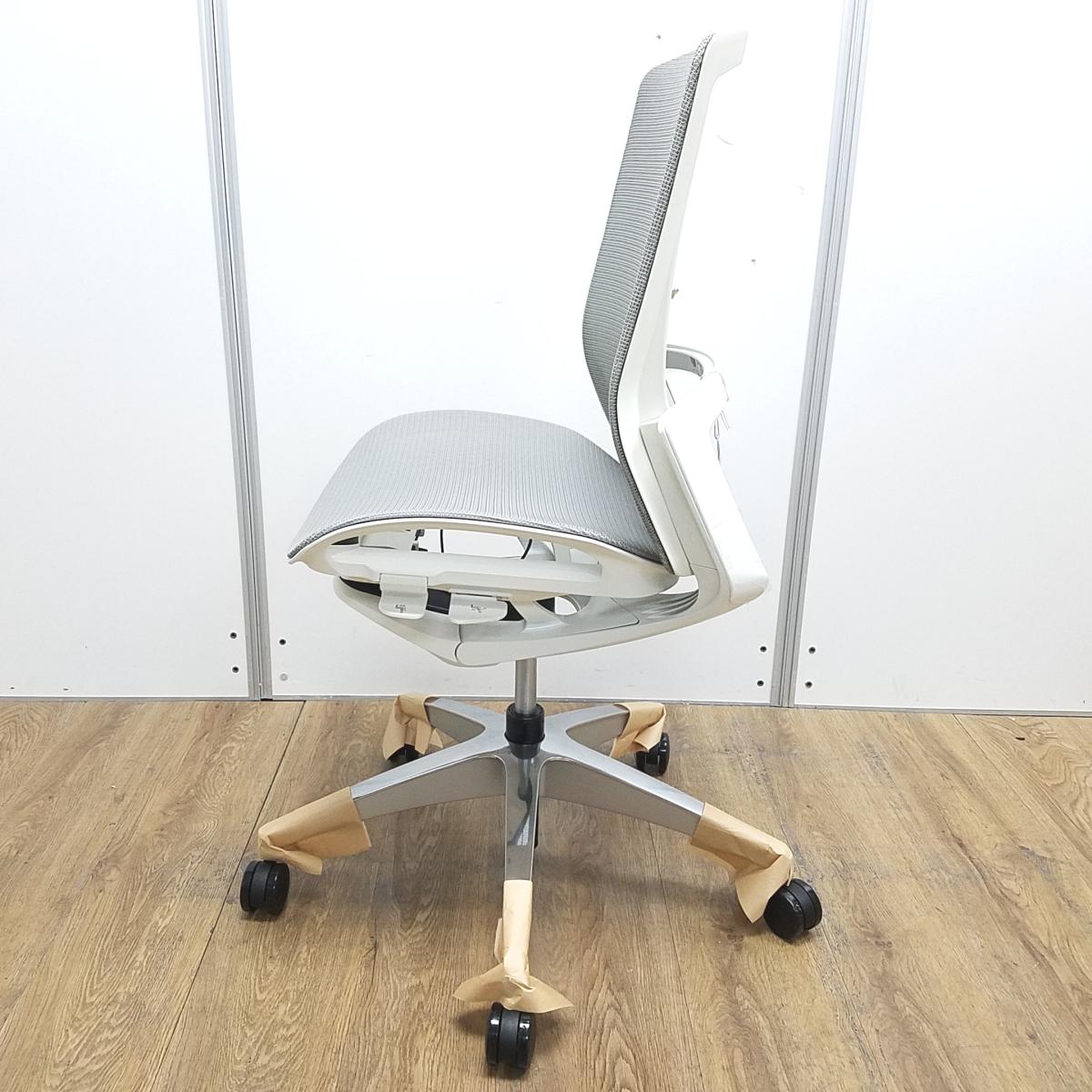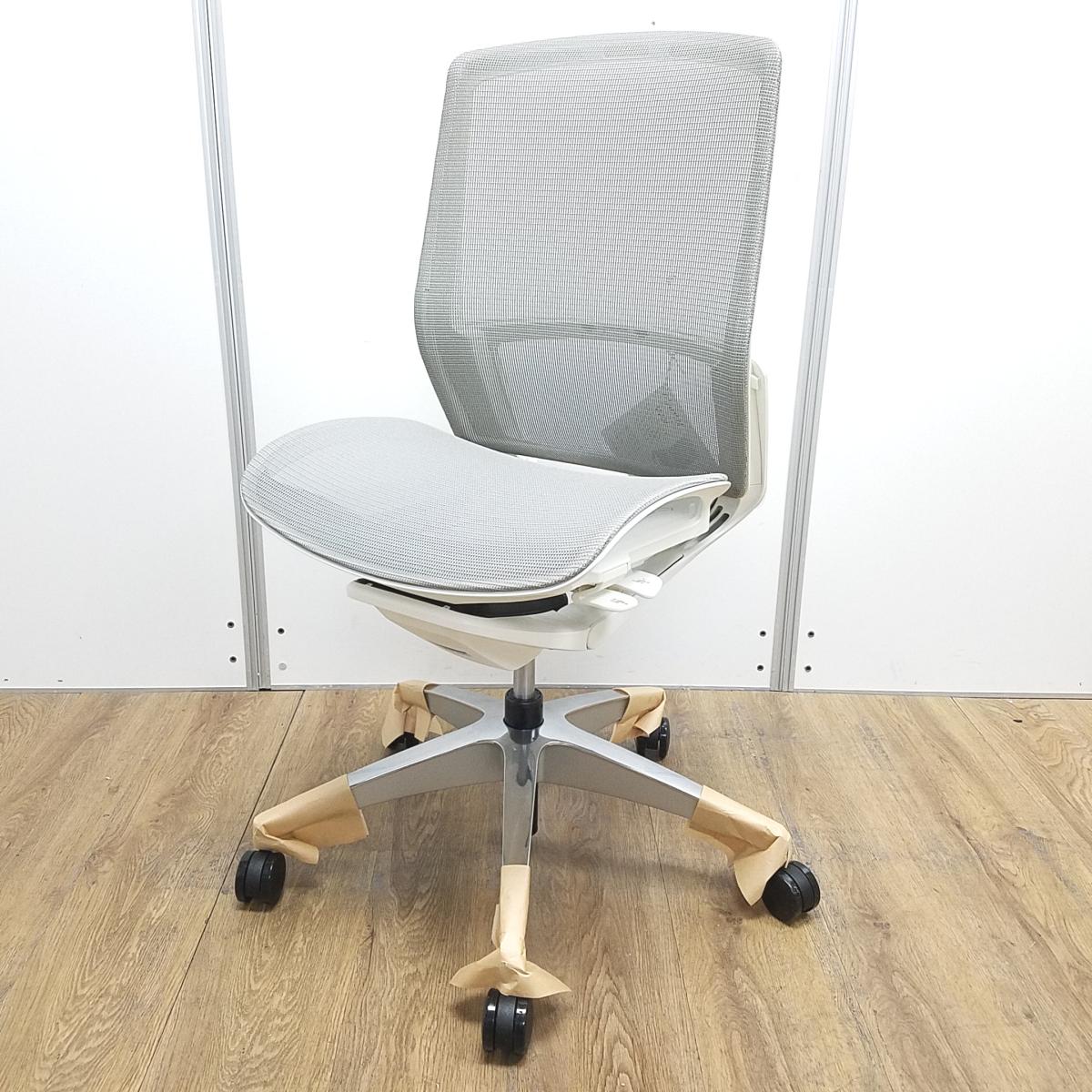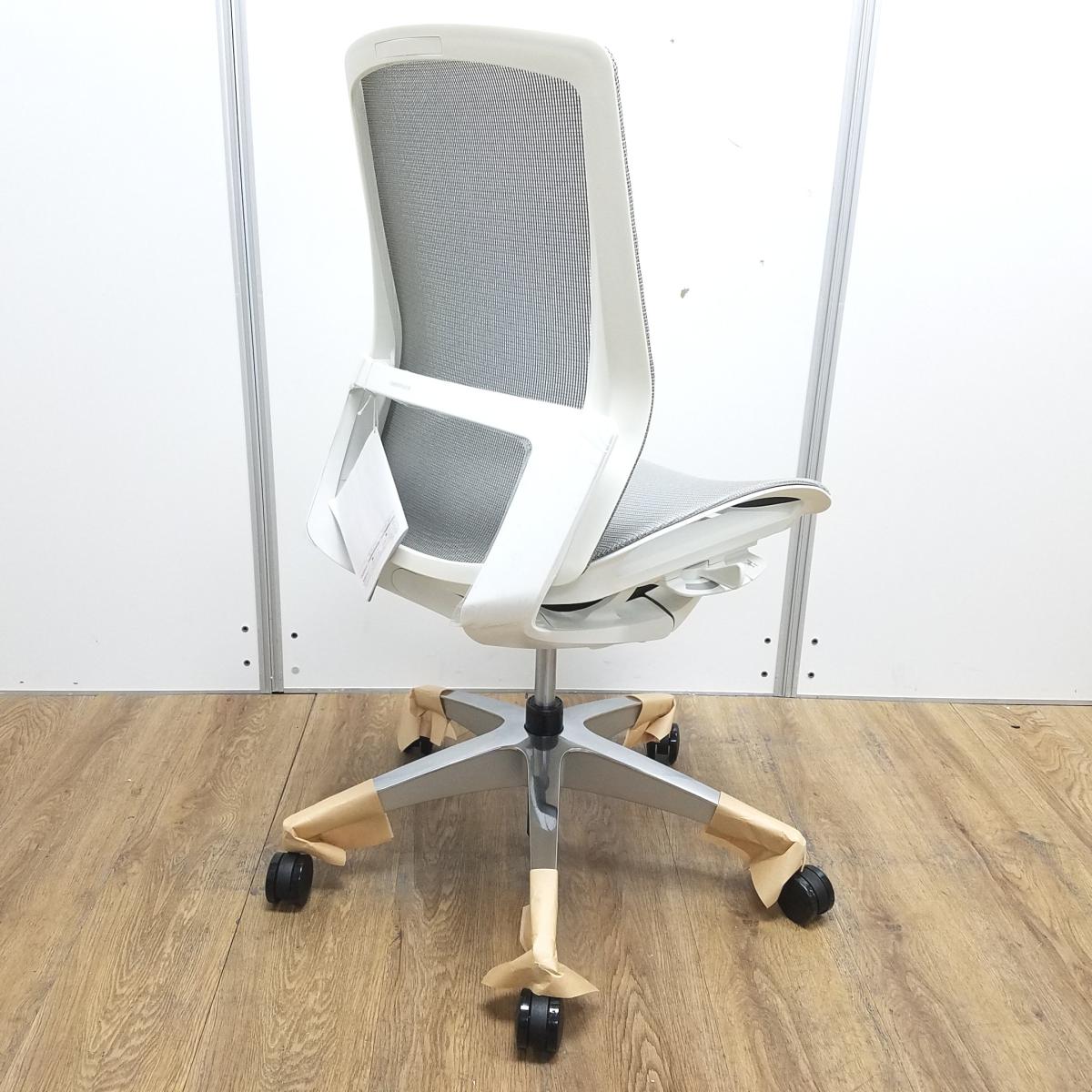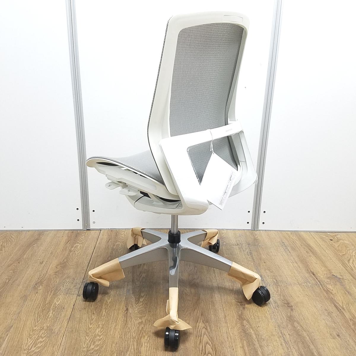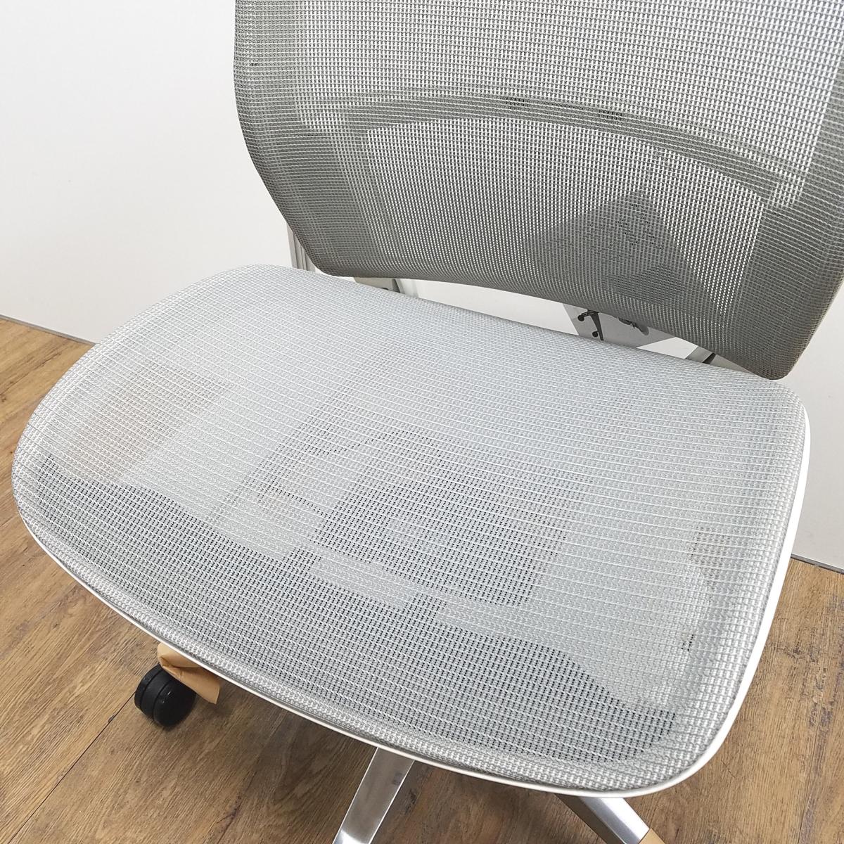 ★【新古品:アウトレット】オカムラ製 フィノラ ミディアムグレー ホワイトフレーム 肘無し ミドルバッグ 背・座面メッシュ ポリッシュ脚 自然な姿勢で作業・リラックス可能! 自動車デザインで培われた「イタルデザインの美意識」と「オカムラの技術力」を集結したチェア 肘無しミドルバックチェア!!新古