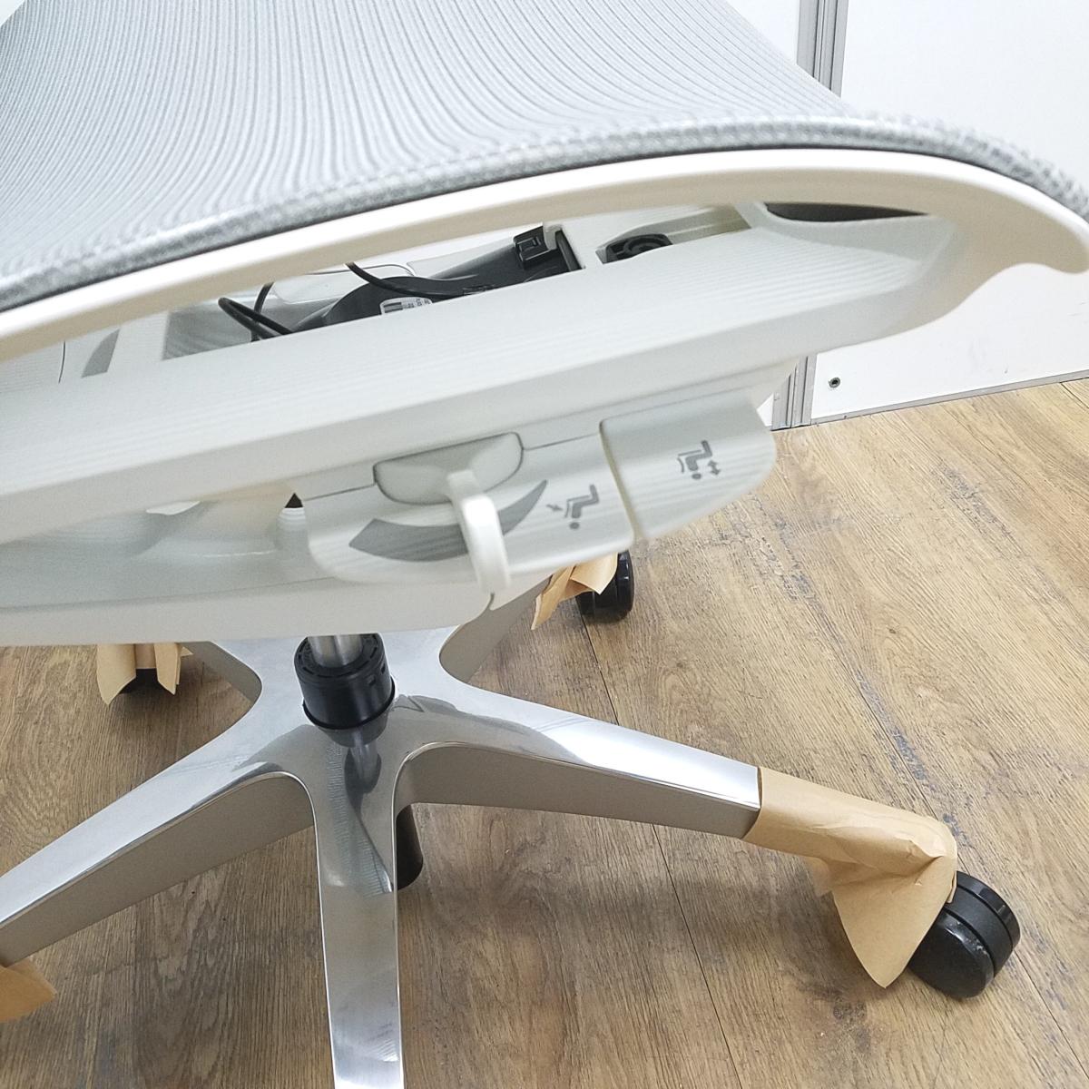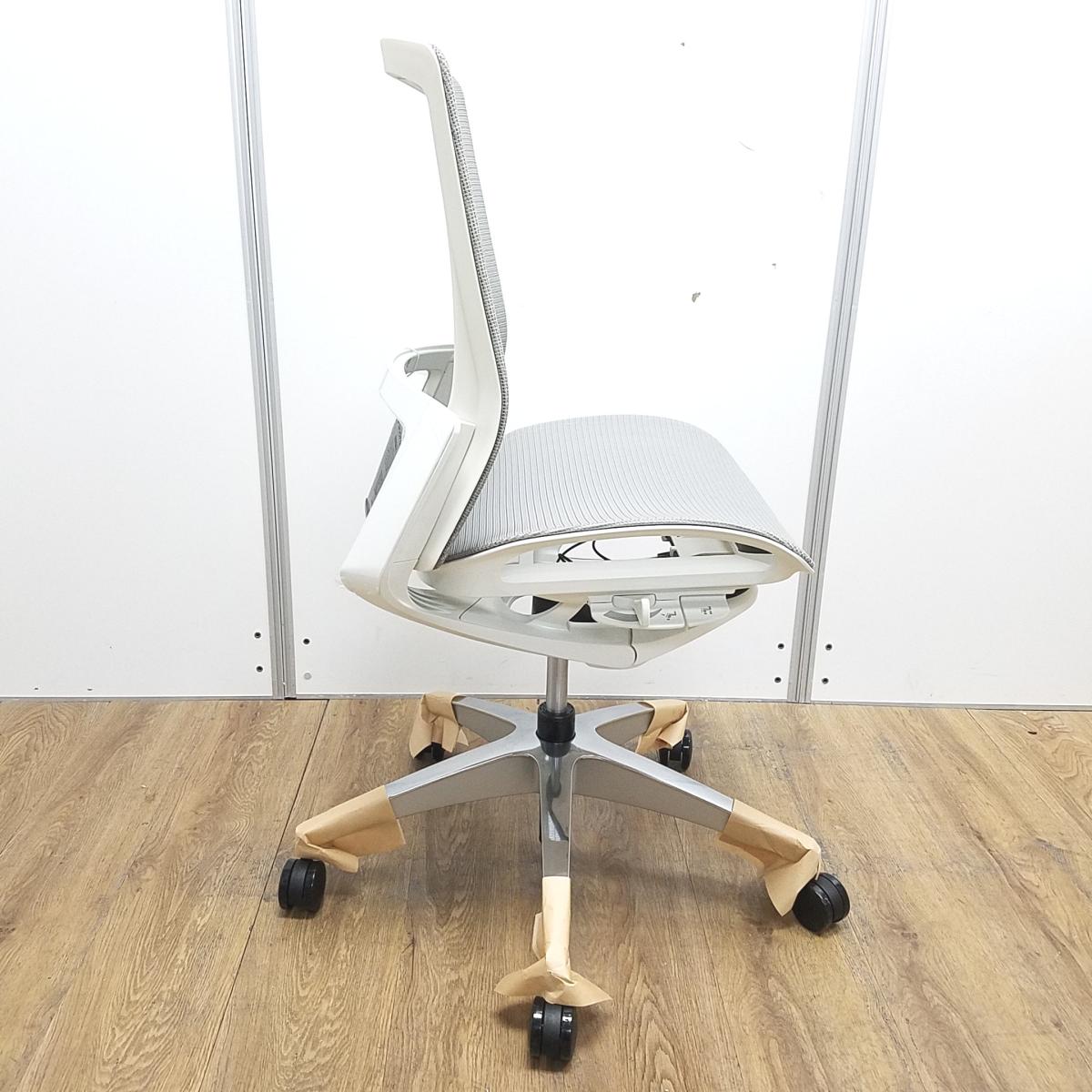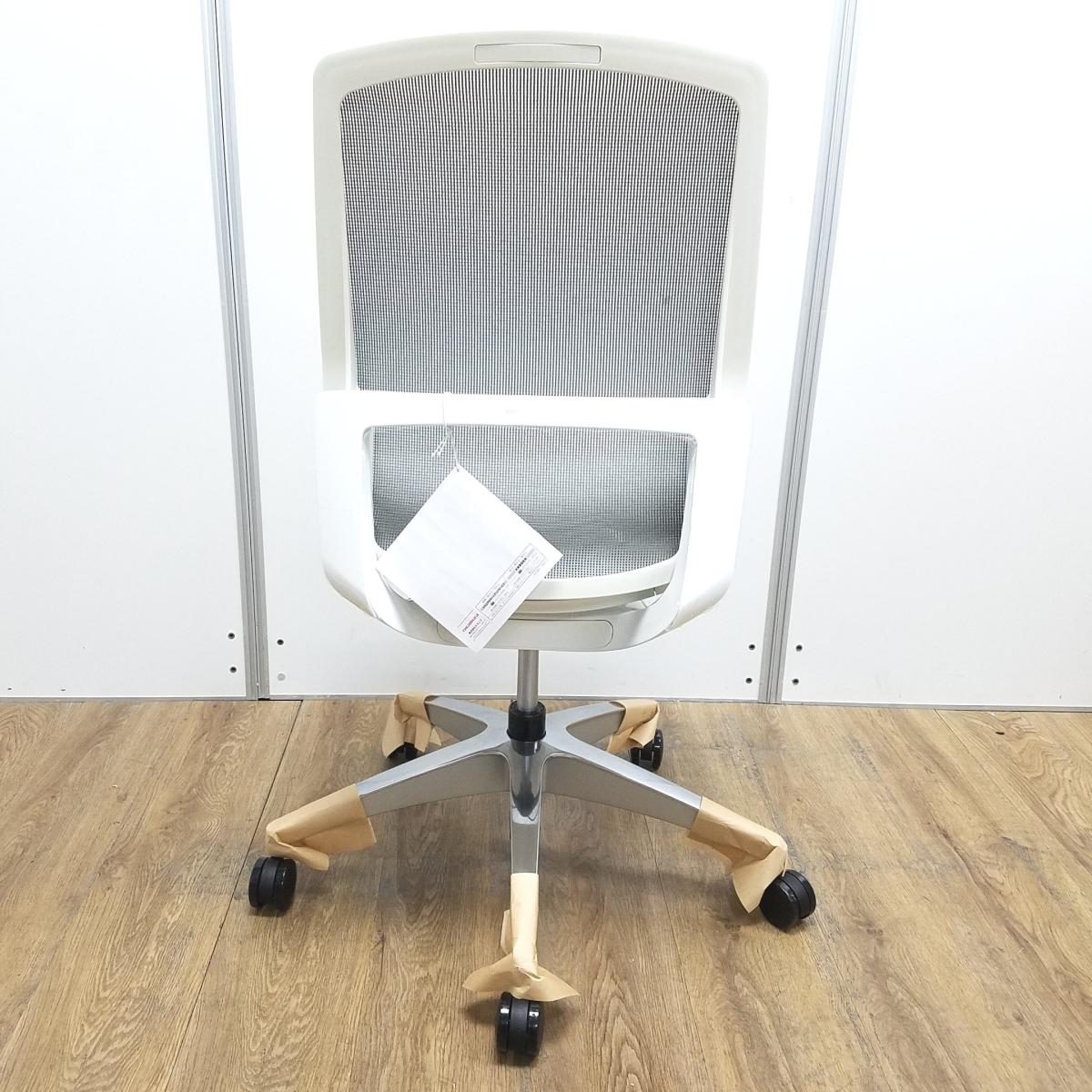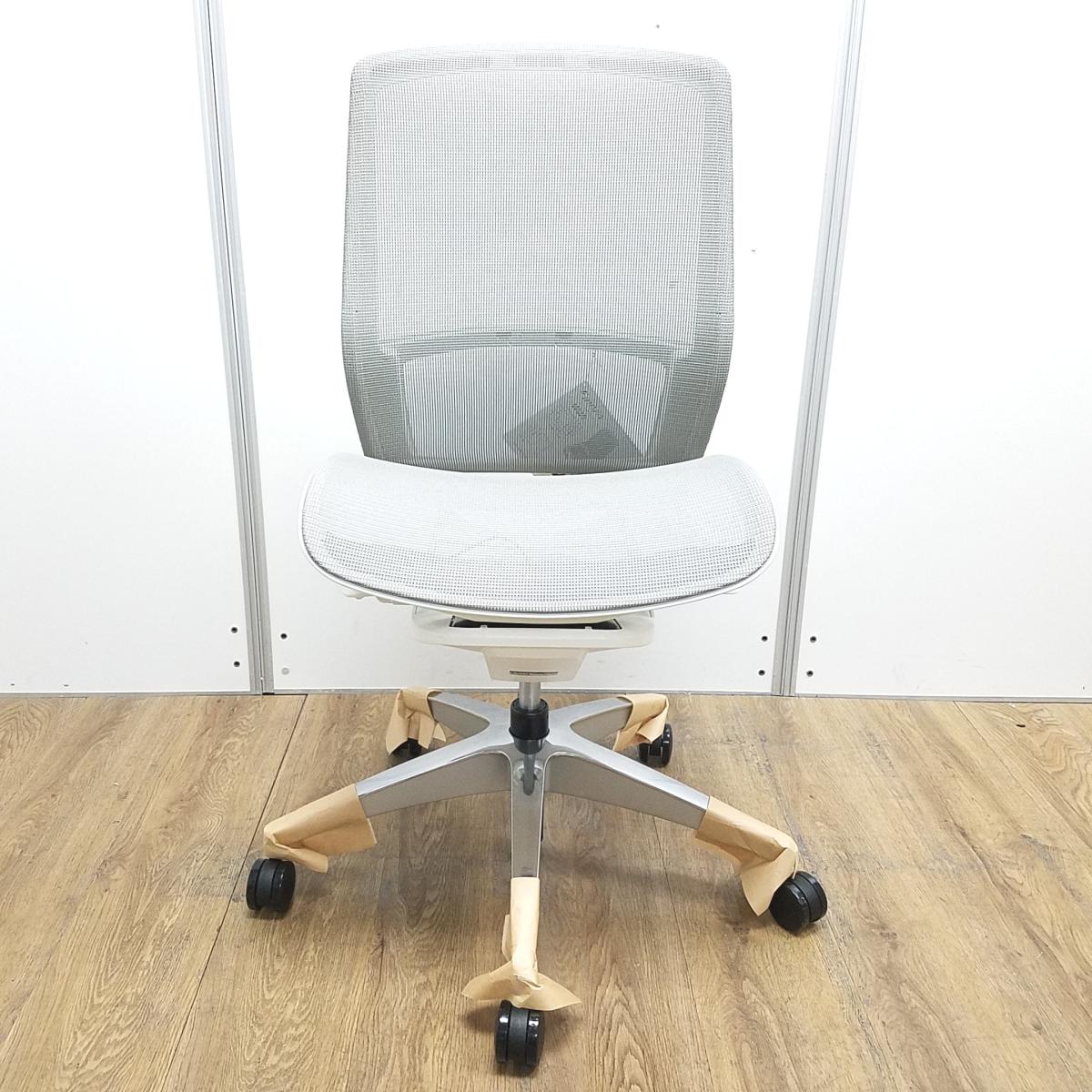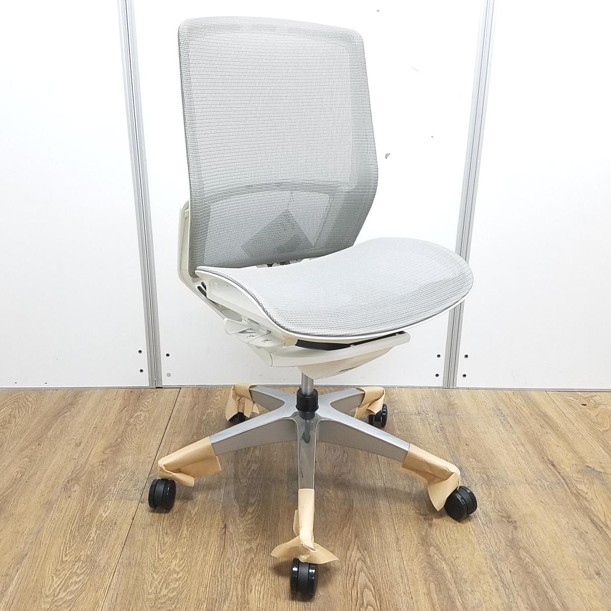 ★【新古品:アウトレット】オカムラ製 フィノラ ミディアムグレー ホワイトフレーム 肘無し ミドルバッグ 背・座面メッシュ ポリッシュ脚 自然な姿勢で作業・リラックス可能! 自動車デザインで培われた「イタルデザインの美意識」と「オカムラの技術力」を集結したチェア 肘無しミドルバックチェア!!新古