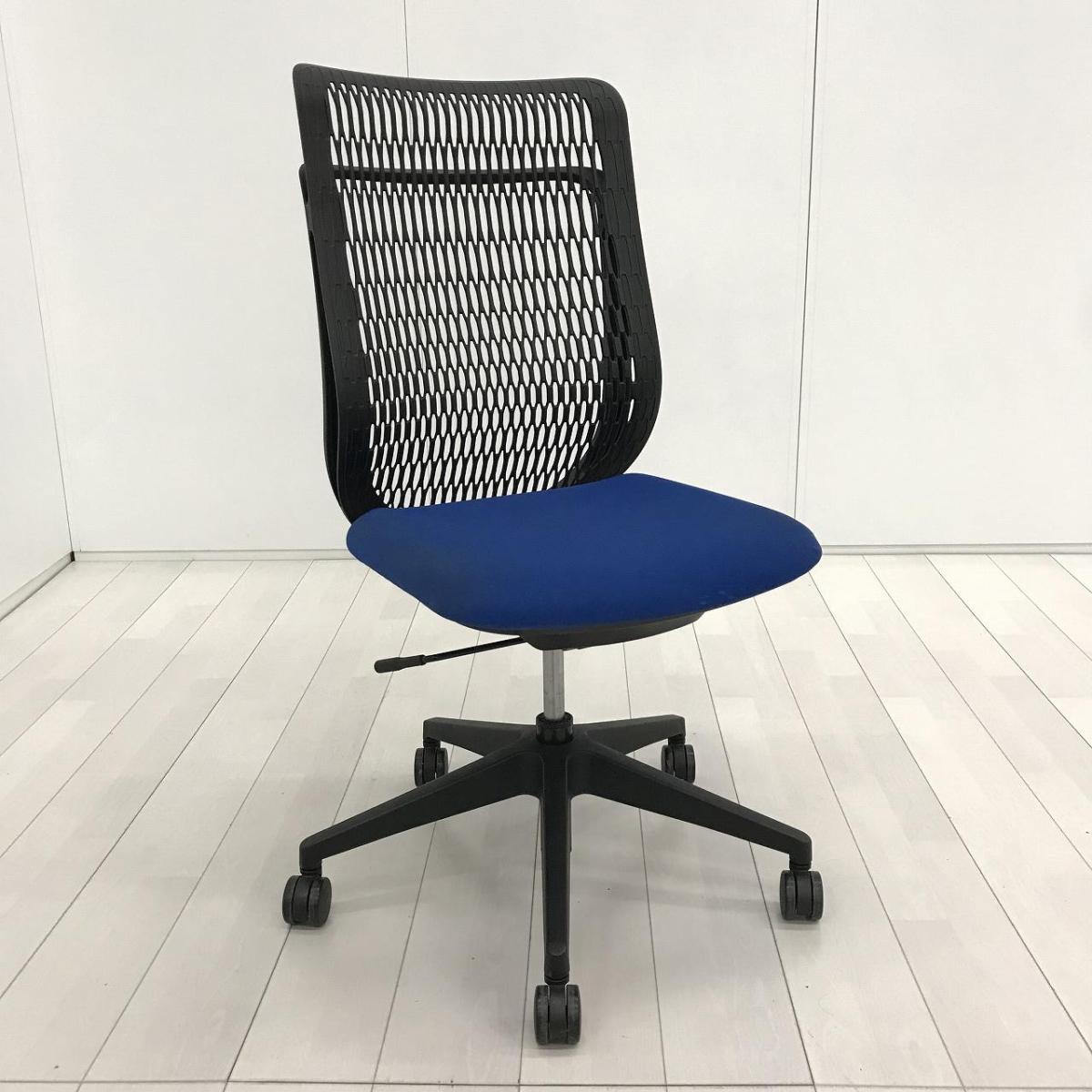 ★樹脂製背面の珍しいチェア!】ウチダ(UCHIDA)製 AJチェア(AJ CHAIR) ハイバック 肘無し ■背面樹脂メッシュ ■背面:ブラック/座面:ブルー