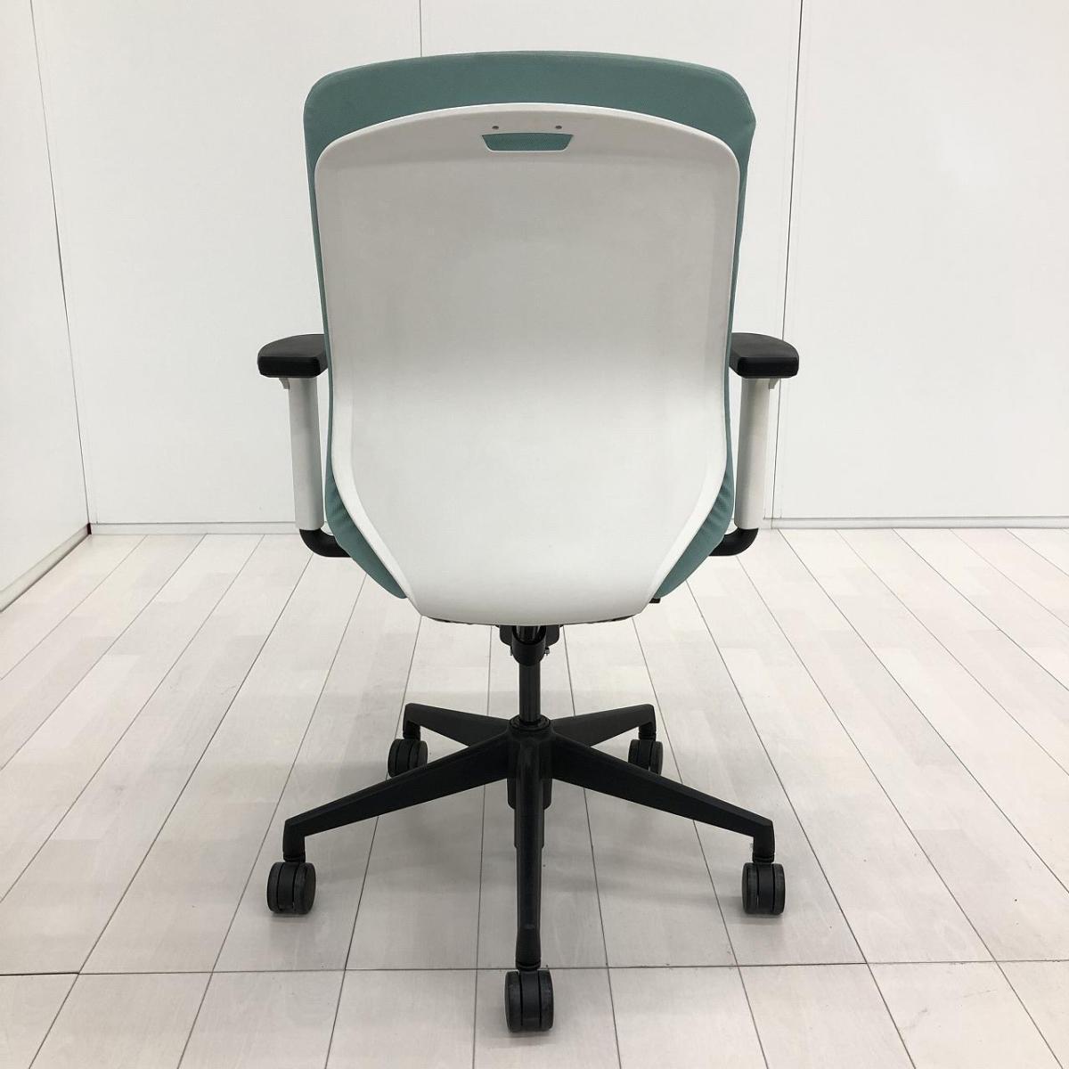 【リアルシンクロリクライニング搭載で快適な座り心地!】■ウチダ(UCHIDA)製 クレネ(KRENE)チェア 肘付ミドルバック ■可動肘 ■座面・背面クッション ■アクアブルー【2602】弊社使用欄【A01061678】