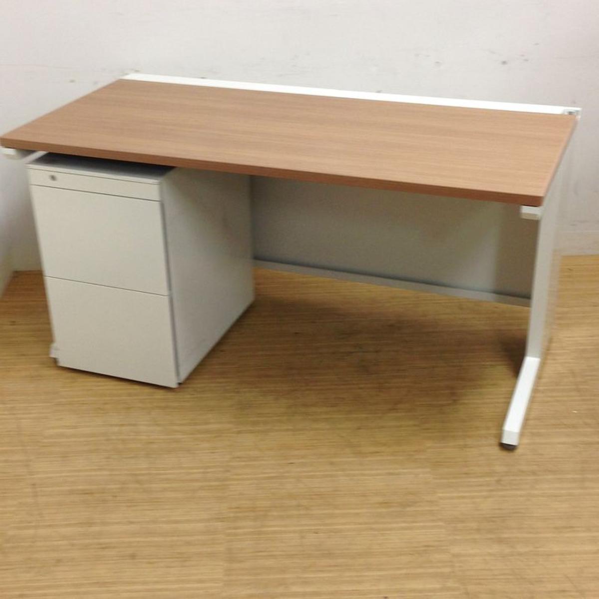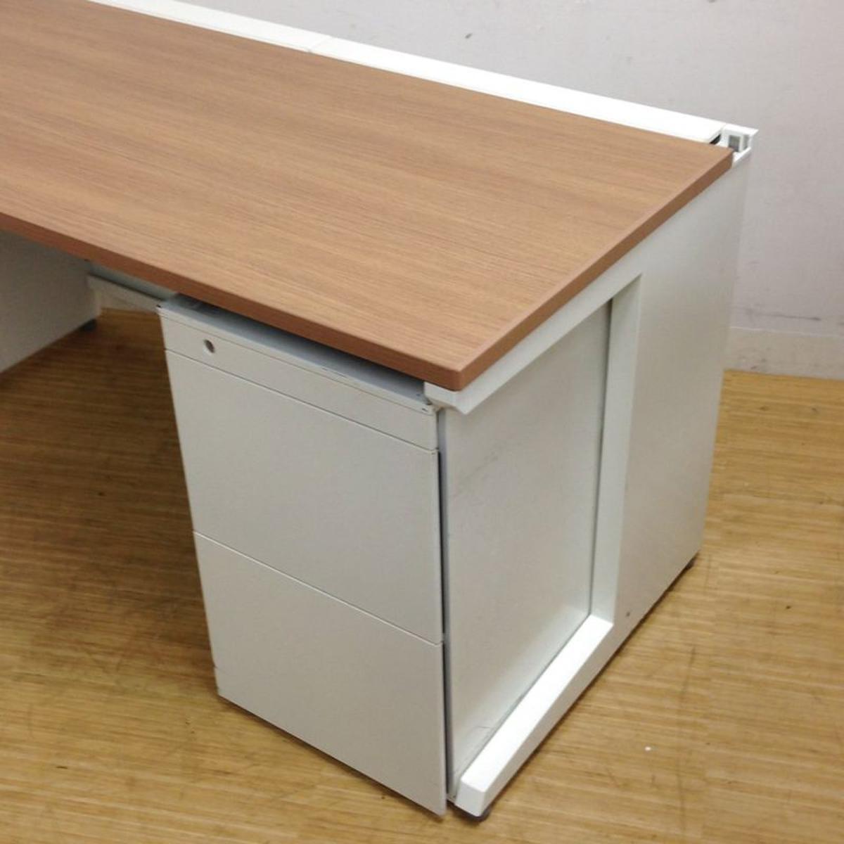 【4/2(木)入荷予定の商品となります!】【清潔感のあるホワイトカラーの平机+ワゴンセット!スタンダードな幅1200㎜!】■オカムラ(OKAMURA)製 アドバンス(ADVANCE)シリーズ ■引き出し無し ■幅1200mm ■木目天板 ■ブラウン ※ワゴンは在庫状況によって変動致します。- つくば店