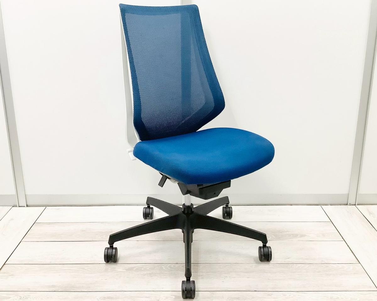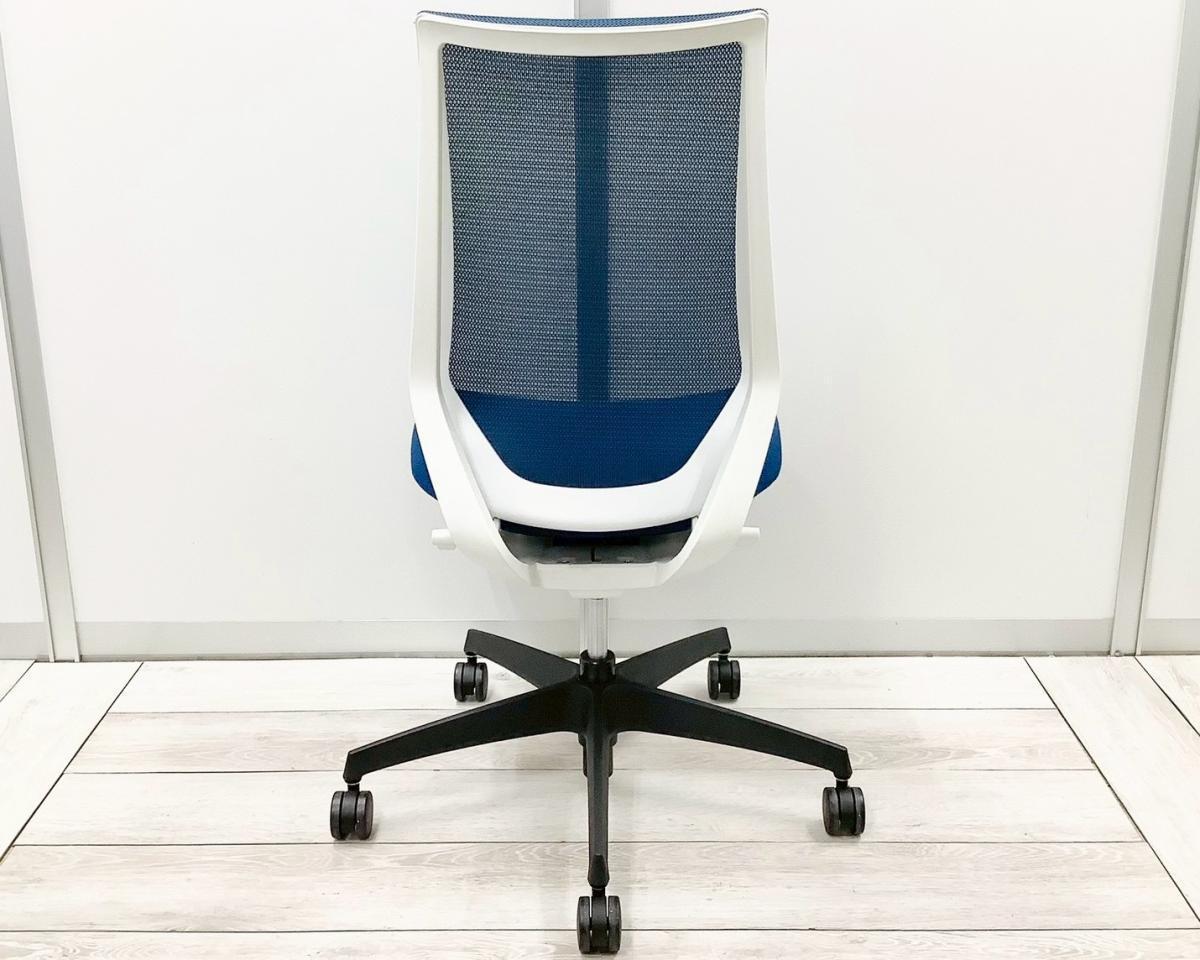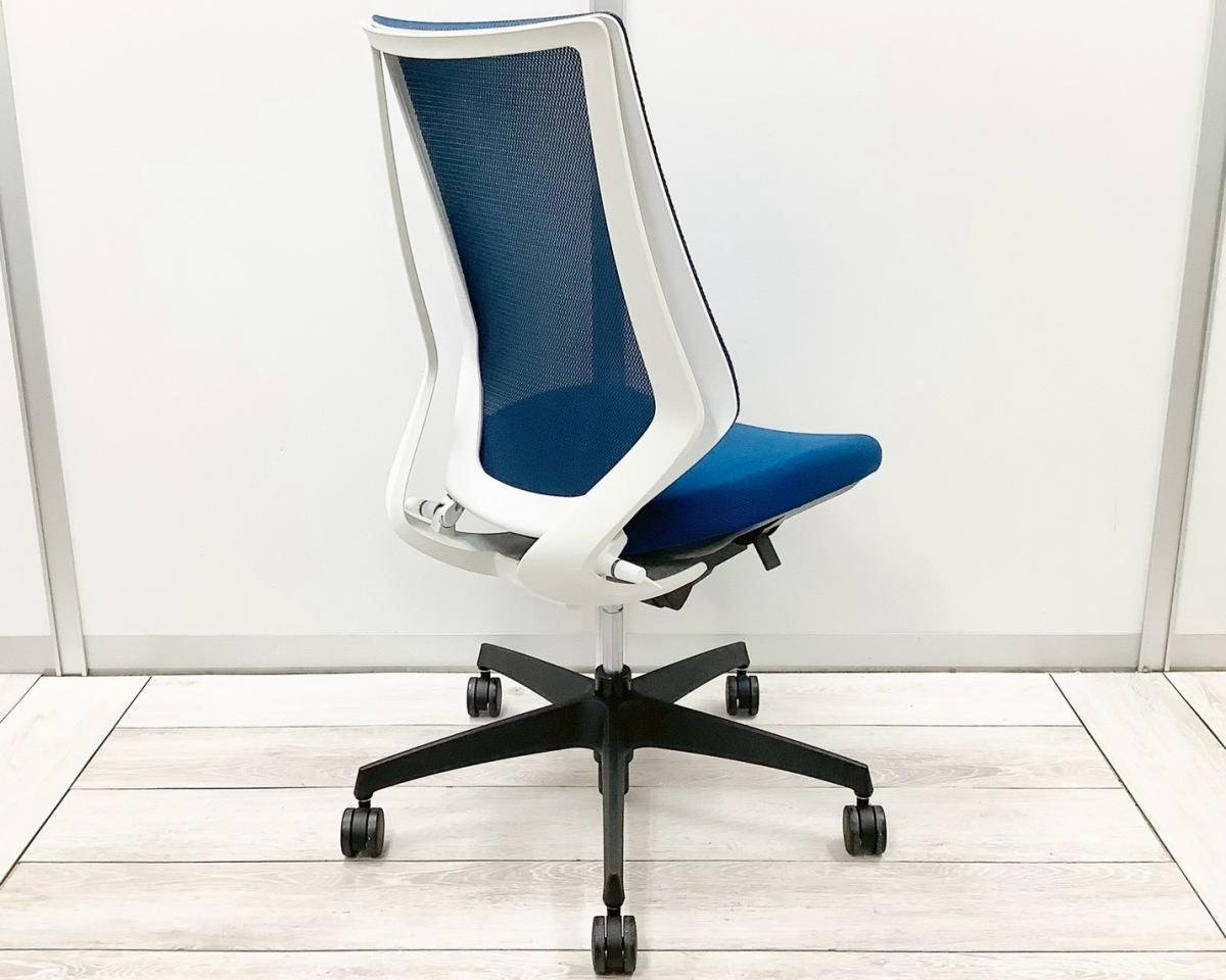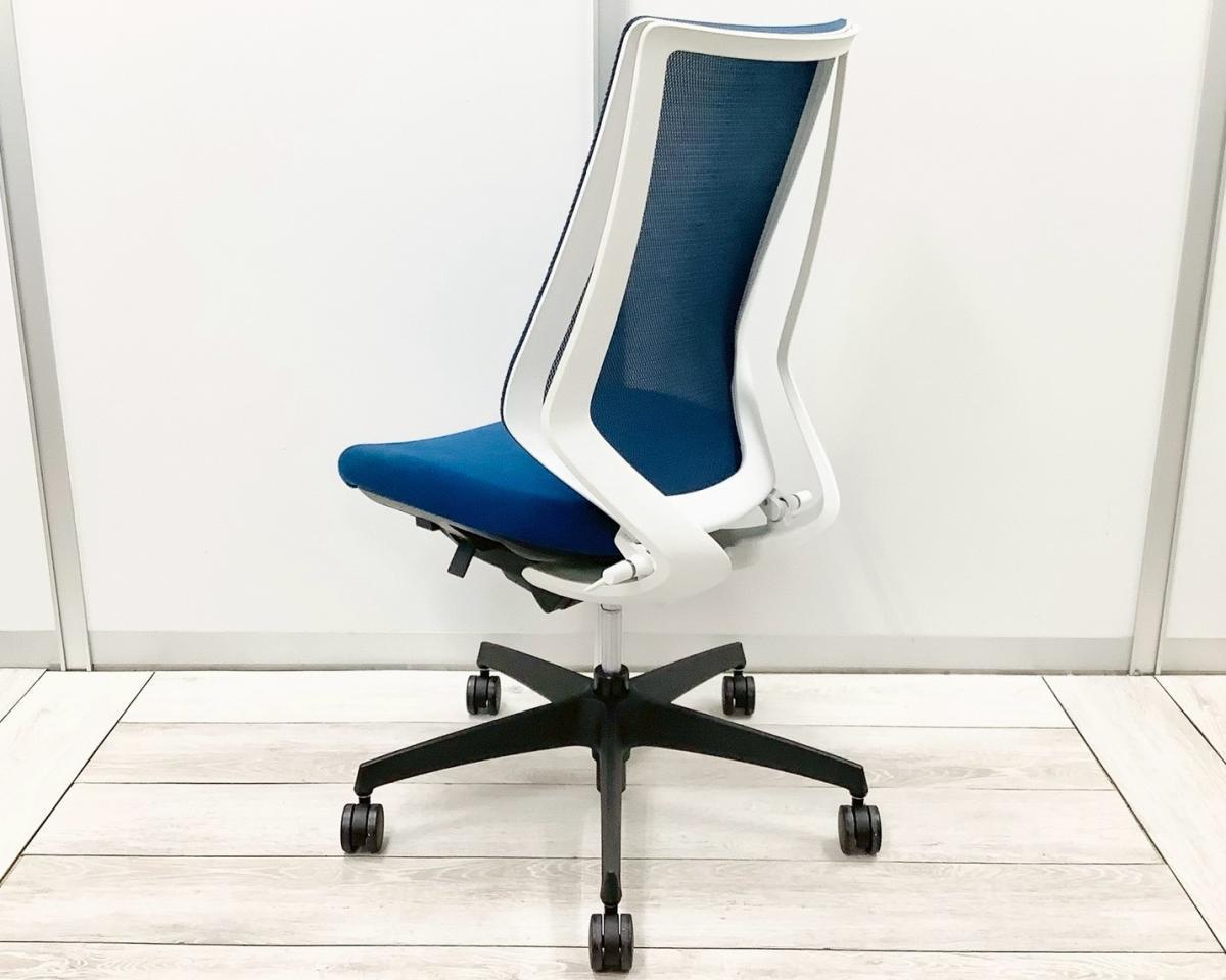 【二重フレーム構造がもたらすしなやかで美しい背もたれ機能!簡易操作で自分に合った姿勢をサポート!】■コクヨ(KOKUYO)製 デュオラ(Duora) 肘無 ハイバック 背面メッシュ ■プルシアンブルー×ホワイトシェル×ブラック脚【入替セールにつき30%OFF!】