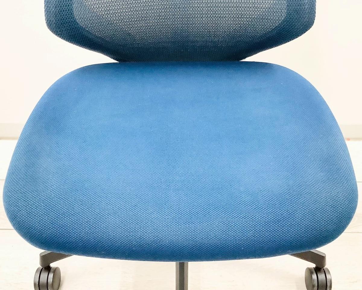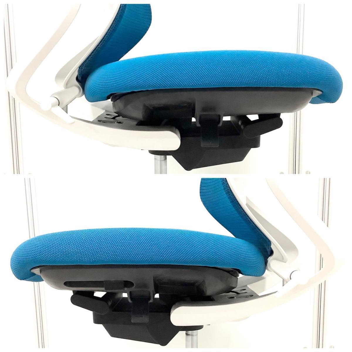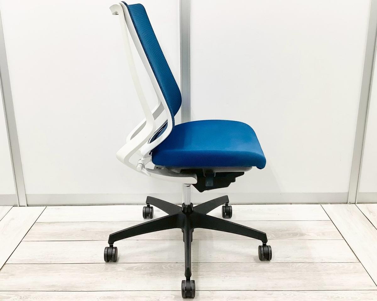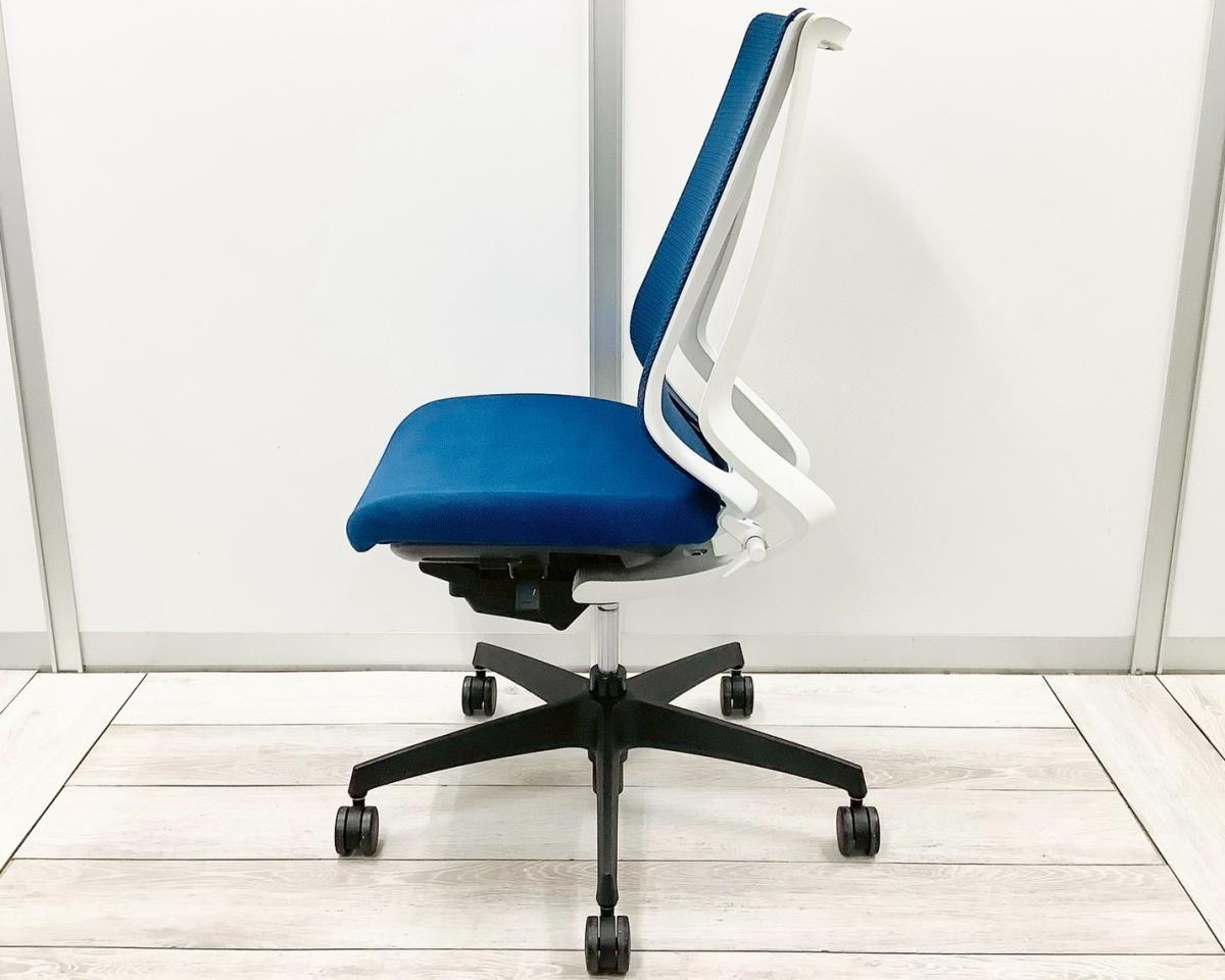 【二重フレーム構造がもたらすしなやかで美しい背もたれ機能!簡易操作で自分に合った姿勢をサポート!】■コクヨ(KOKUYO)製 デュオラ(Duora) 肘無 ハイバック 背面メッシュ ■プルシアンブルー×ホワイトシェル×ブラック脚【入替セールにつき30%OFF!】