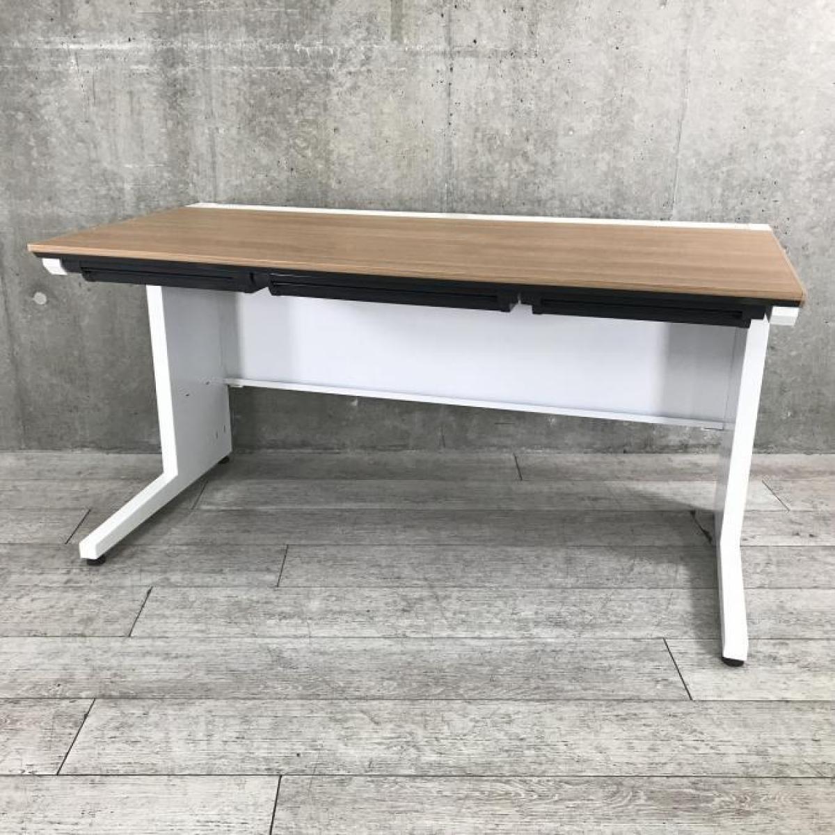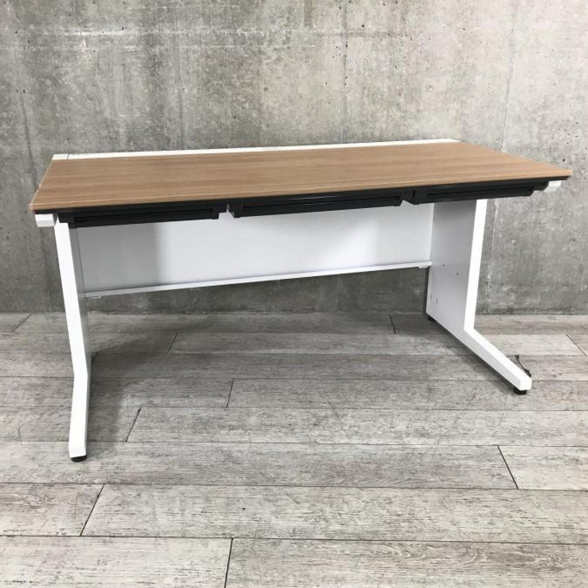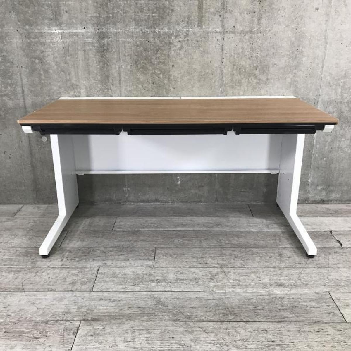 上長デスクの定番W1400平机!深みのある木目天板!配線カバーも充実の高品質デスク! ■コクヨ/iSシリーズ/ブラウン×ホワイト 引き出し付き- 立川・八王子店