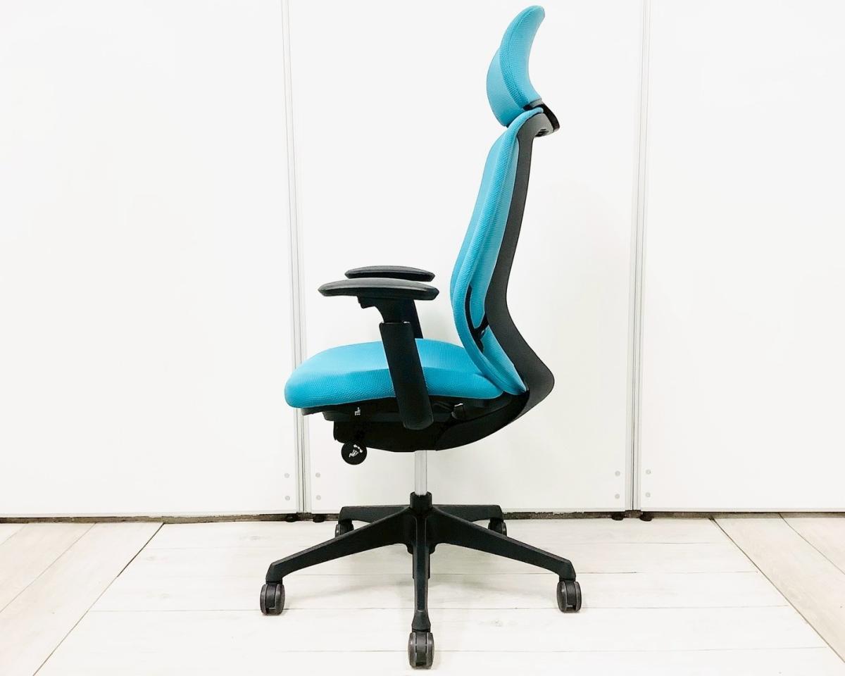 【レア商品入荷!人気のワークヴェール付!集中作業にもオススメ!】■オカムラ シルフィーチェア 可動肘付 ライトブルー ヘッドレスト付 エクストラハイバック ■背のカーブを変えられる!新感覚のオフィスシーティング!