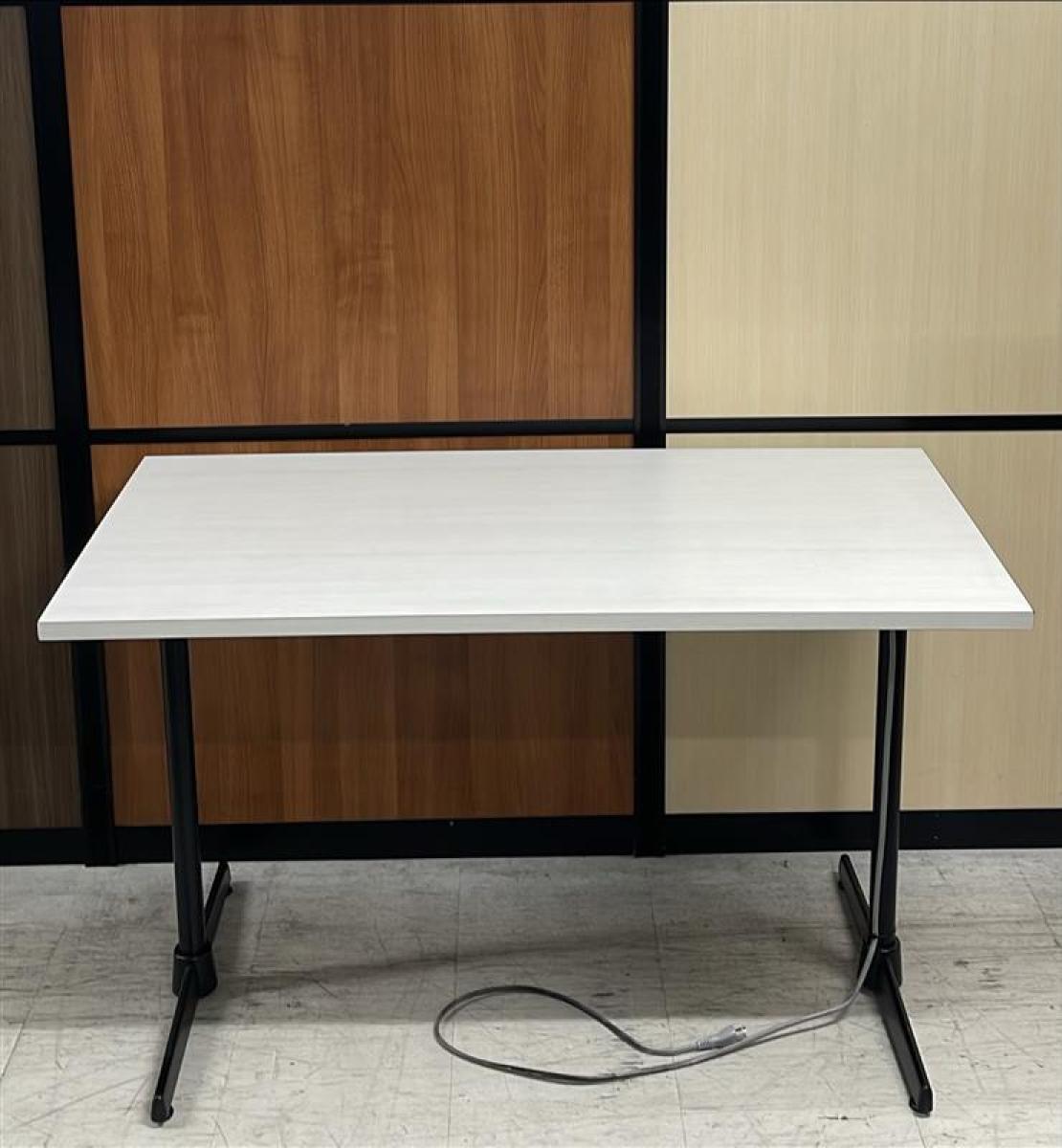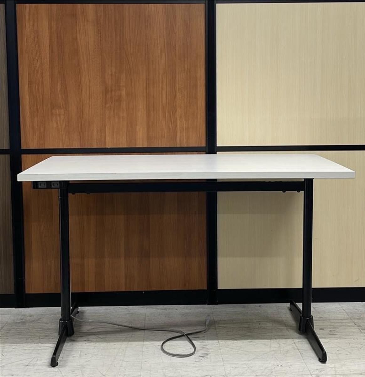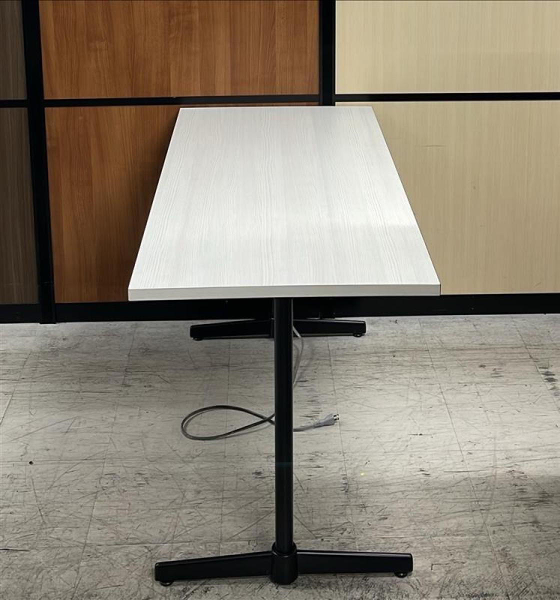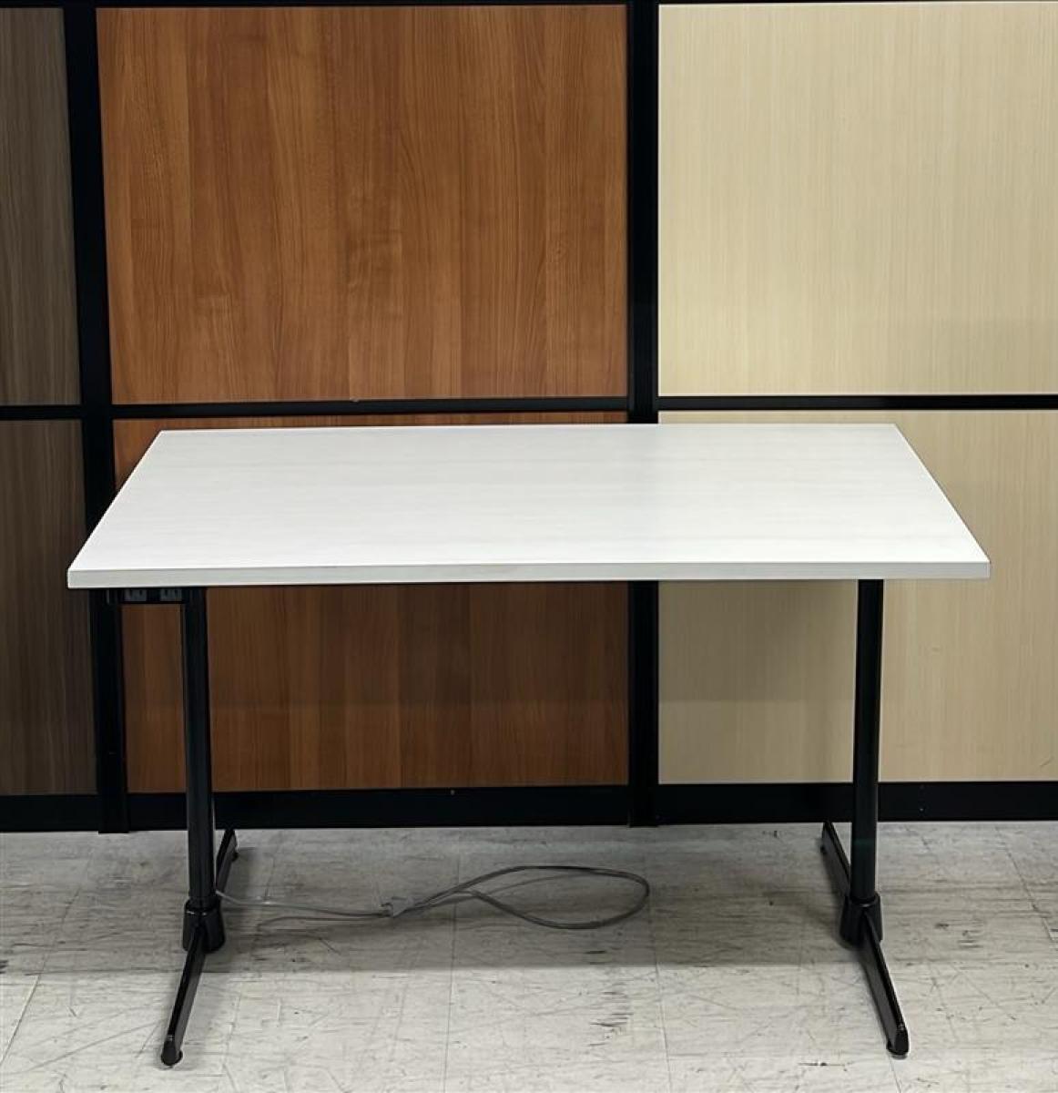 【在庫セール品・2台限定】【T4】■綜合家具製 ミーティングテーブル W1200mm×D600mm ■木目ホワイト×ブラック脚 ■T字脚【木目ホワイトのおしゃれなテーブル! コンセント付で応接にも休憩スペースにも最適!】- 新大阪店