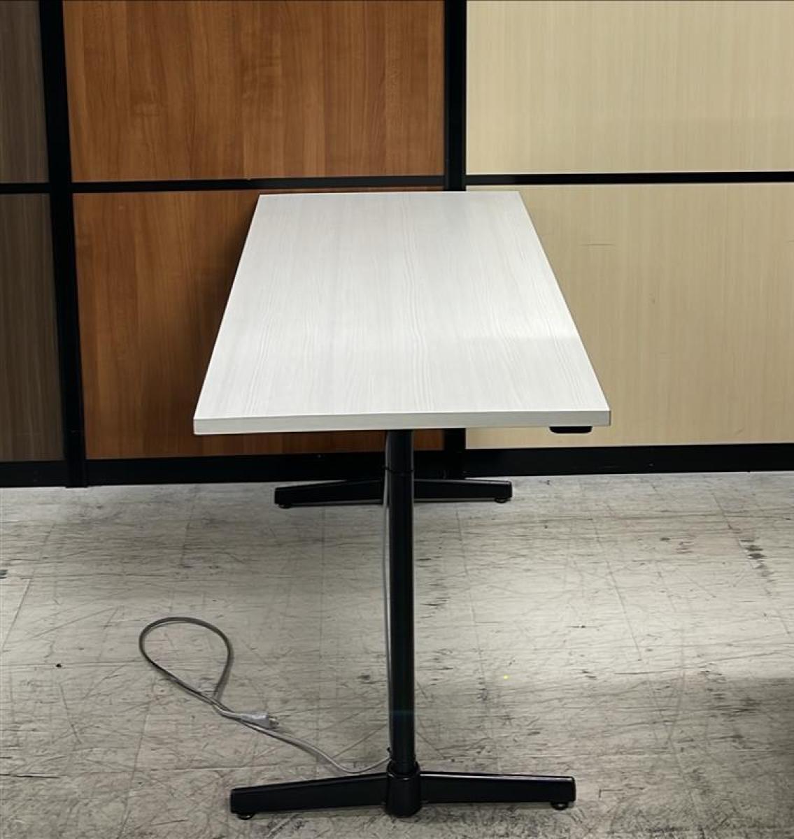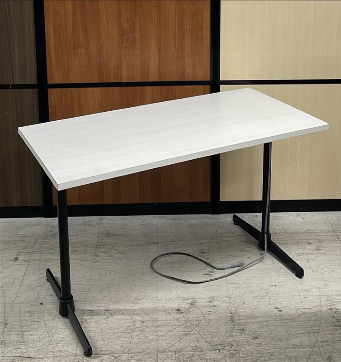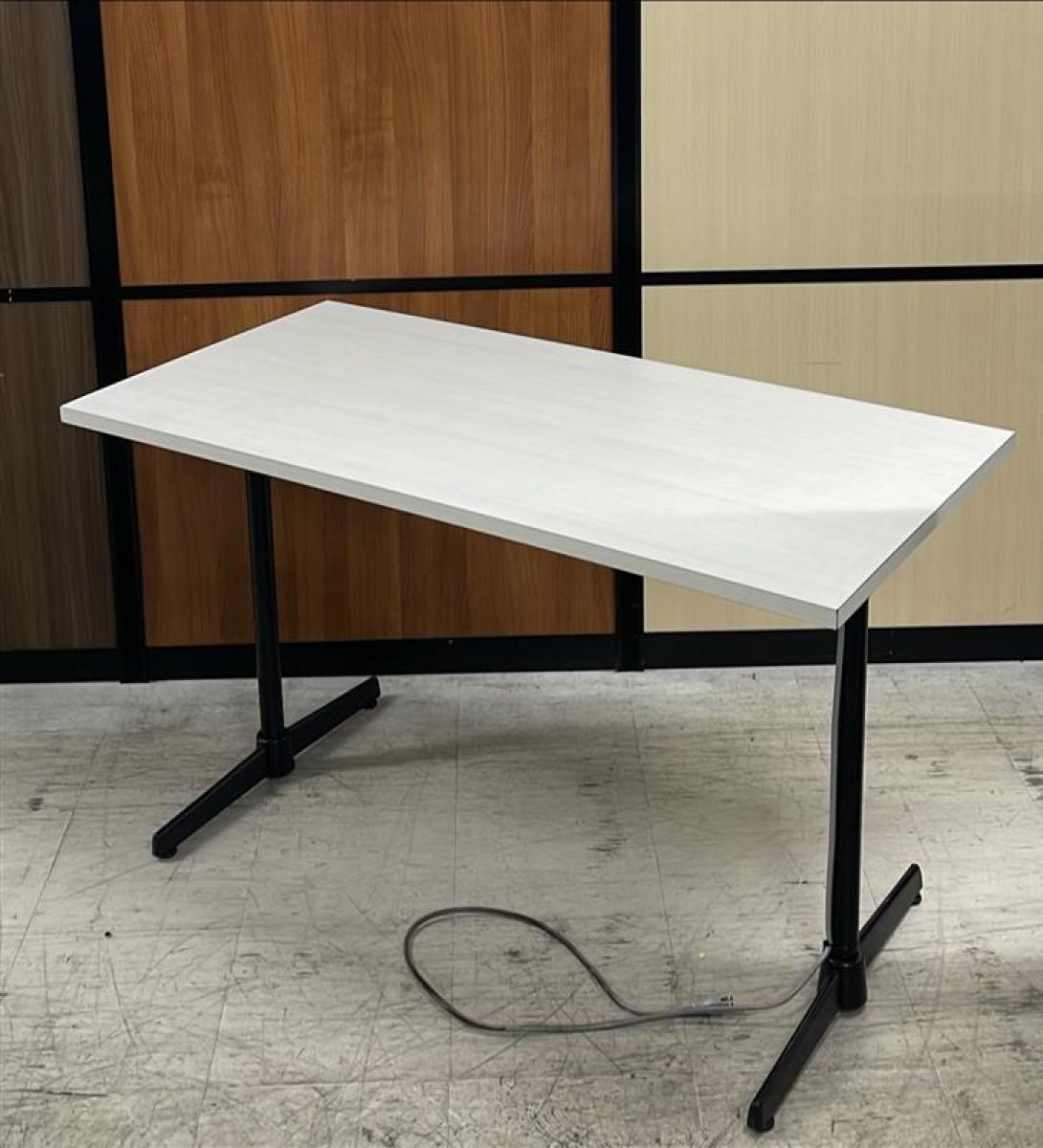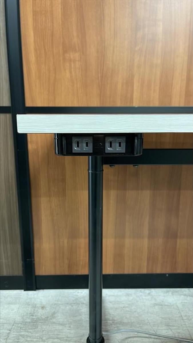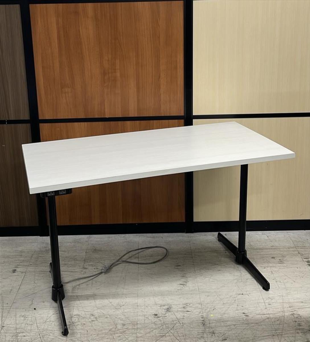 【在庫セール品・2台限定】【T4】■綜合家具製 ミーティングテーブル W1200mm×D600mm ■木目ホワイト×ブラック脚 ■T字脚【木目ホワイトのおしゃれなテーブル! コンセント付で応接にも休憩スペースにも最適!】- 新大阪店