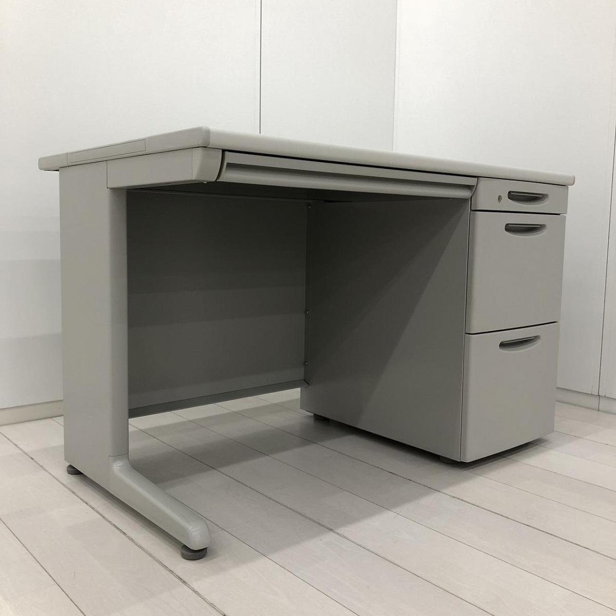 【オカムラの超定番シリーズ!袖一体型で書類をたっぷり収納可能!】■オカムラ(okamura)製 SD-Vシリーズ 片袖机 ■W1100mm×D700×H700mm ■シリンダー錠 ■ライトグレー