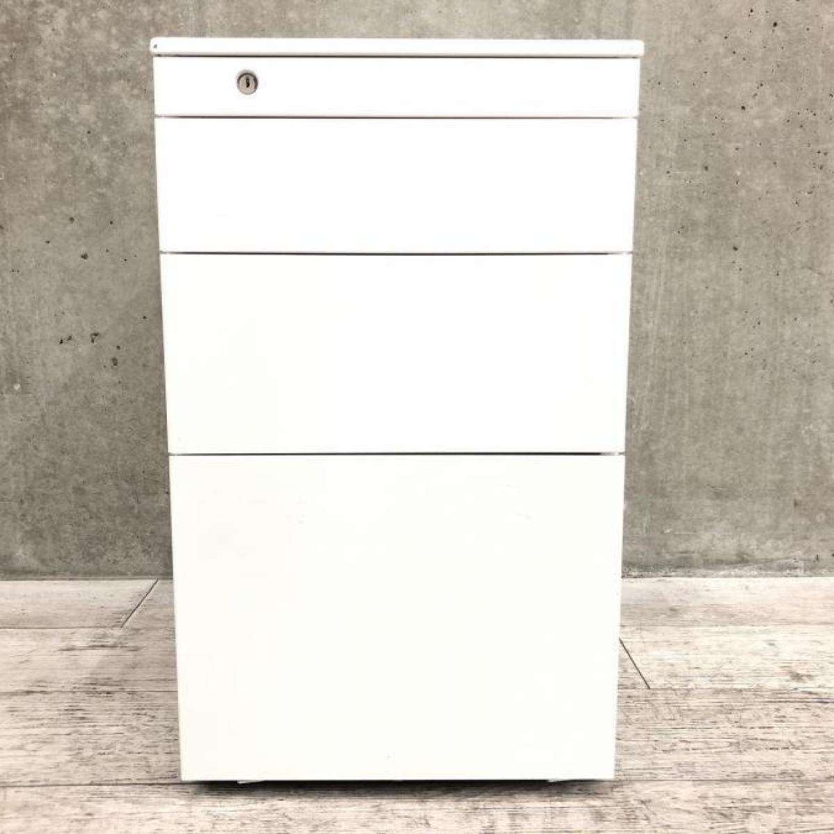 【フリアドデスクや平机の収納力アップに!ファイルや書類の収納に最適な4段ワゴン!】■オカムラ(okamura)製 プロユニット(Pro Unit)シリーズ フリアド用 4段ワゴン H650㎜ ■シリンダー錠 ■ホワイト- 在庫数