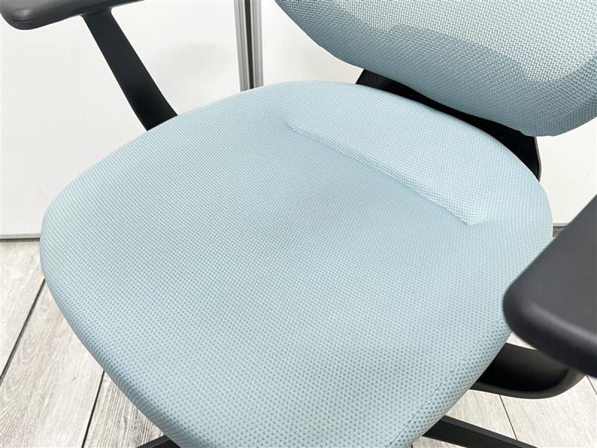 【イスとひとつになれる新感覚! 360°揺れて体を自由に動かせる「グライディング・メカ」搭載!】■コクヨ(KOKUYO)製 イングチェア (ing) 肘付ハイバック ■ライトブルー ■背面メッシュタイプ ■固定肘 ■コートハンガー付き