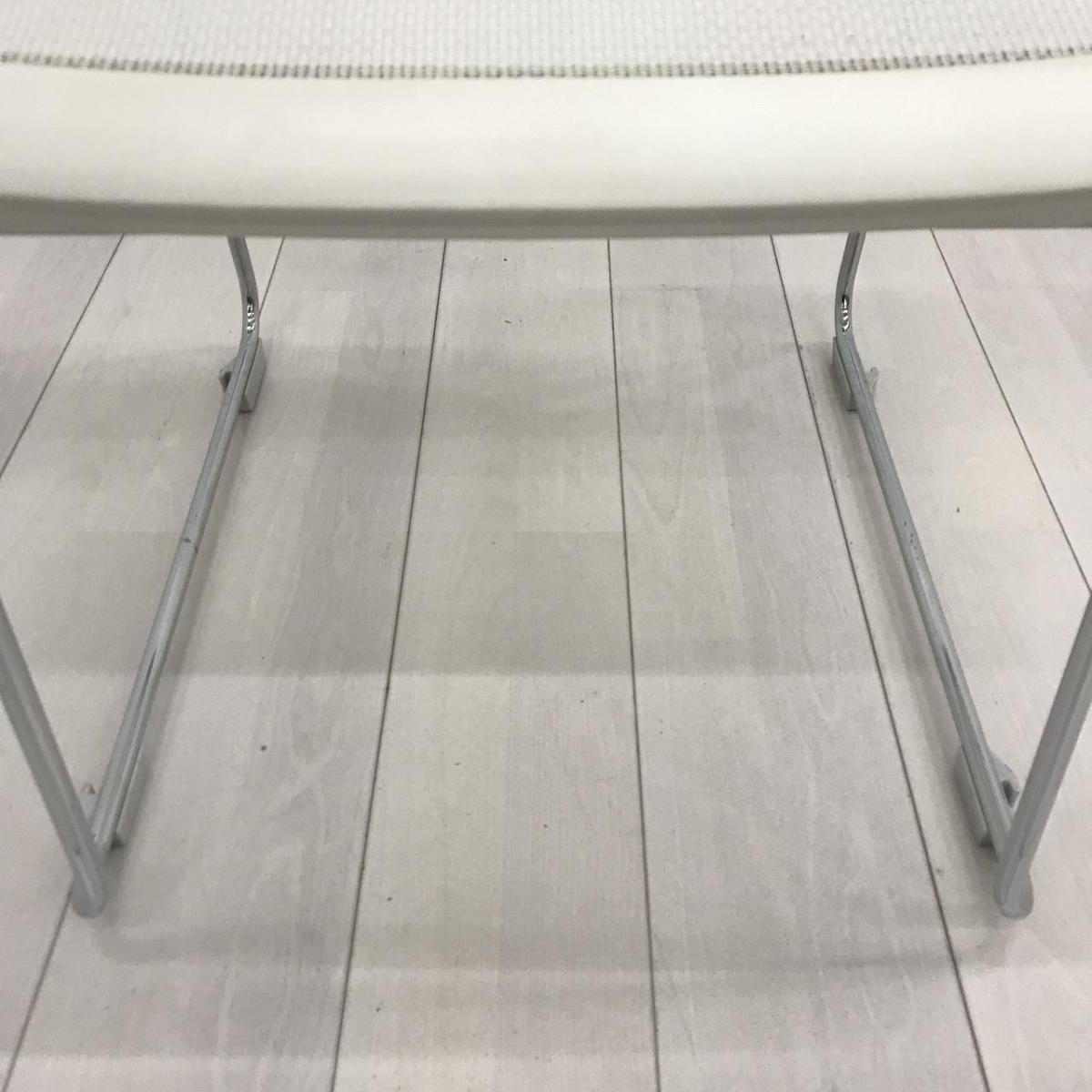 - かなり強い濃い黄ばみ・変色が商品全体にある。(例、座面・背もたれ、脚部等にある。)